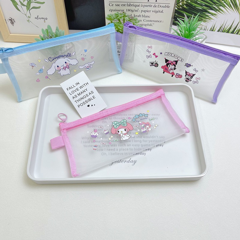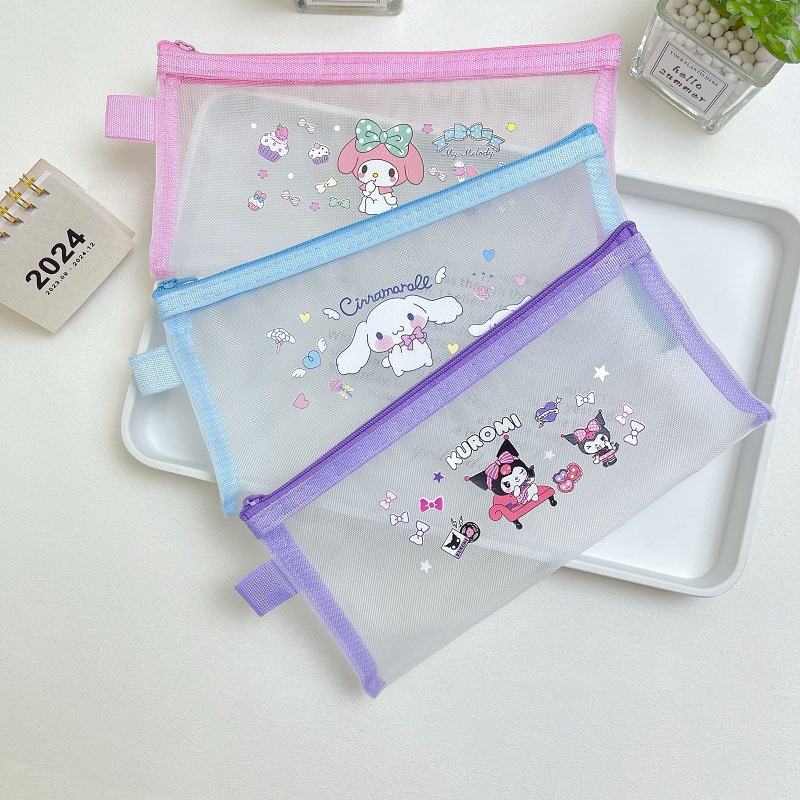 可爱三丽鸥B6尼龙网纱笔袋,铅笔收纳文具袋