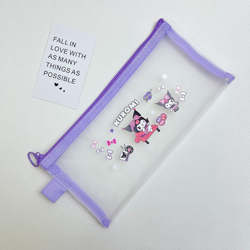 귀여운 만화 Sanrio Kulomi 나일론 메쉬 연필 가방 Merlot 문구 연필 가방 학생 보관 가방