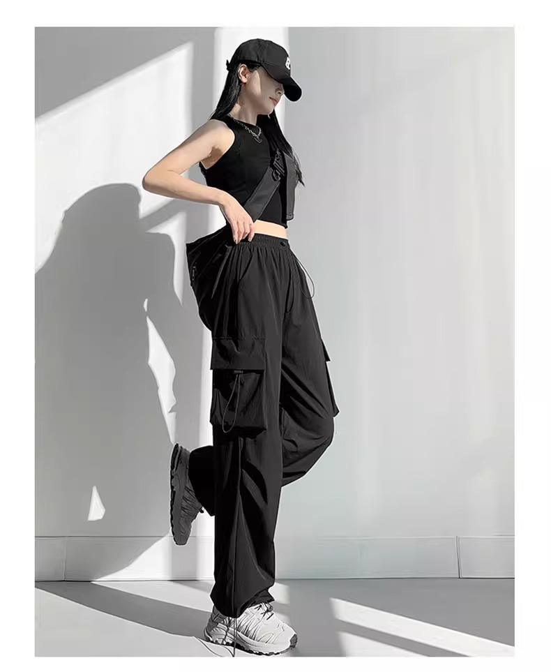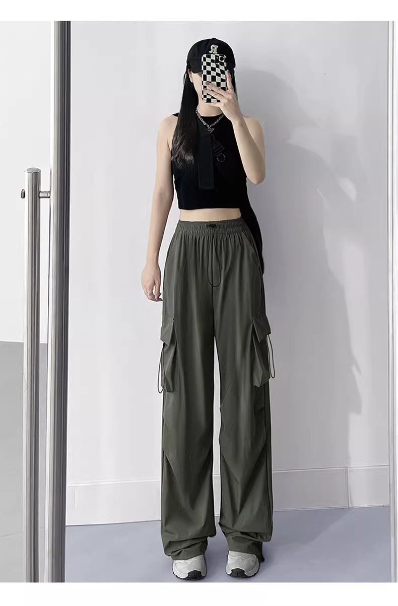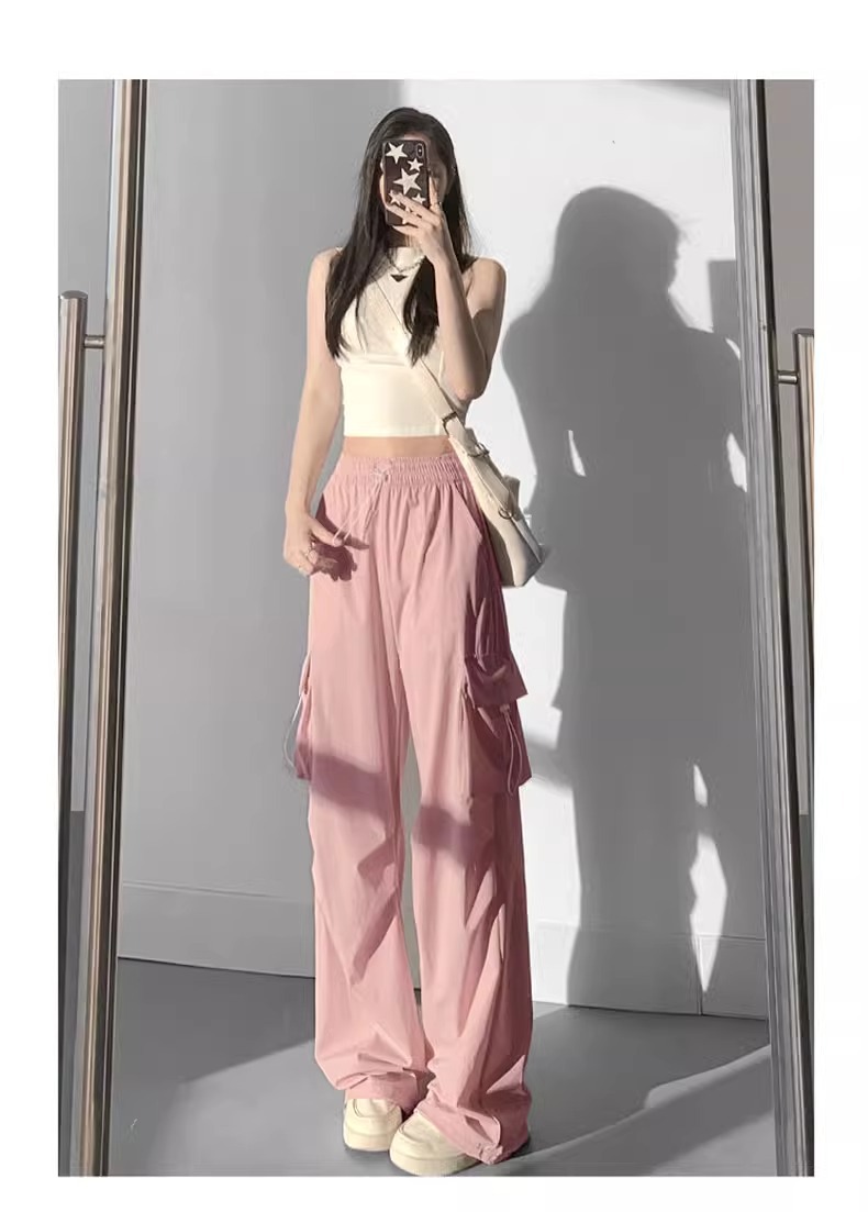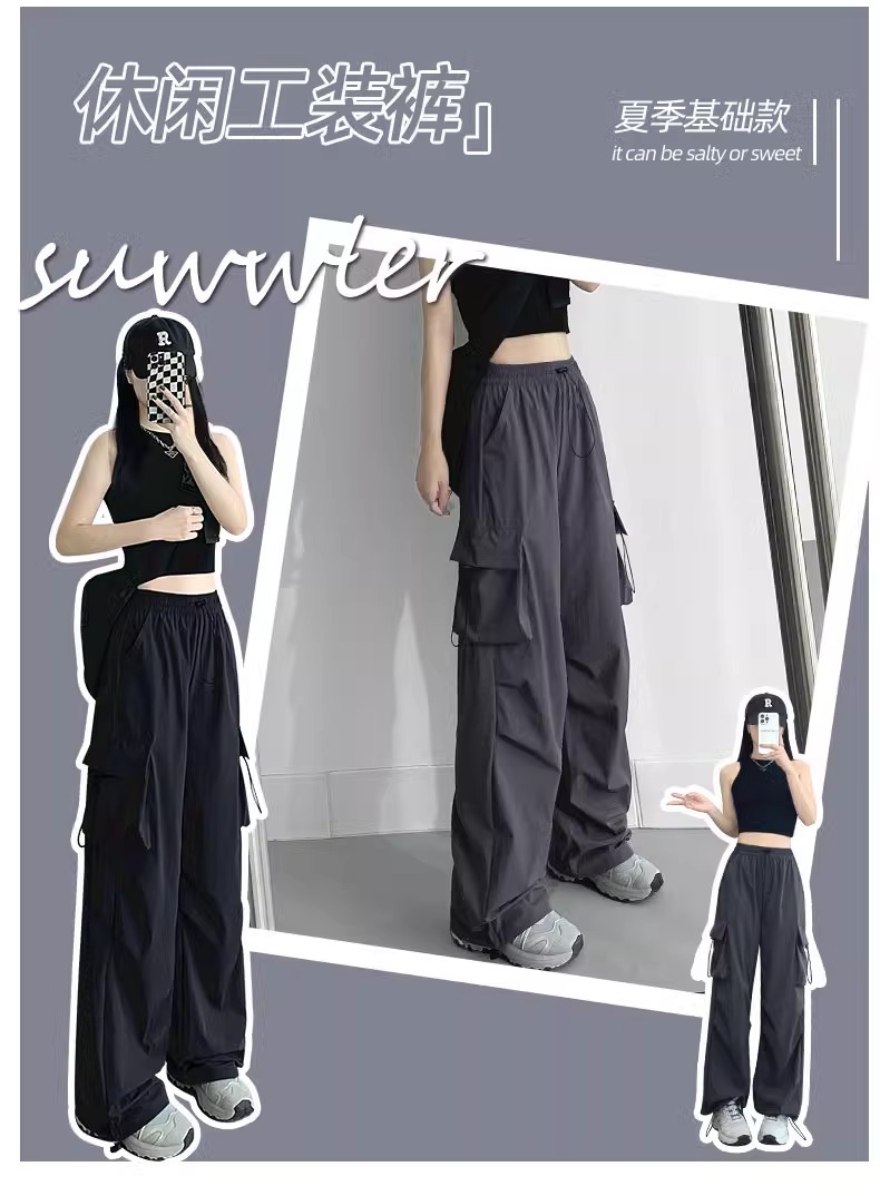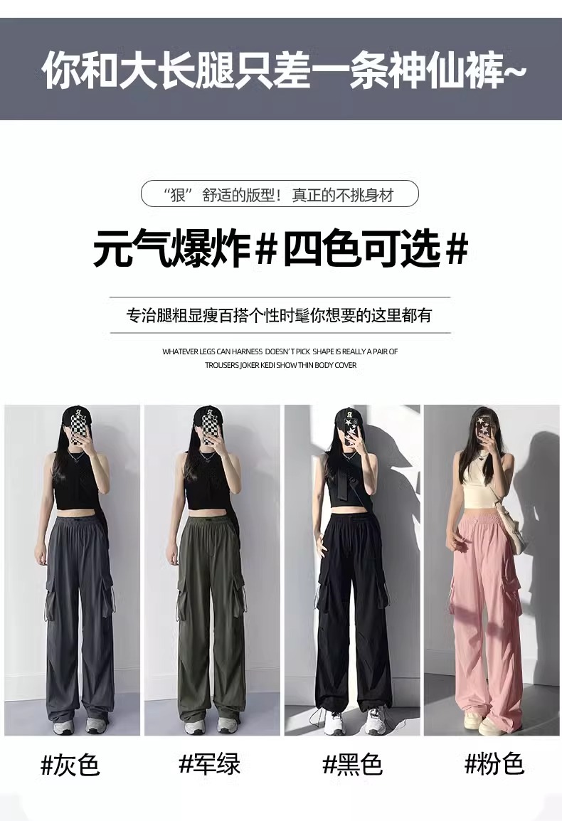 프랑스 크록 바지 여자 바지 2024 새로운 봄과 가을 충전 작은 넓은 다리 캐주얼 느슨한 등산 스포츠 바지스토어 가기