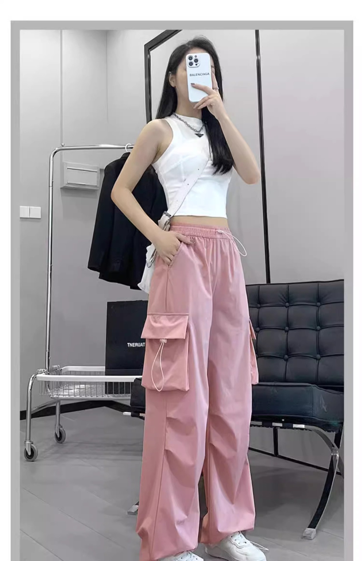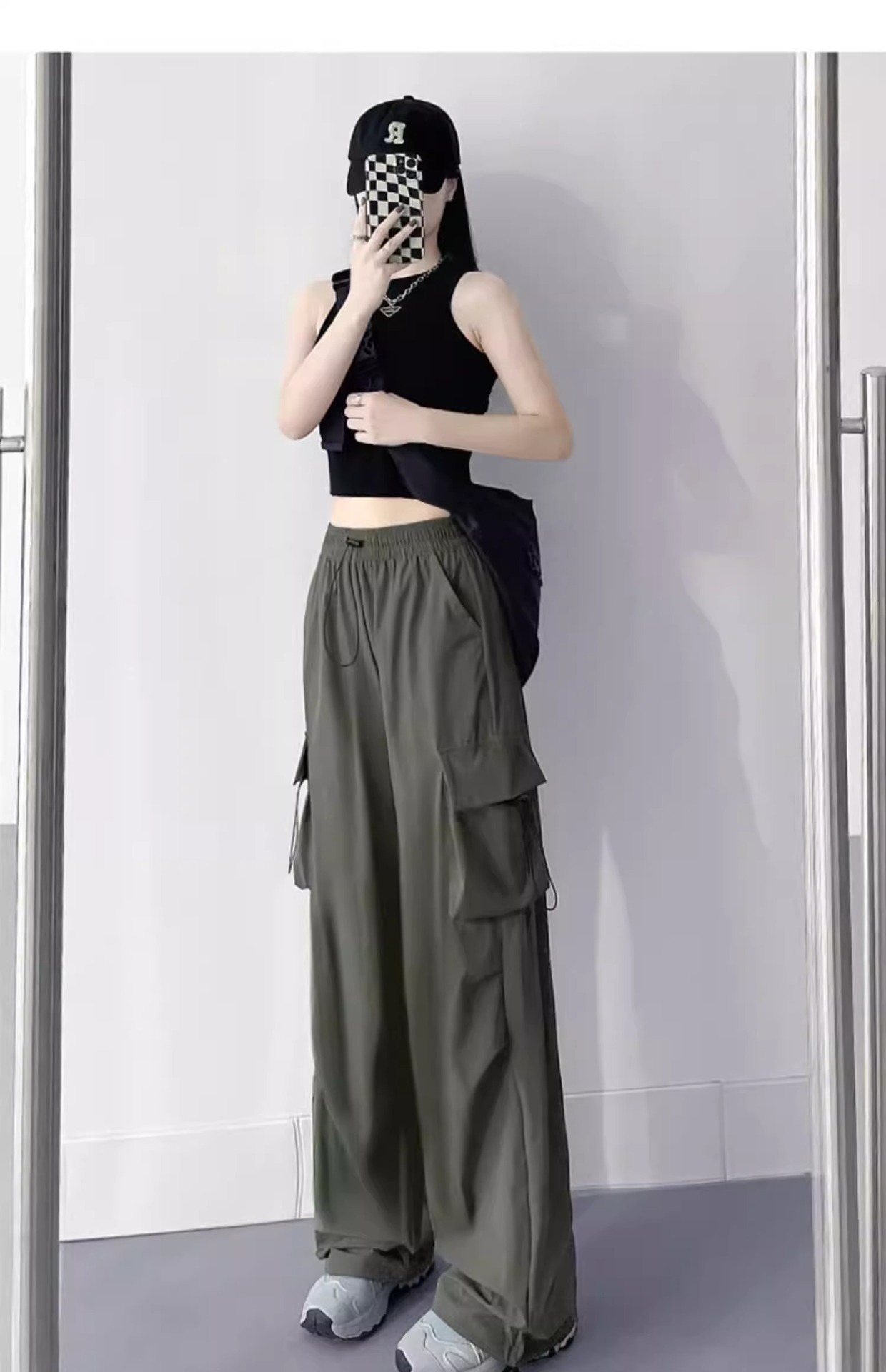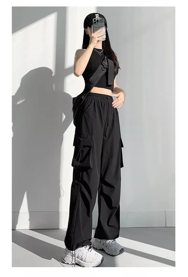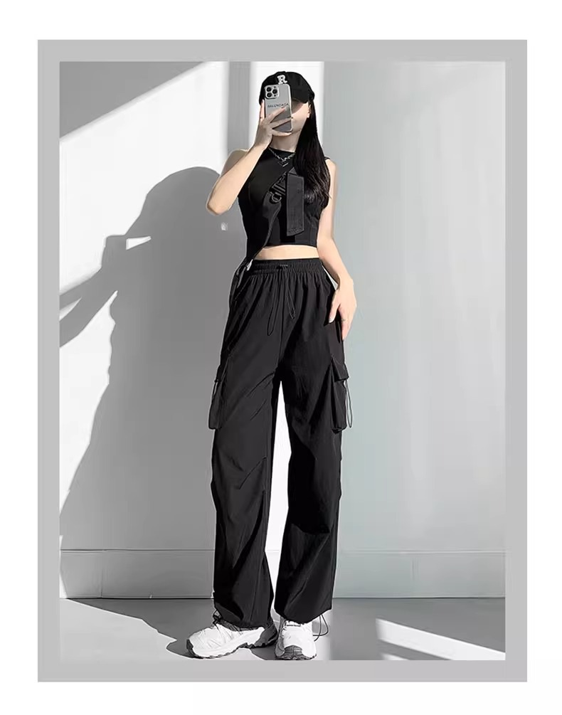 프랑스 크록 바지 여자 바지 2024 새로운 봄과 가을 충전 작은 넓은 다리 캐주얼 느슨한 등산 스포츠 바지스토어 가기