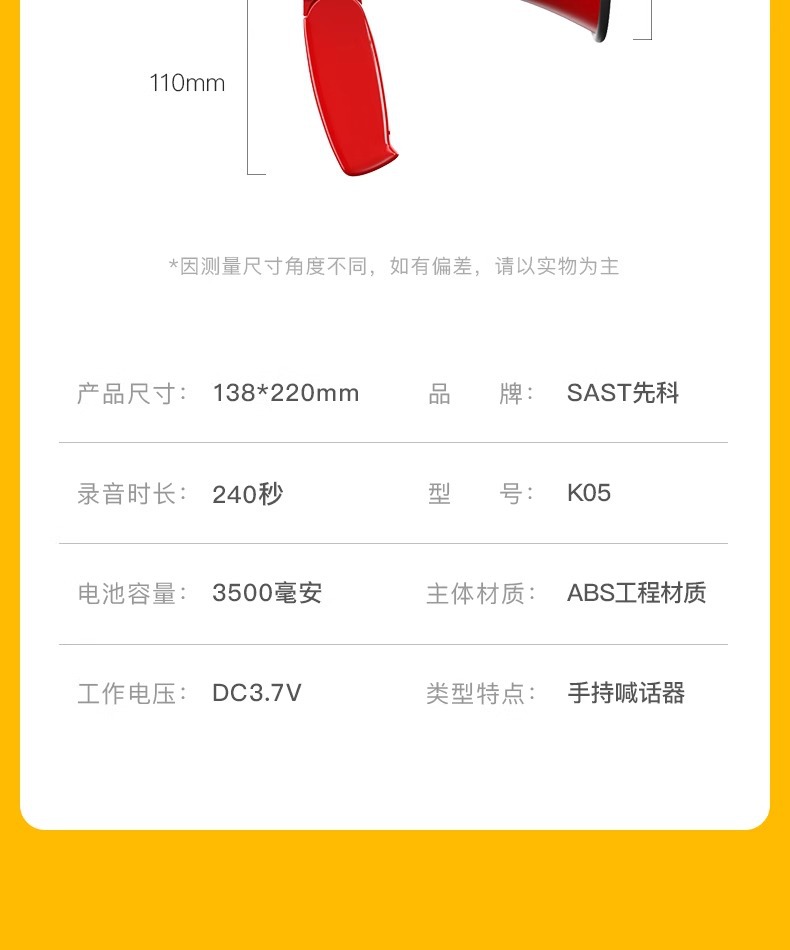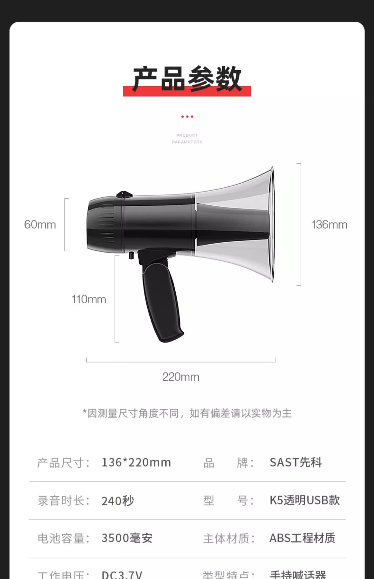 Xianke K5 확성기 스피커는 증폭을 외치는 마구간을 기록 할 수 있습니다.