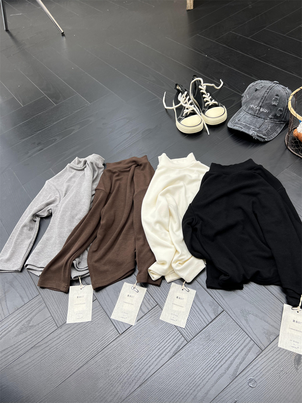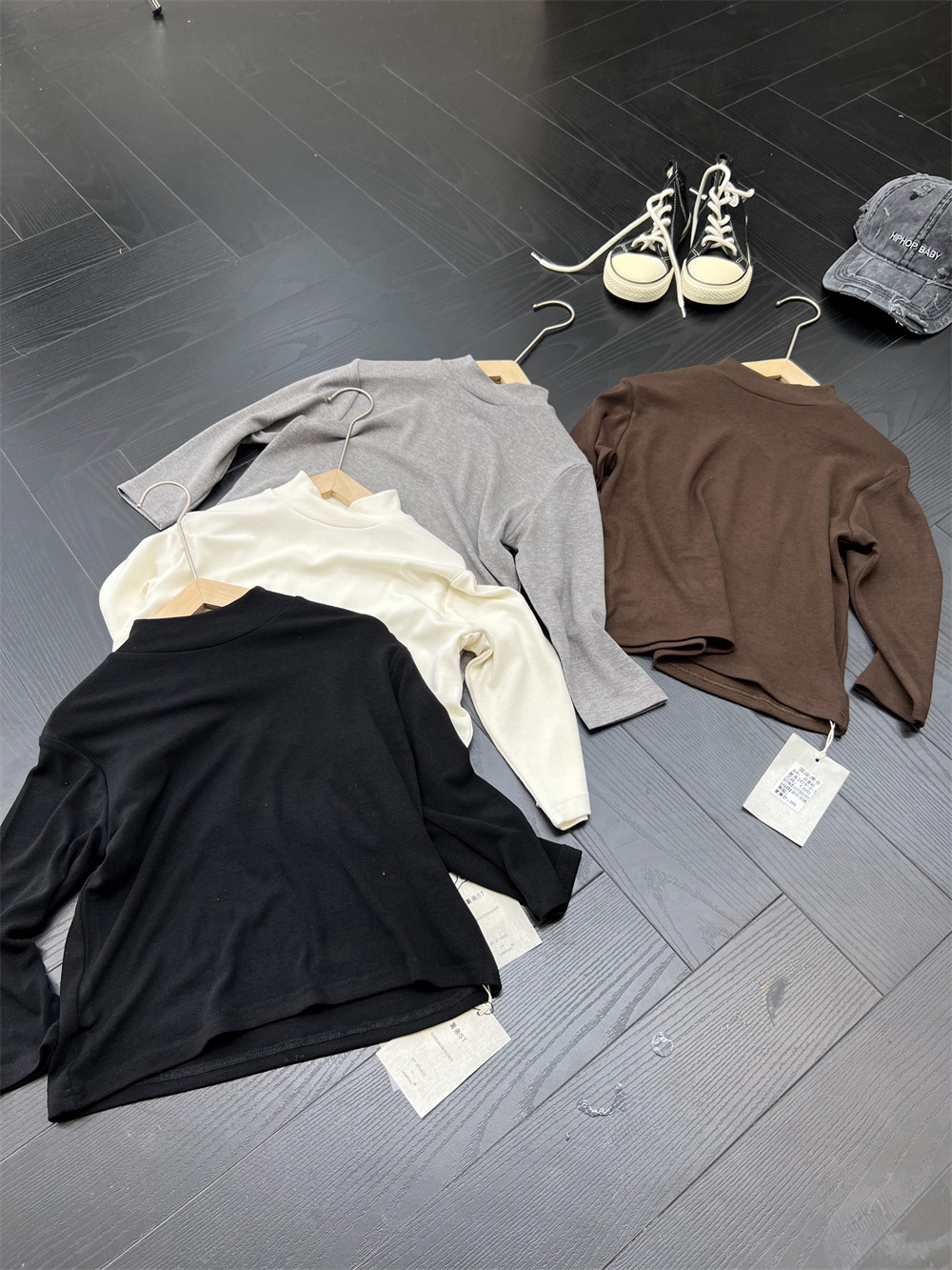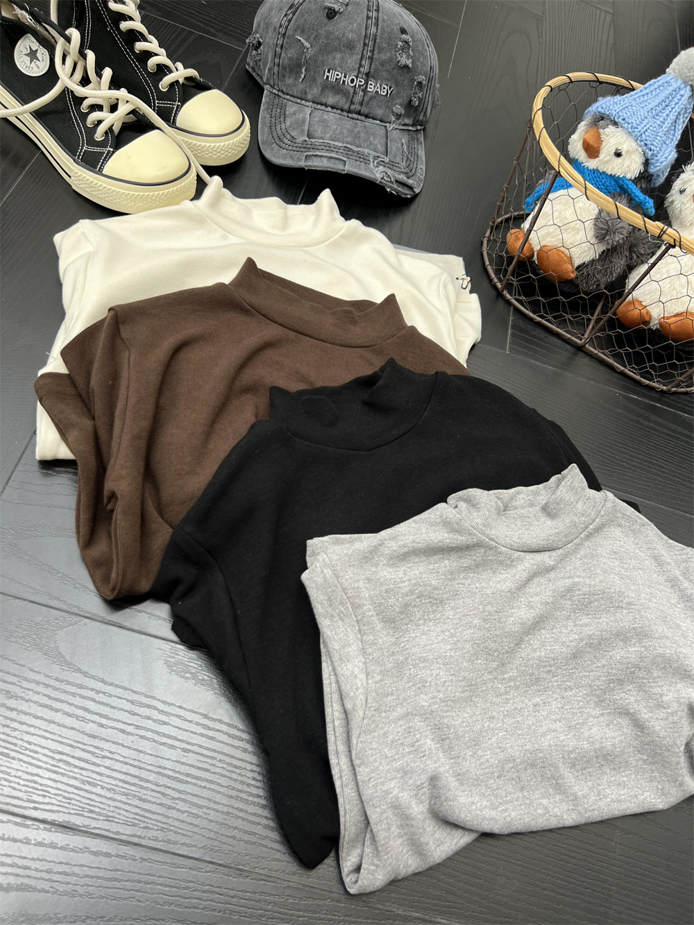 아동용 가을 미국식 기본 하프 터틀넥 이너웨어 남아 여아용 신축성 있는 질감의 단색 이너웨어스토어 가기