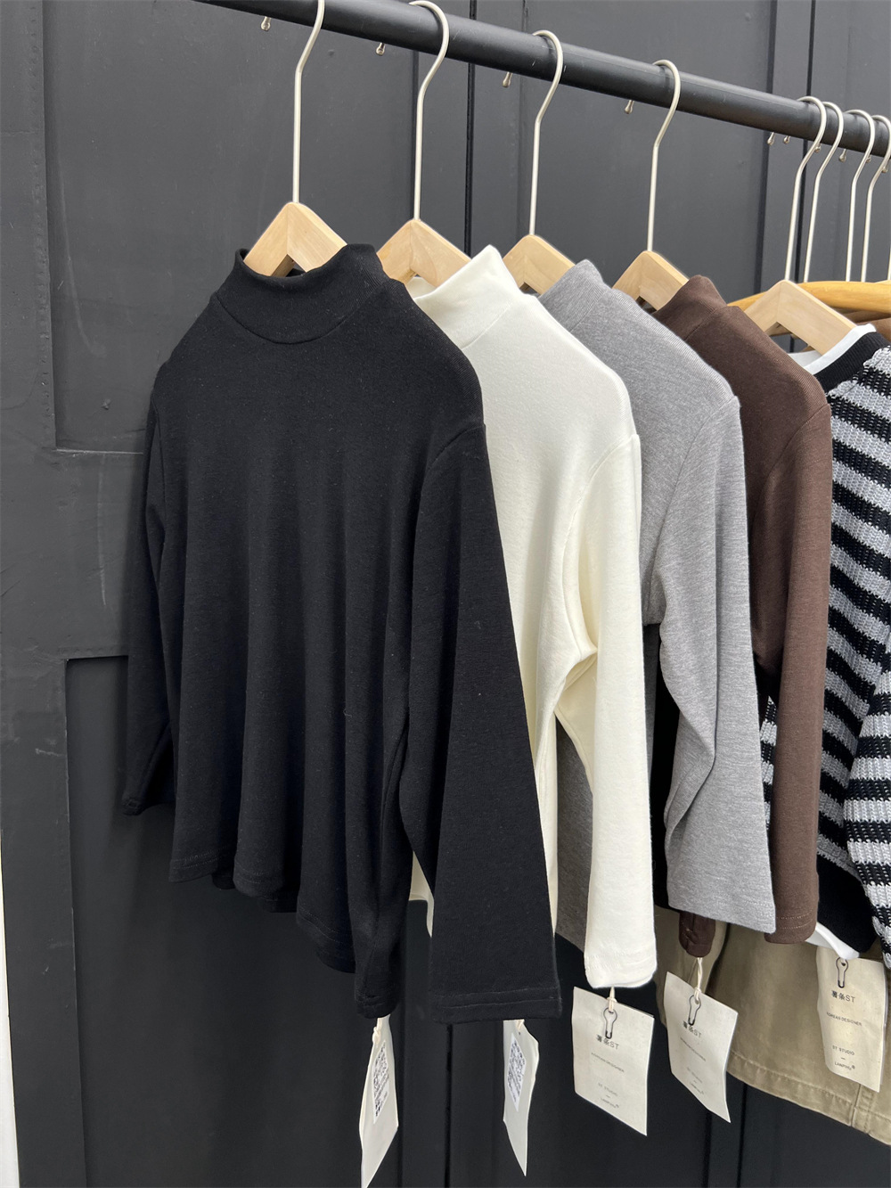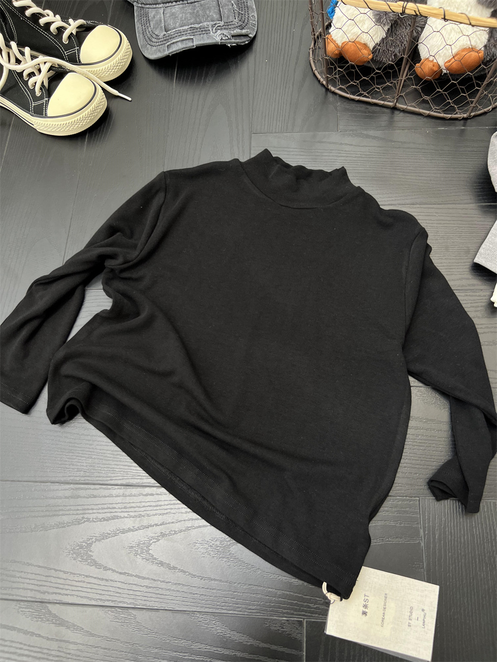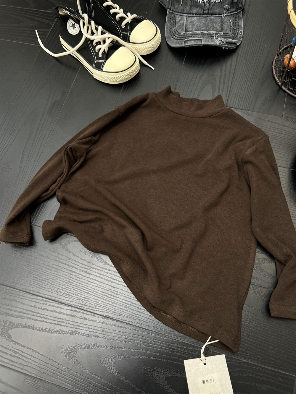 아동용 가을 미국식 기본 하프 터틀넥 이너웨어 남아 여아용 신축성 있는 질감의 단색 이너웨어스토어 가기