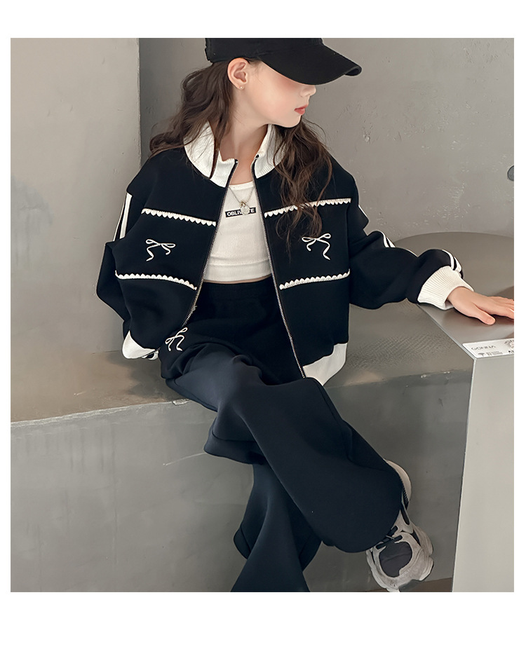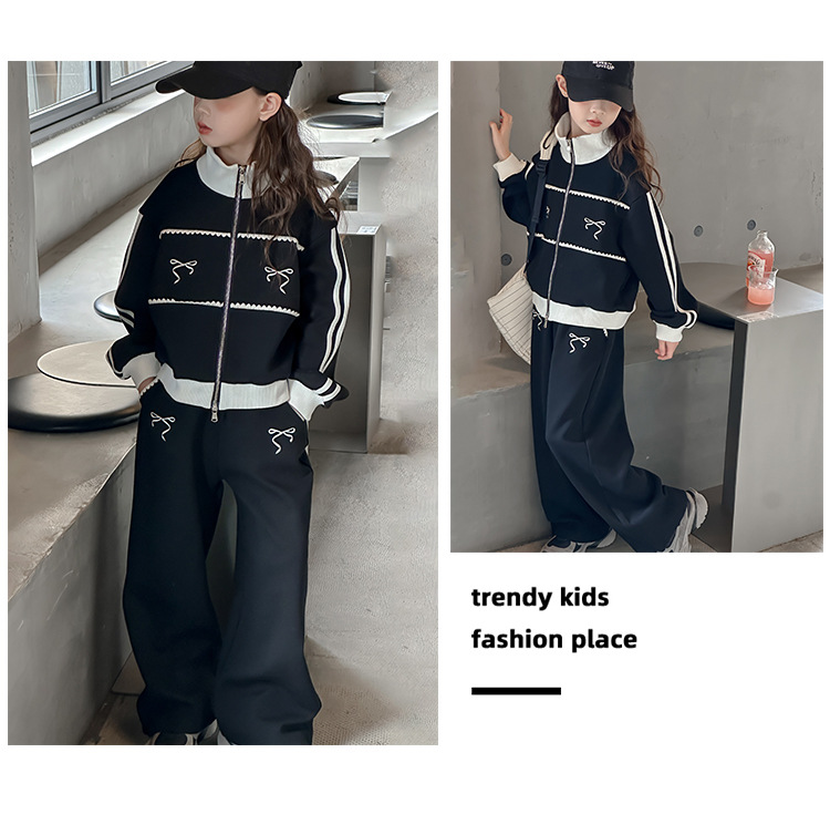 소녀 세트 봄과 가을 2024 새로운 어린이 서양식 가을 재킷 소녀 한국 캐주얼 스포츠 투피스 세트
