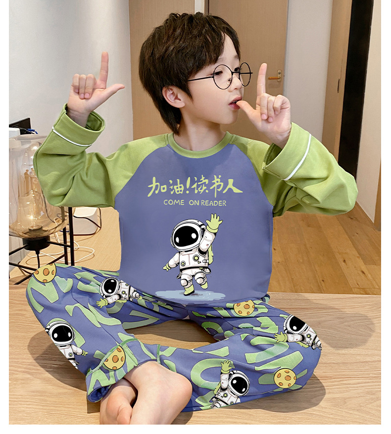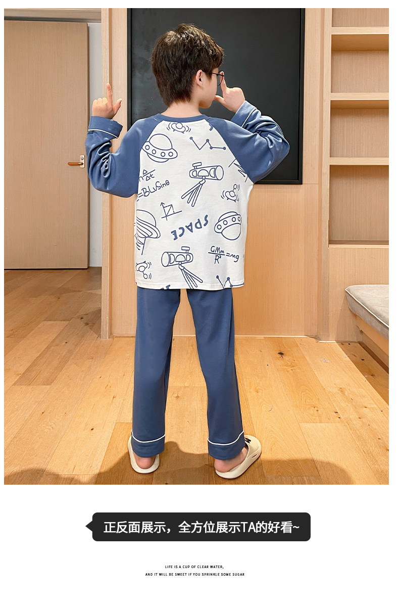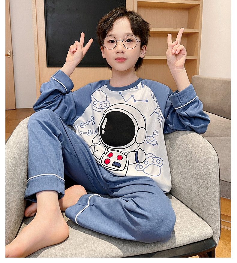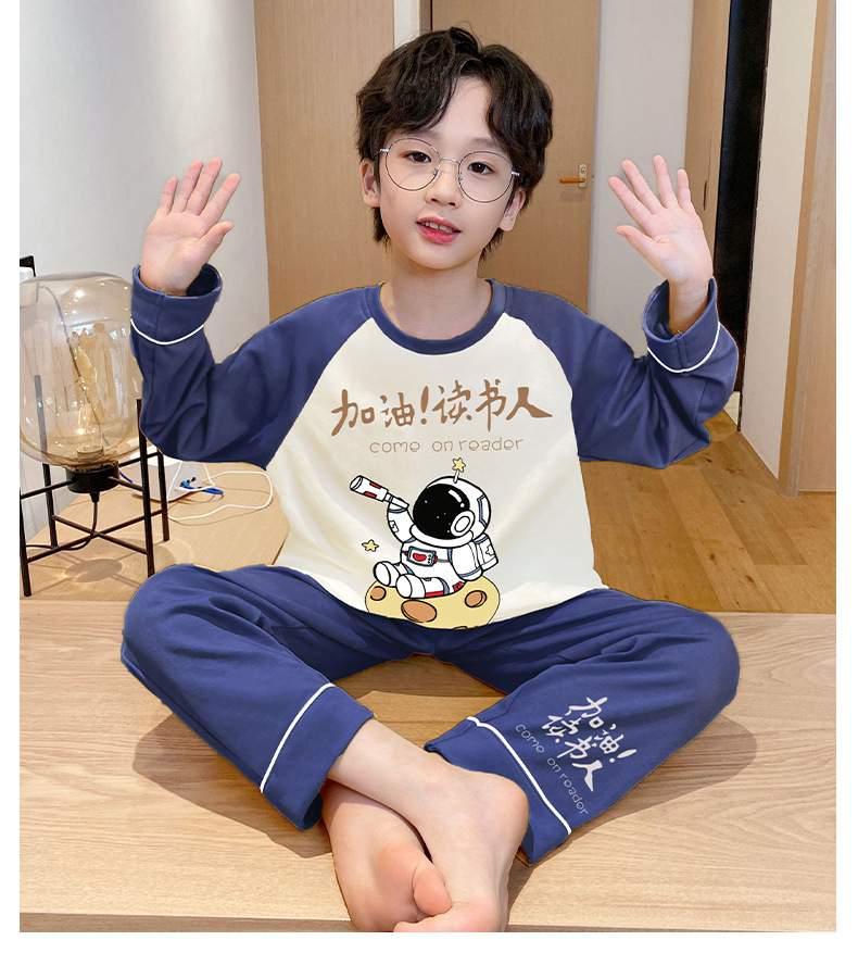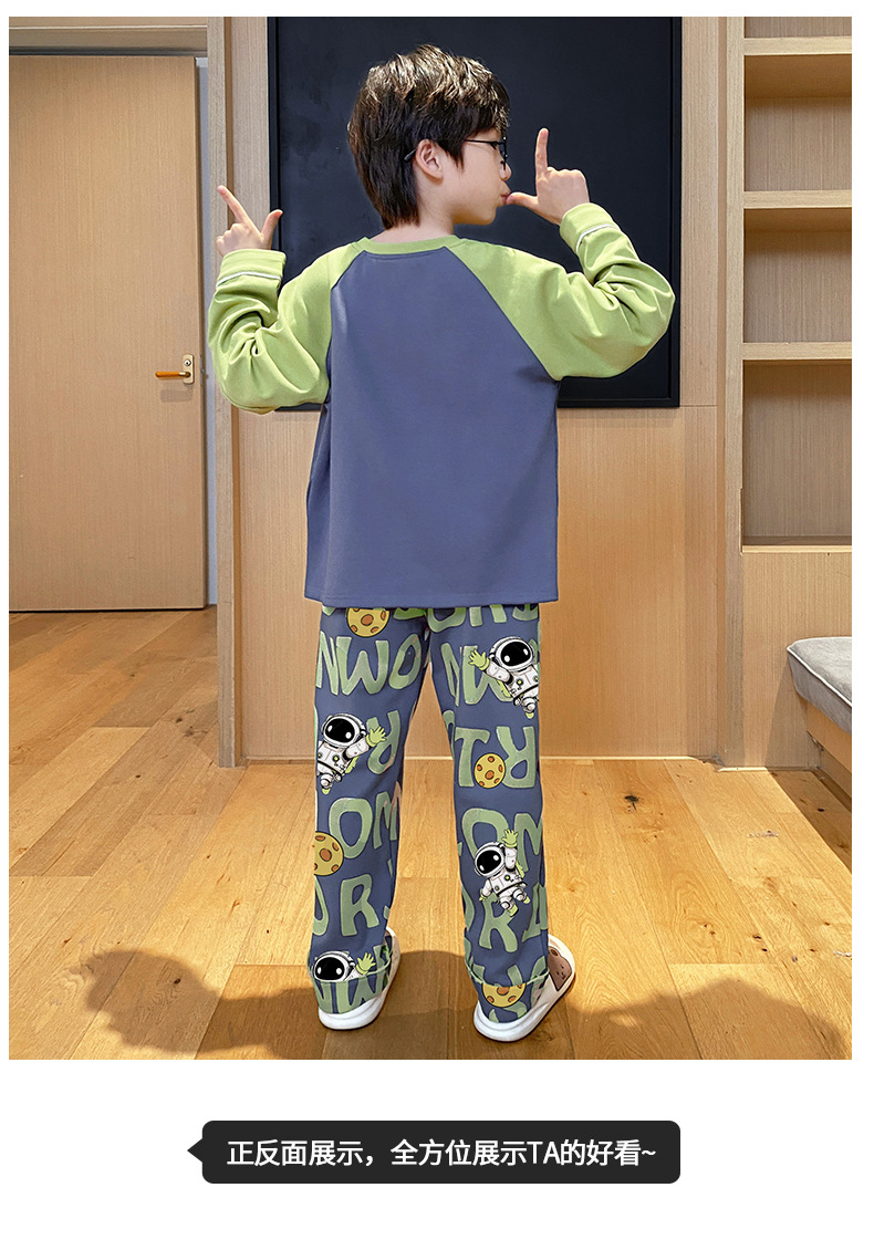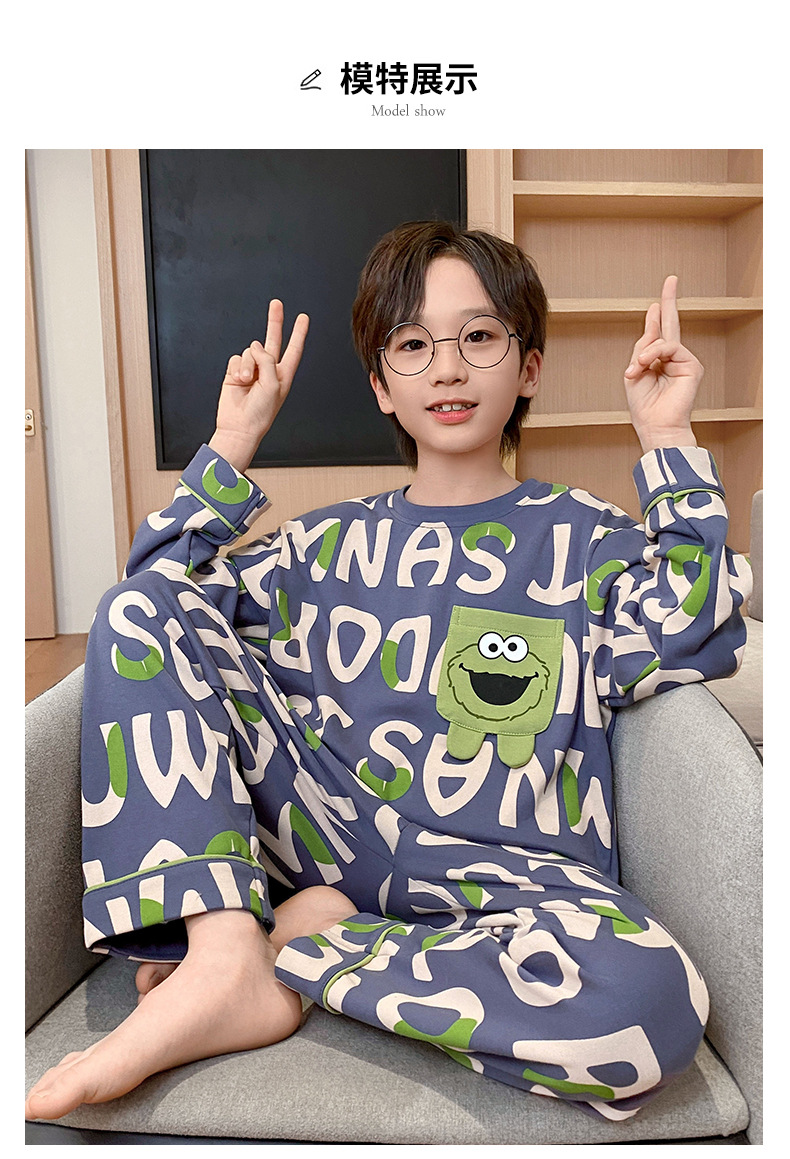 큰 소년의 잠옷 봄과 가을 긴 소매 얇은 면 청소년 중학생 12-15 세 에어컨 홈 옷스토어 가기