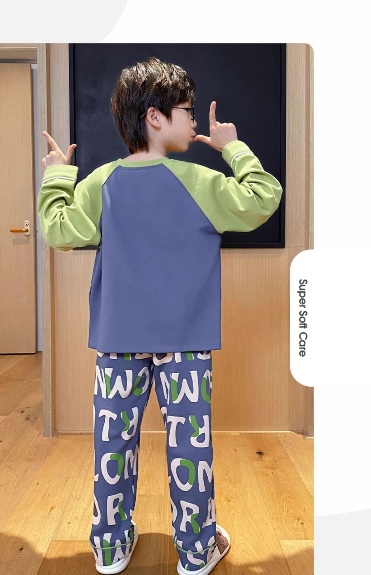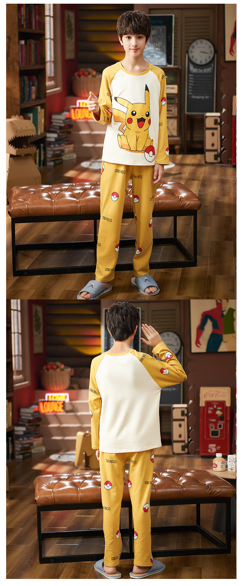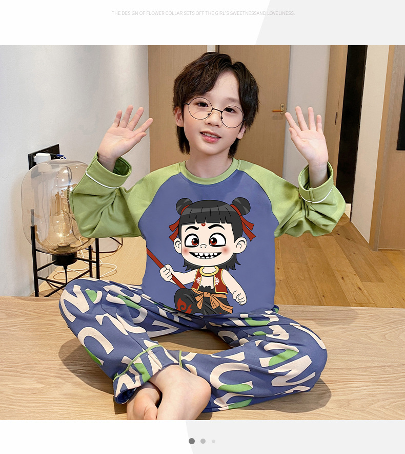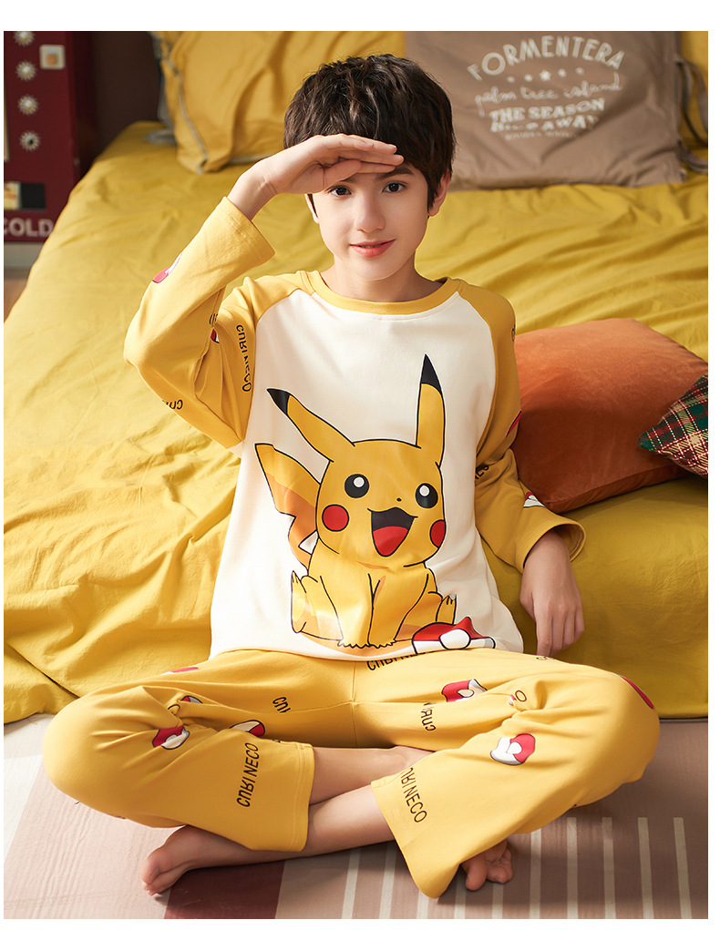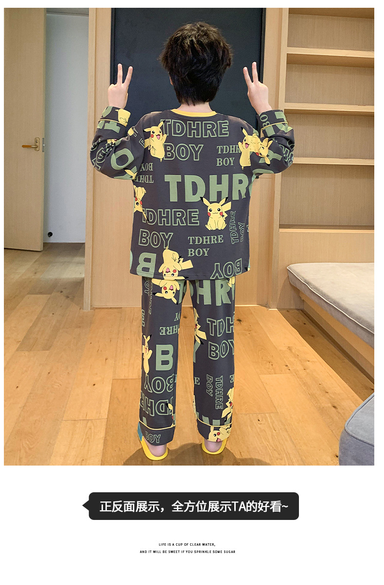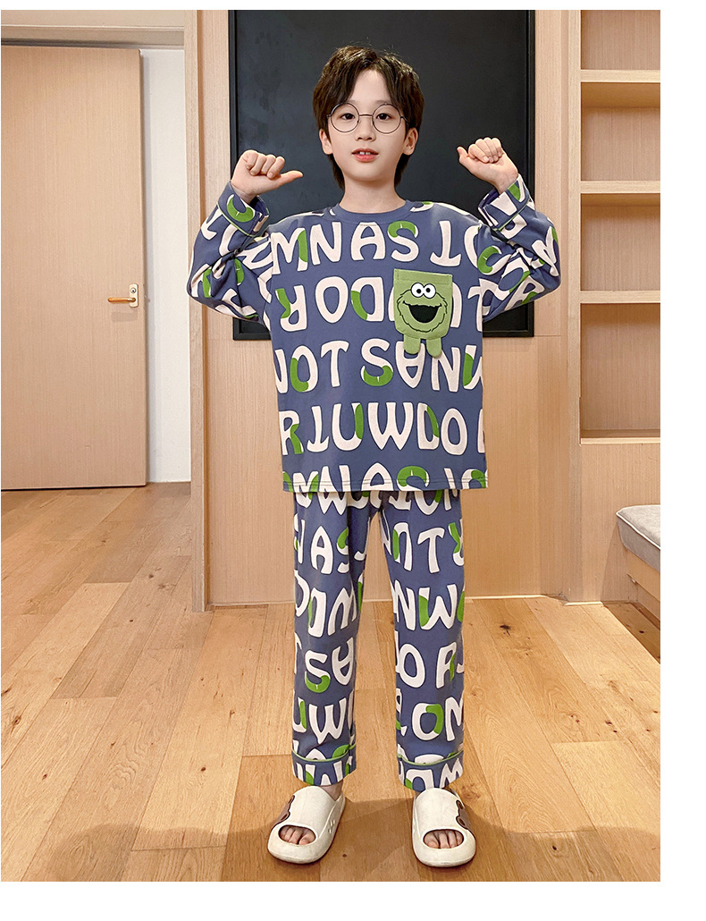 큰 소년의 잠옷 봄과 가을 긴 소매 얇은 면 청소년 중학생 12-15 세 에어컨 홈 옷스토어 가기