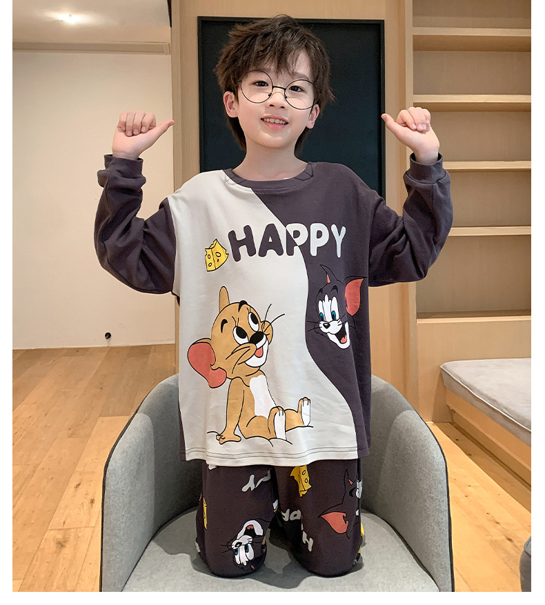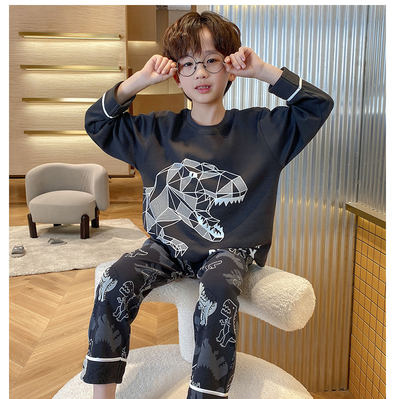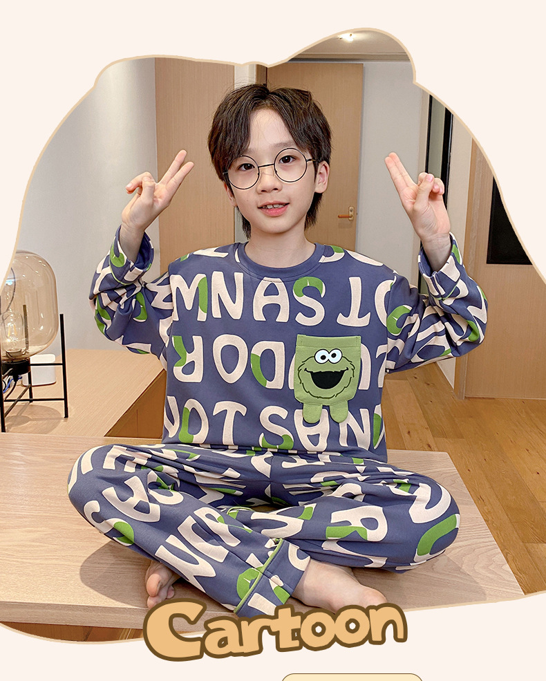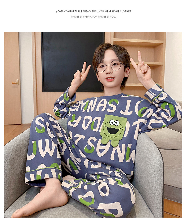 큰 소년의 잠옷 봄과 가을 긴 소매 얇은 면 청소년 중학생 12-15 세 에어컨 홈 옷