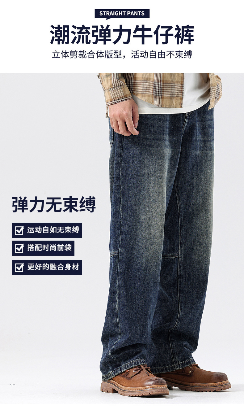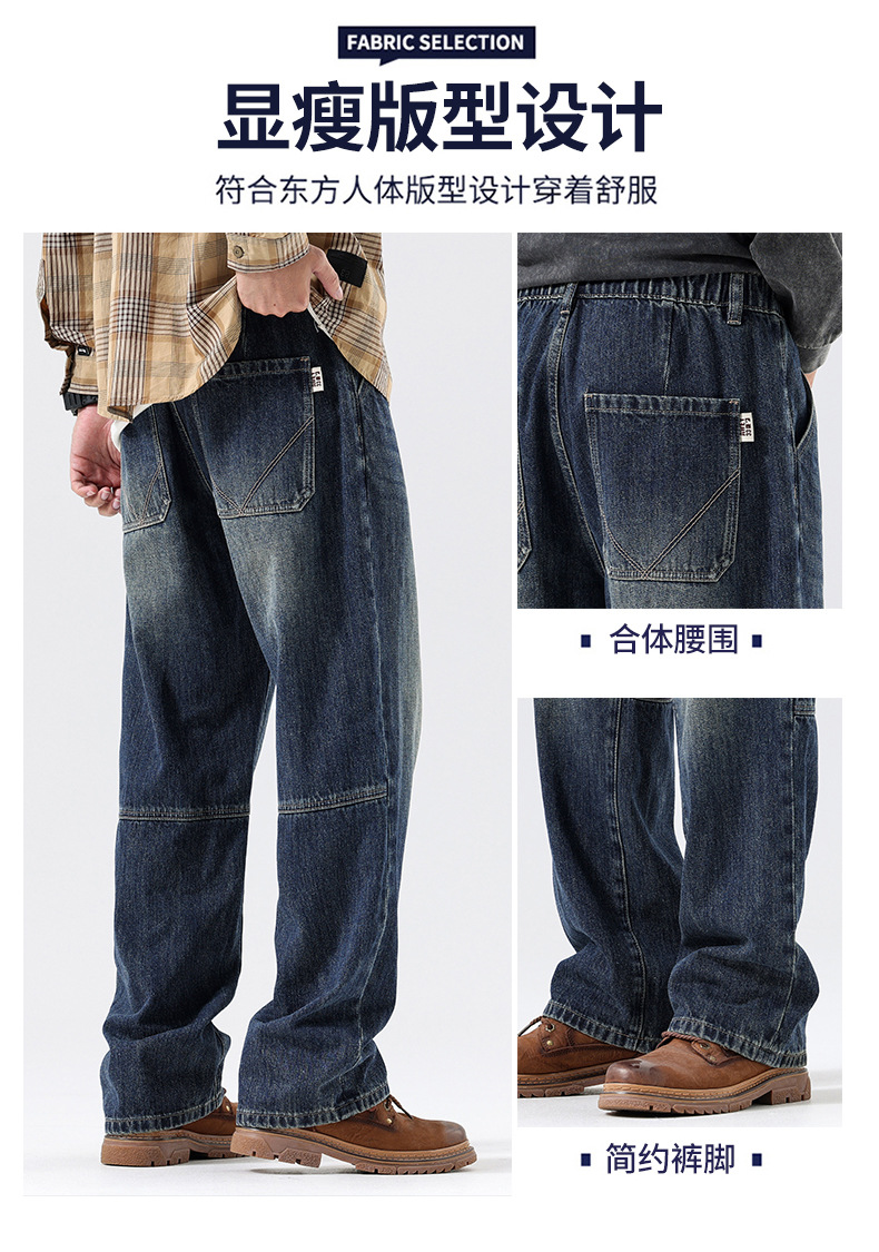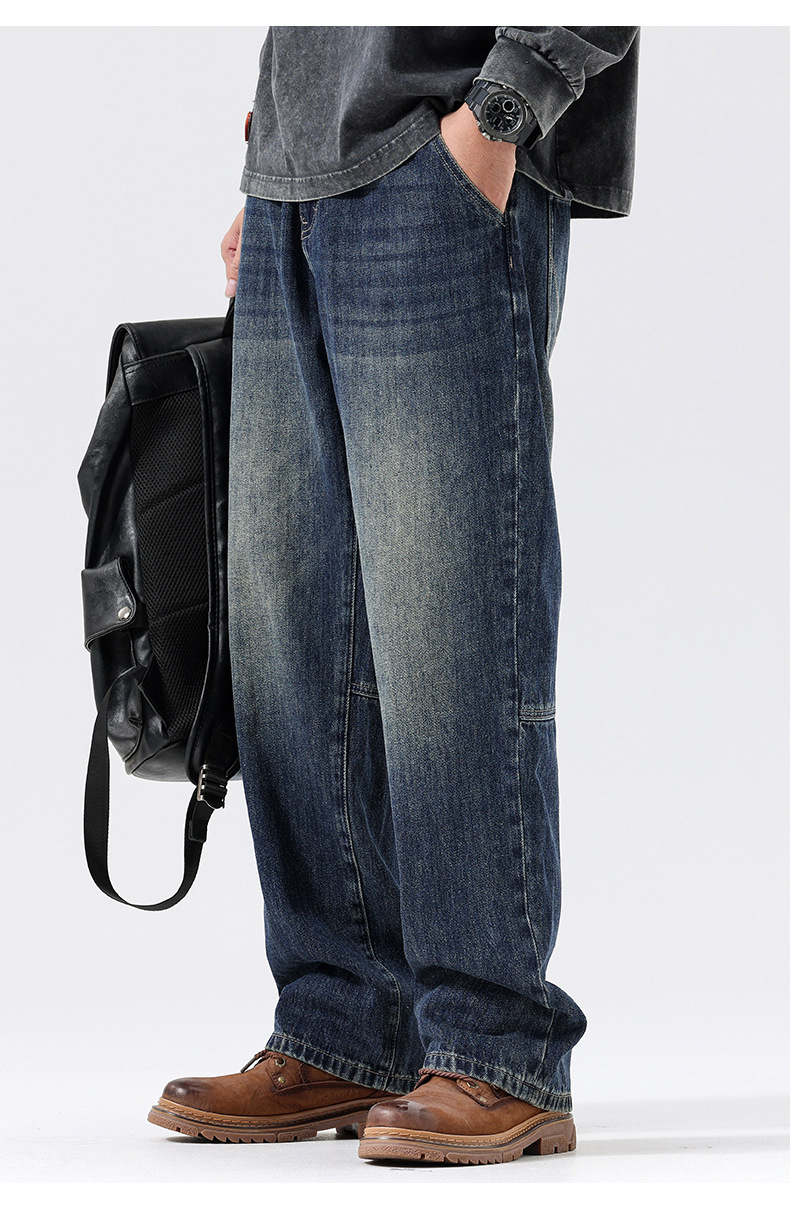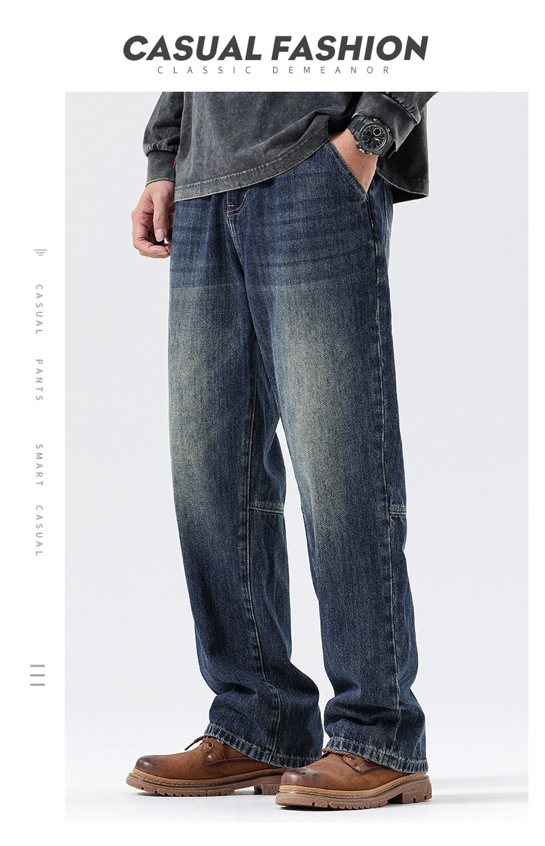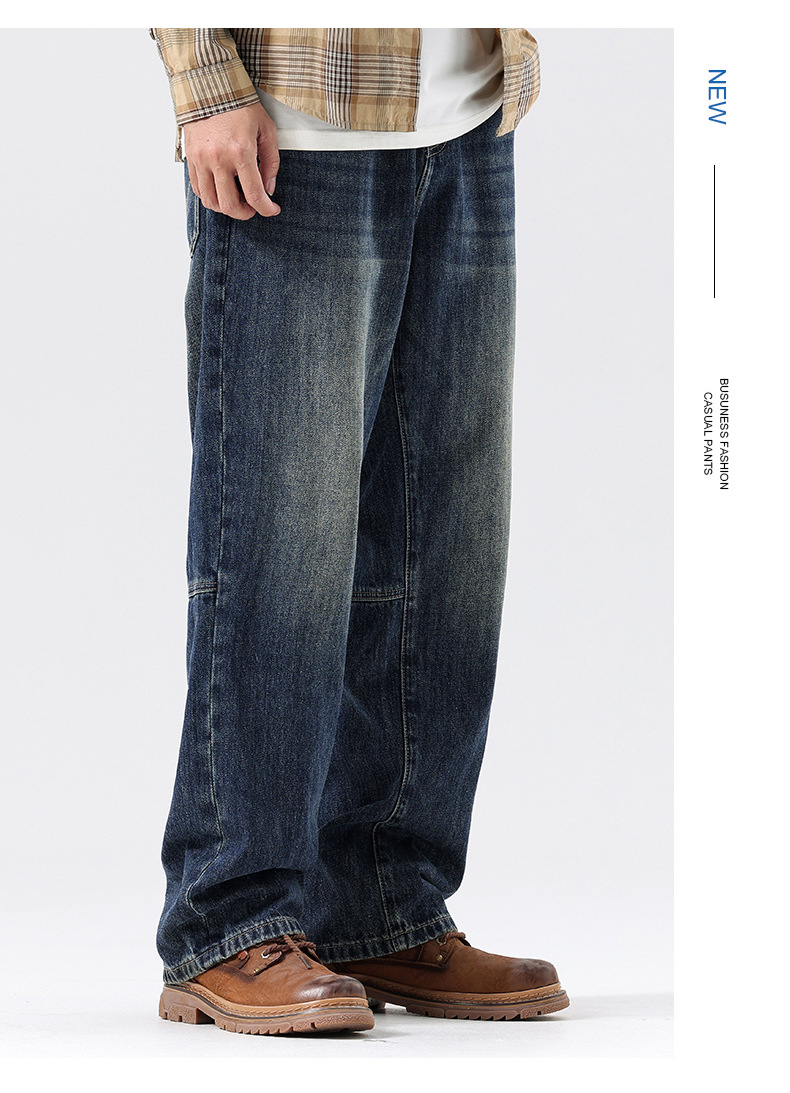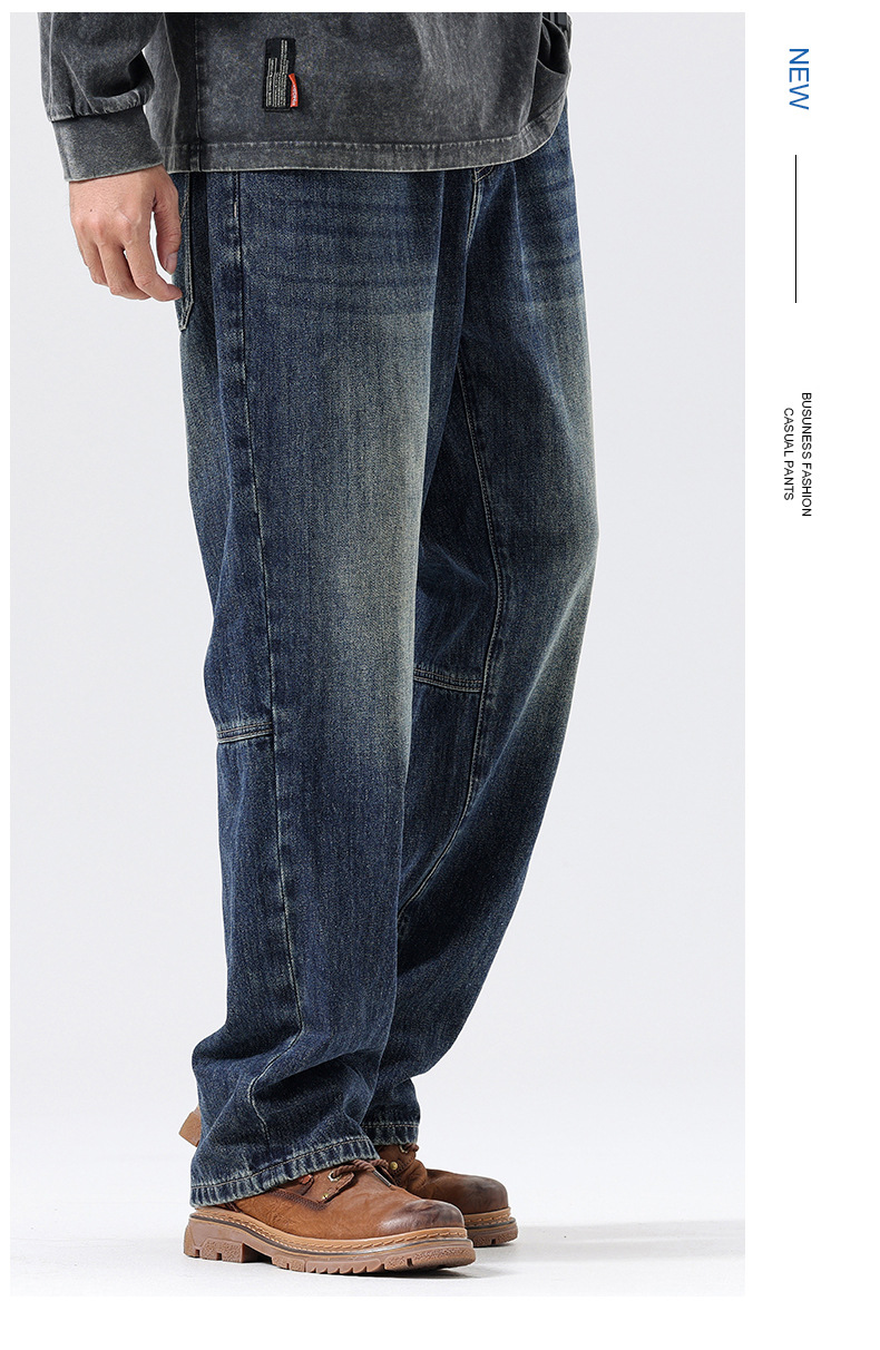 플러스 사이즈 남자의 가을과 겨울 새로운 미국 스타일 하이 스트리트 청바지 남성용 루즈 플러스 사이즈 세탁 슬림 와이드 스트레이트 바지스토어 가기