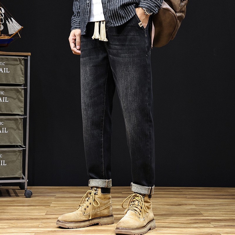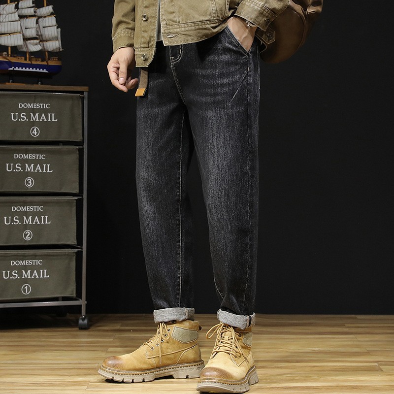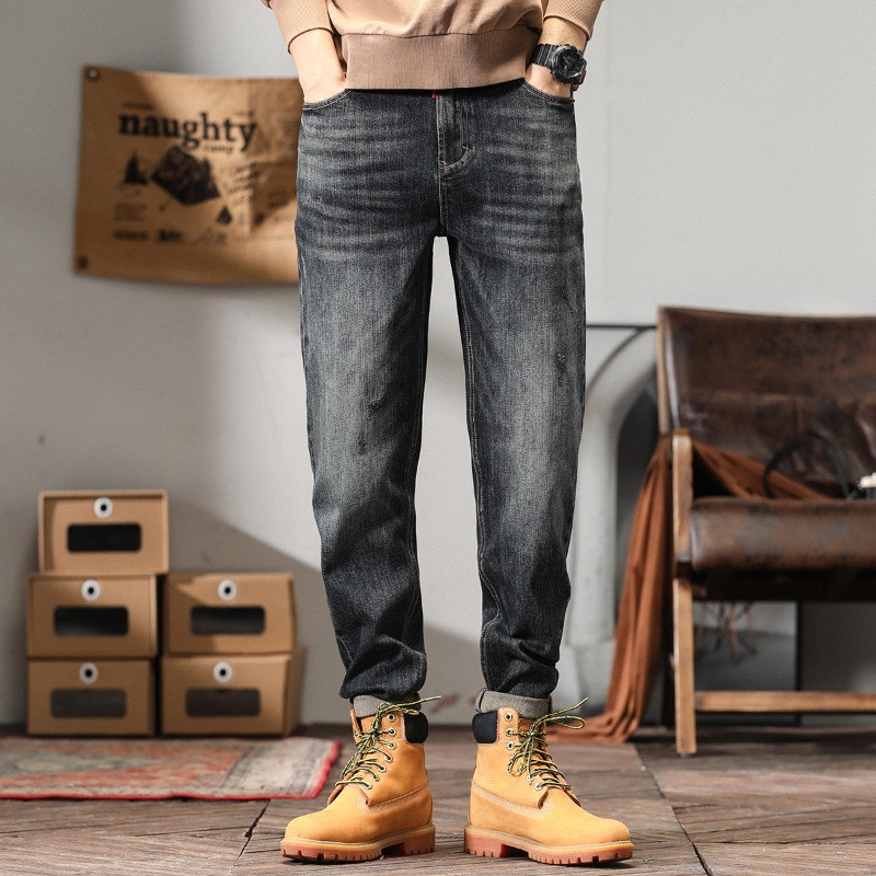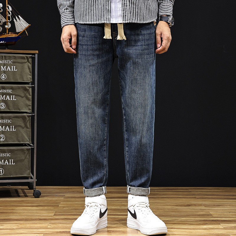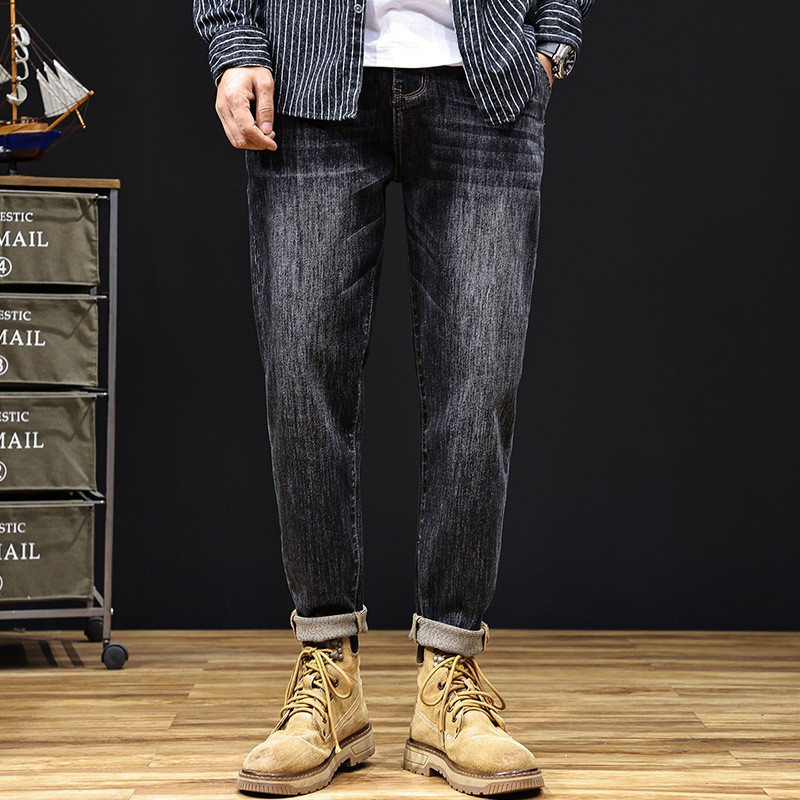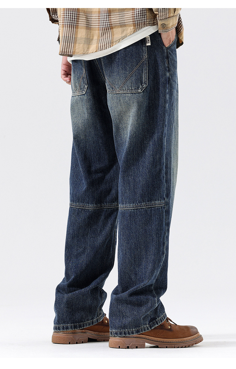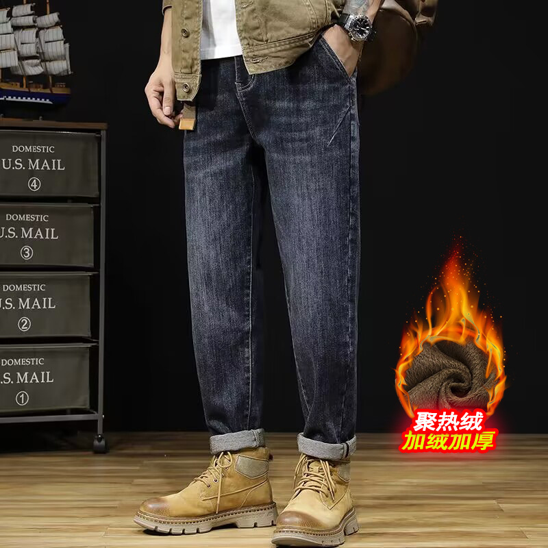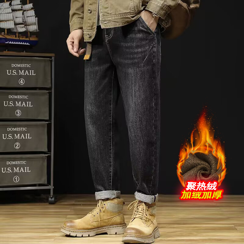 플러스 사이즈 남자의 가을과 겨울 새로운 미국 스타일 하이 스트리트 청바지 남성용 루즈 플러스 사이즈 세탁 슬림 와이드 스트레이트 바지스토어 가기