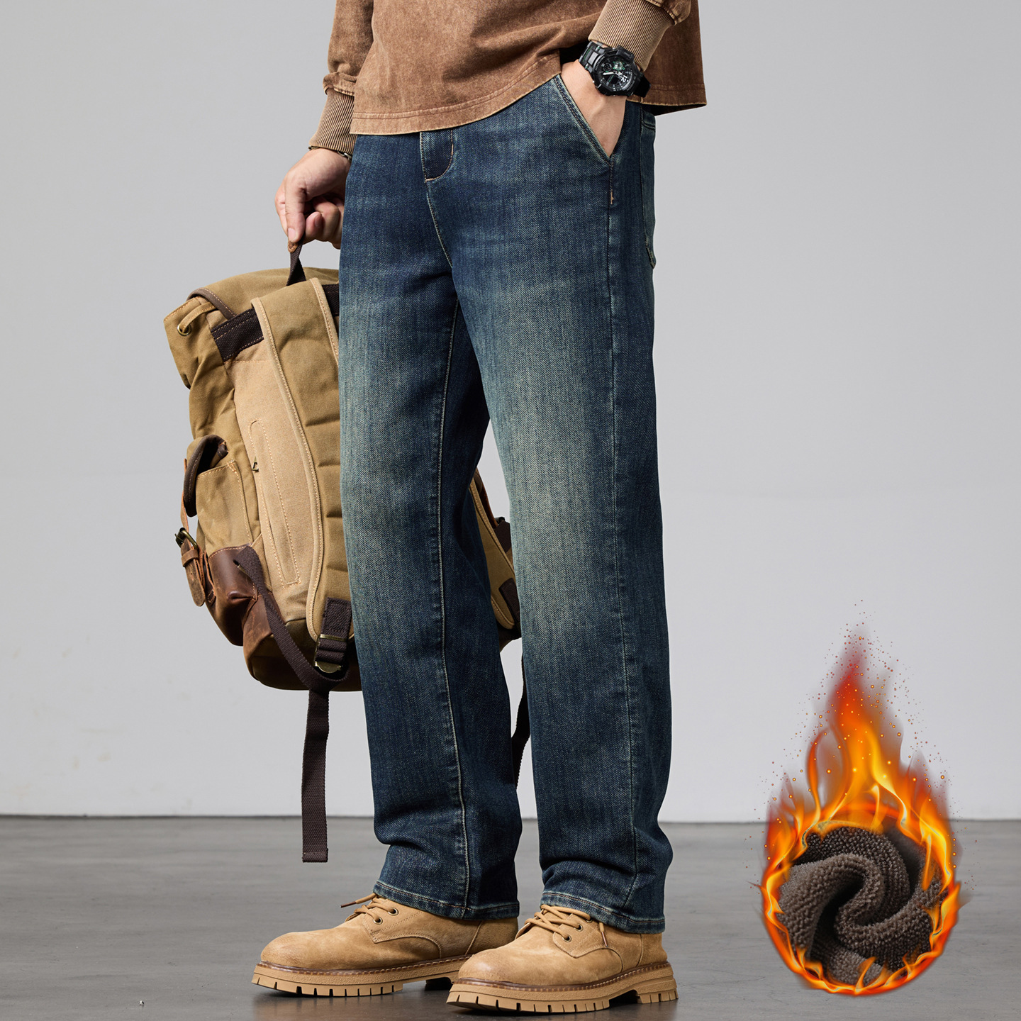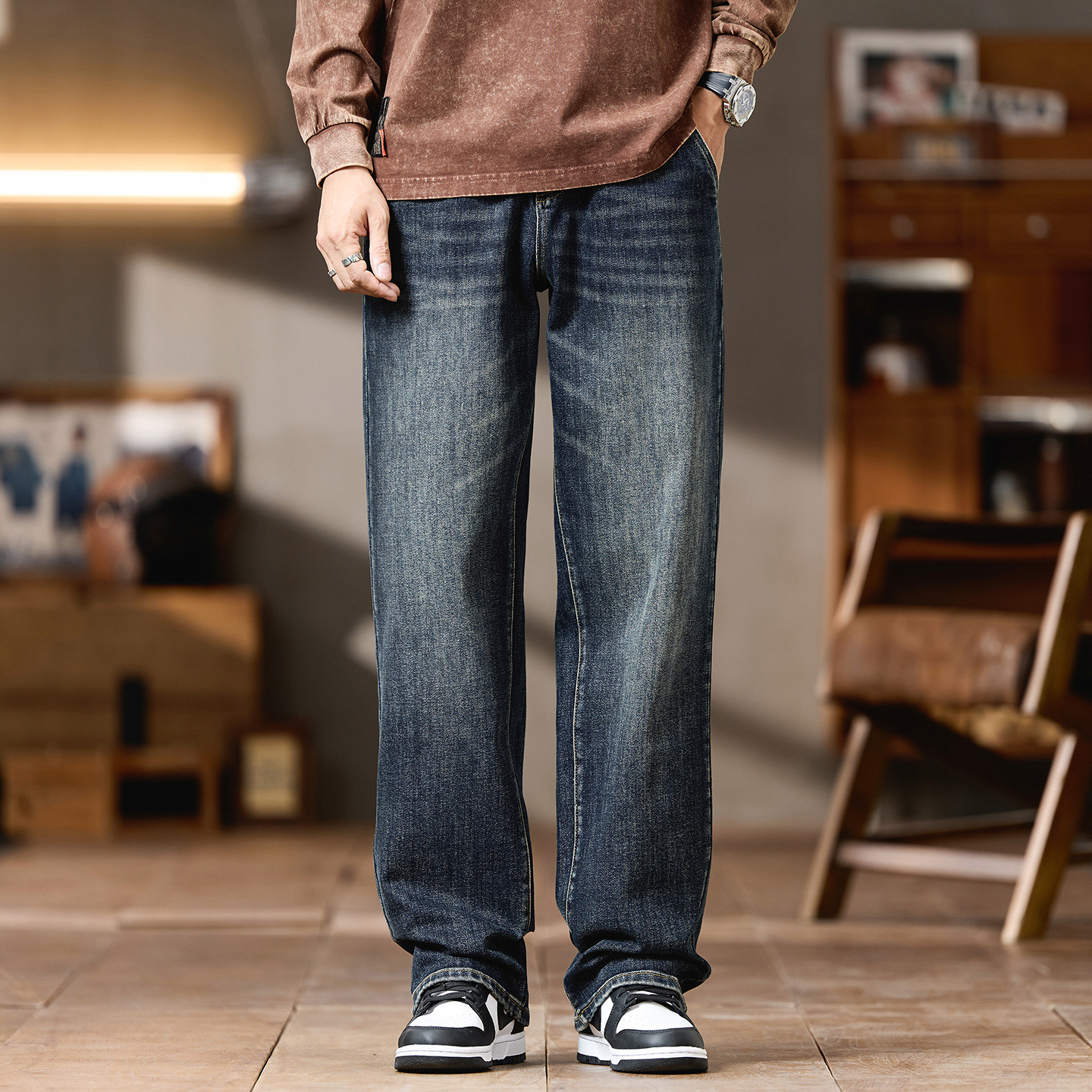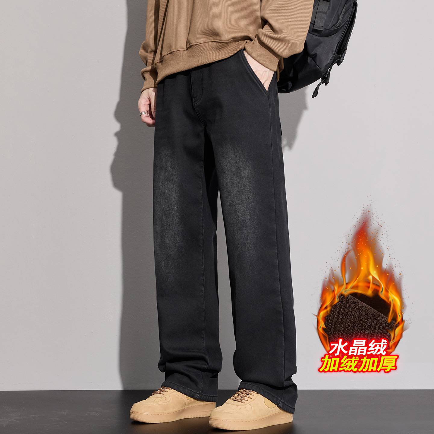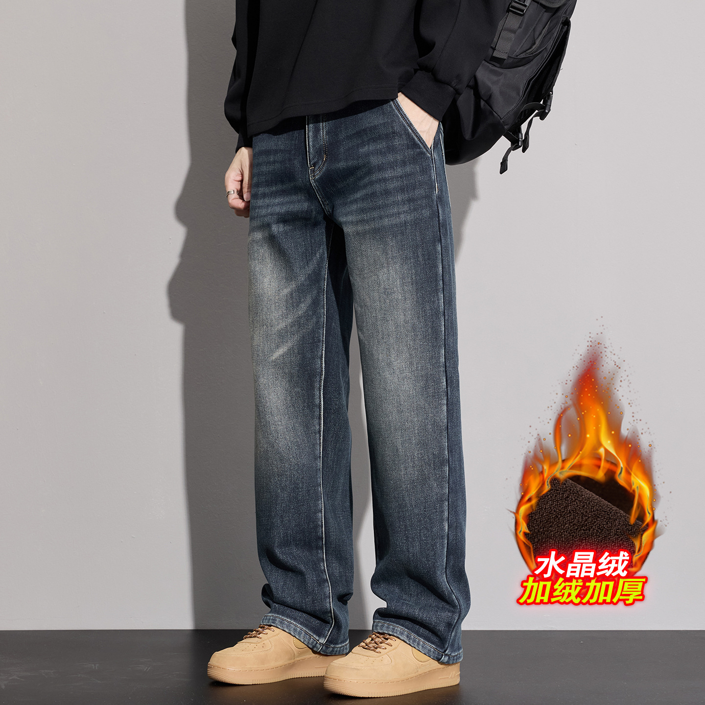 플러스 사이즈 남자의 가을과 겨울 새로운 미국 스타일 하이 스트리트 청바지 남성용 루즈 플러스 사이즈 세탁 슬림 와이드 스트레이트 바지스토어 가기