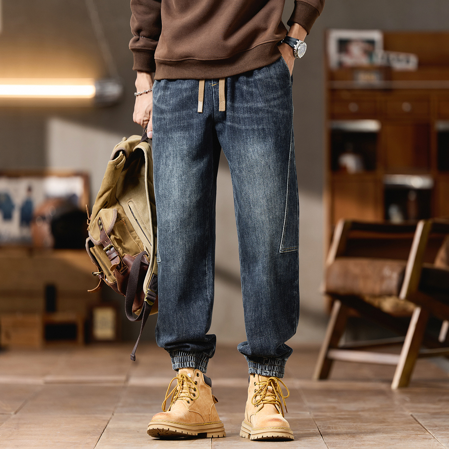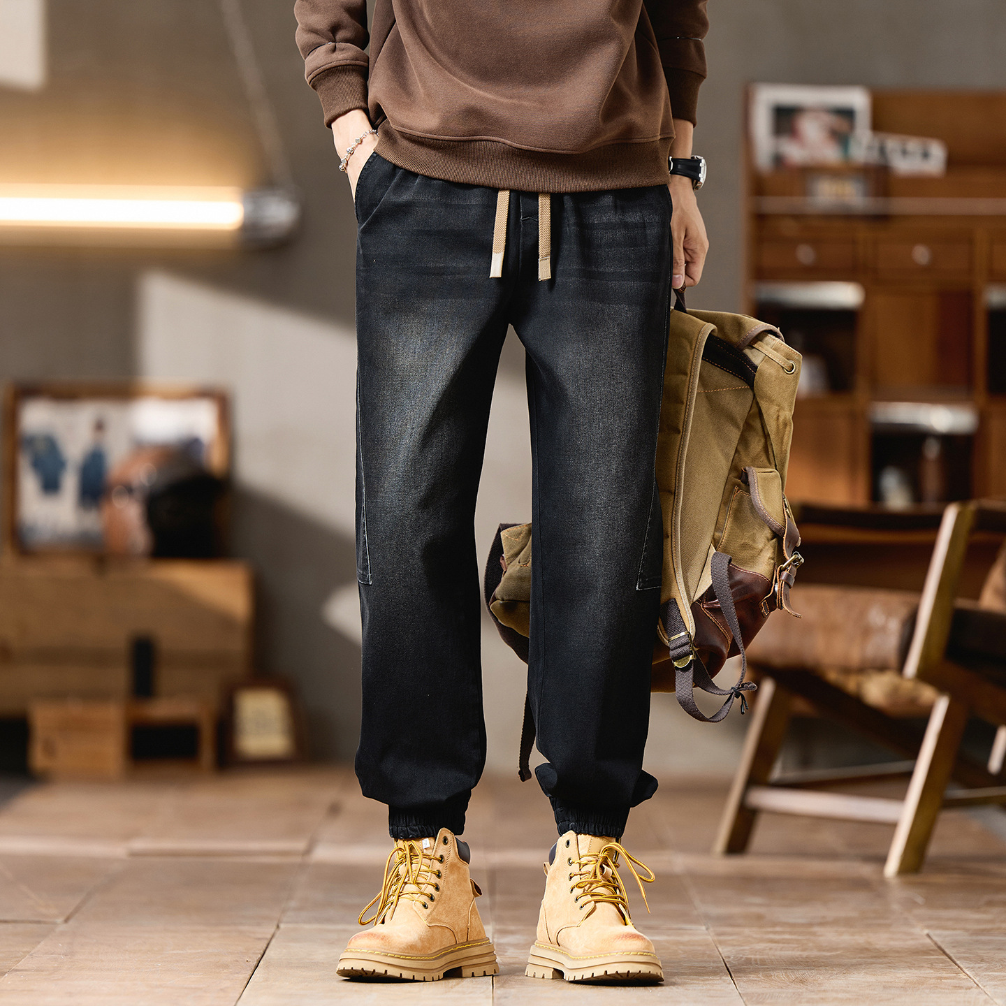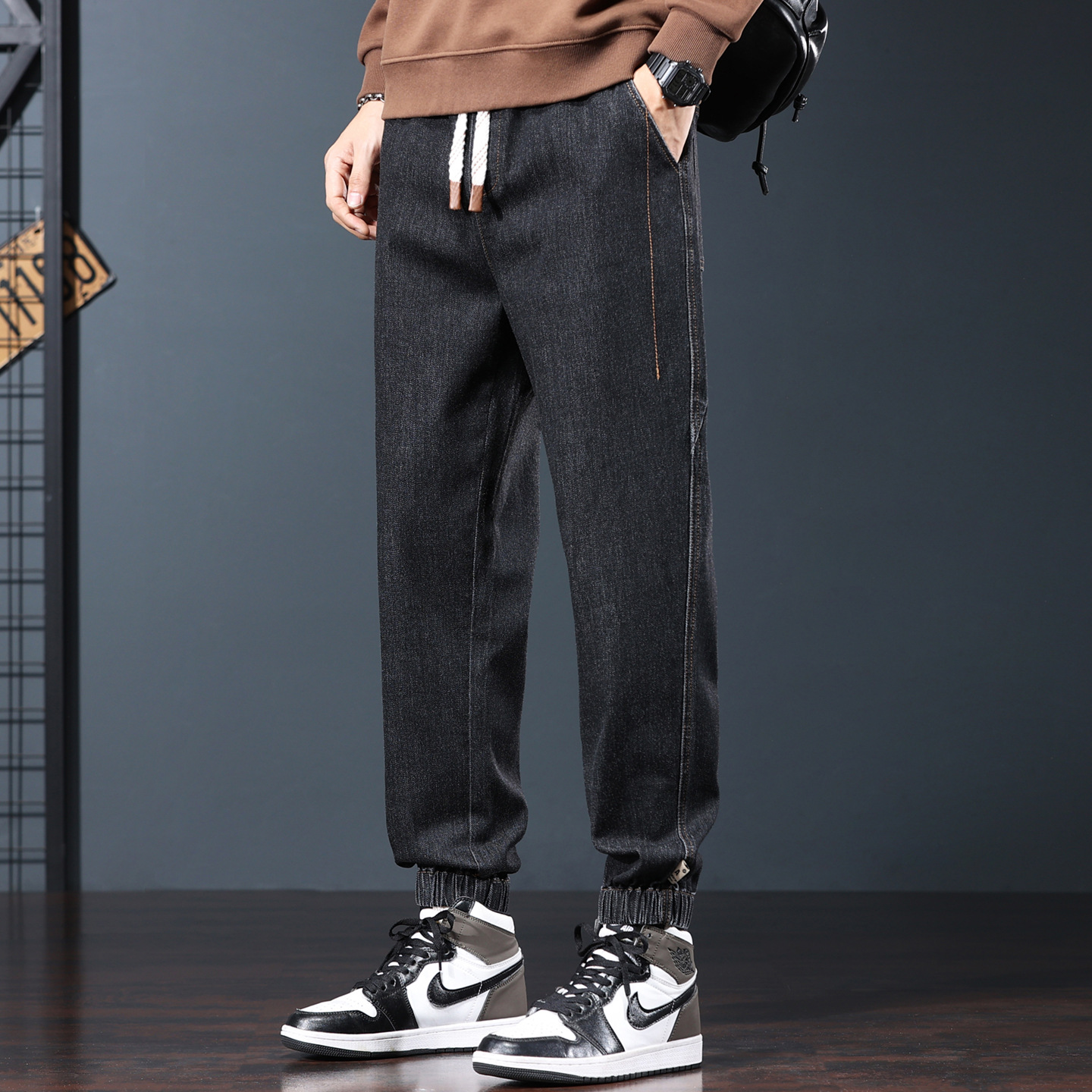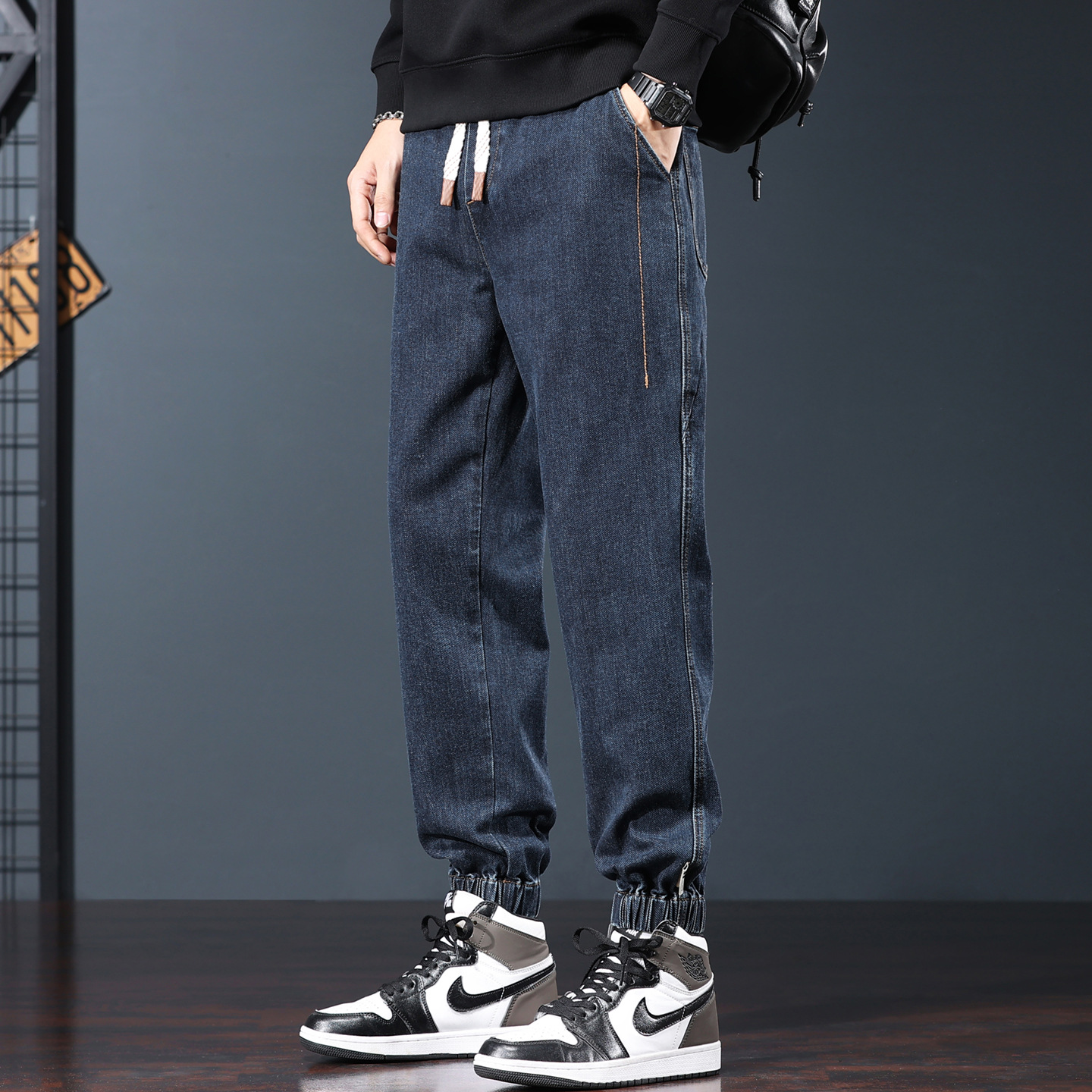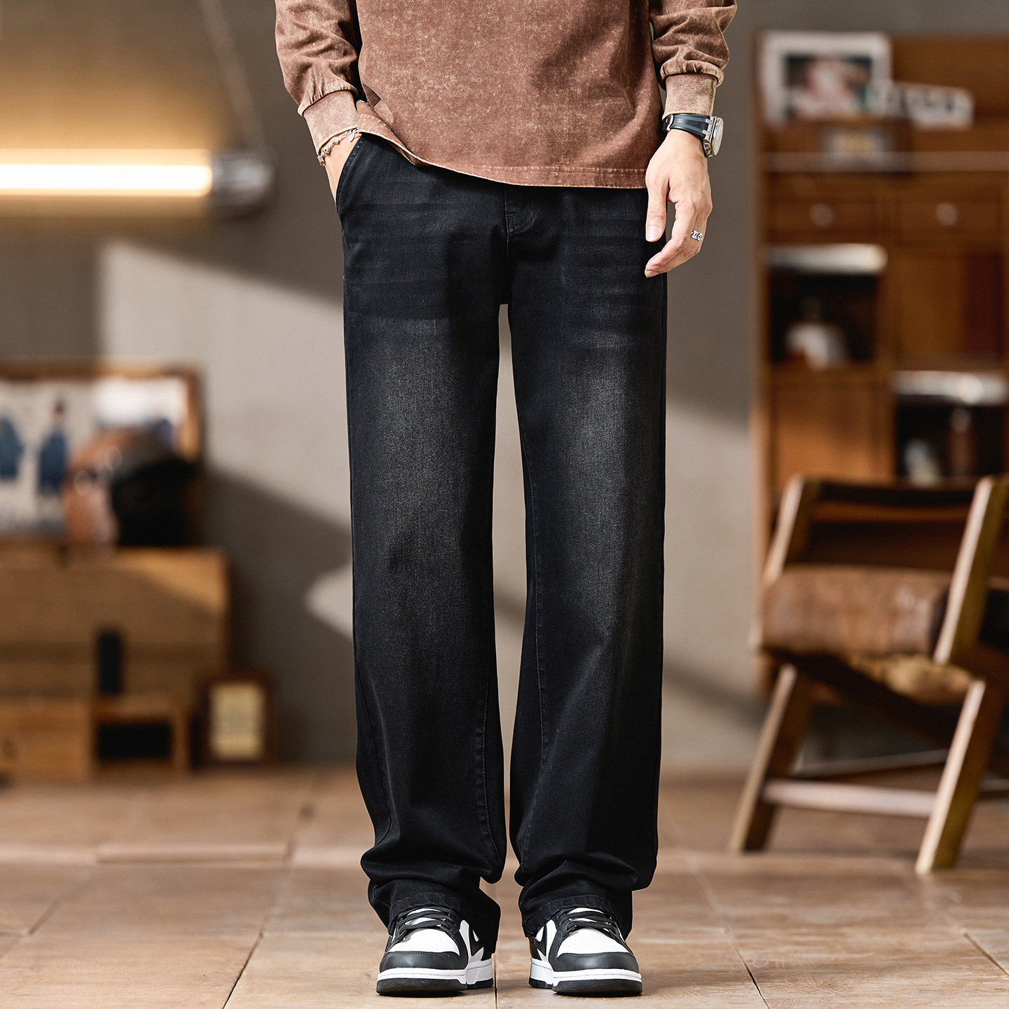 플러스 사이즈 남자의 가을과 겨울 새로운 미국 스타일 하이 스트리트 청바지 남성용 루즈 플러스 사이즈 세탁 슬림 와이드 스트레이트 바지스토어 가기