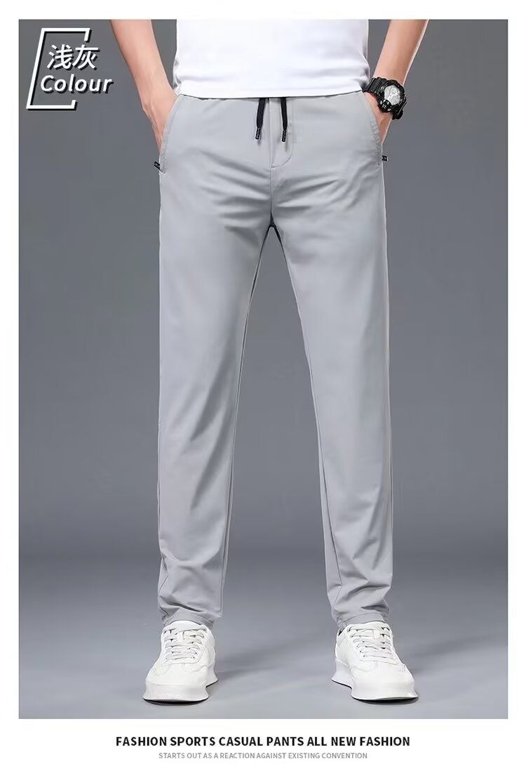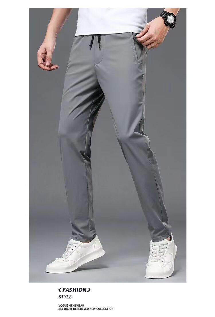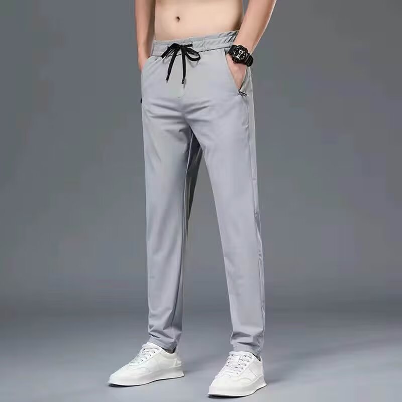 아이스 실크 남자 바지 빠른 건조 얇은 올매치 느슨한 스포츠 통기성 아이스 느낌 에어컨 바지 캐주얼 롱 바지 남자 여름 시즌