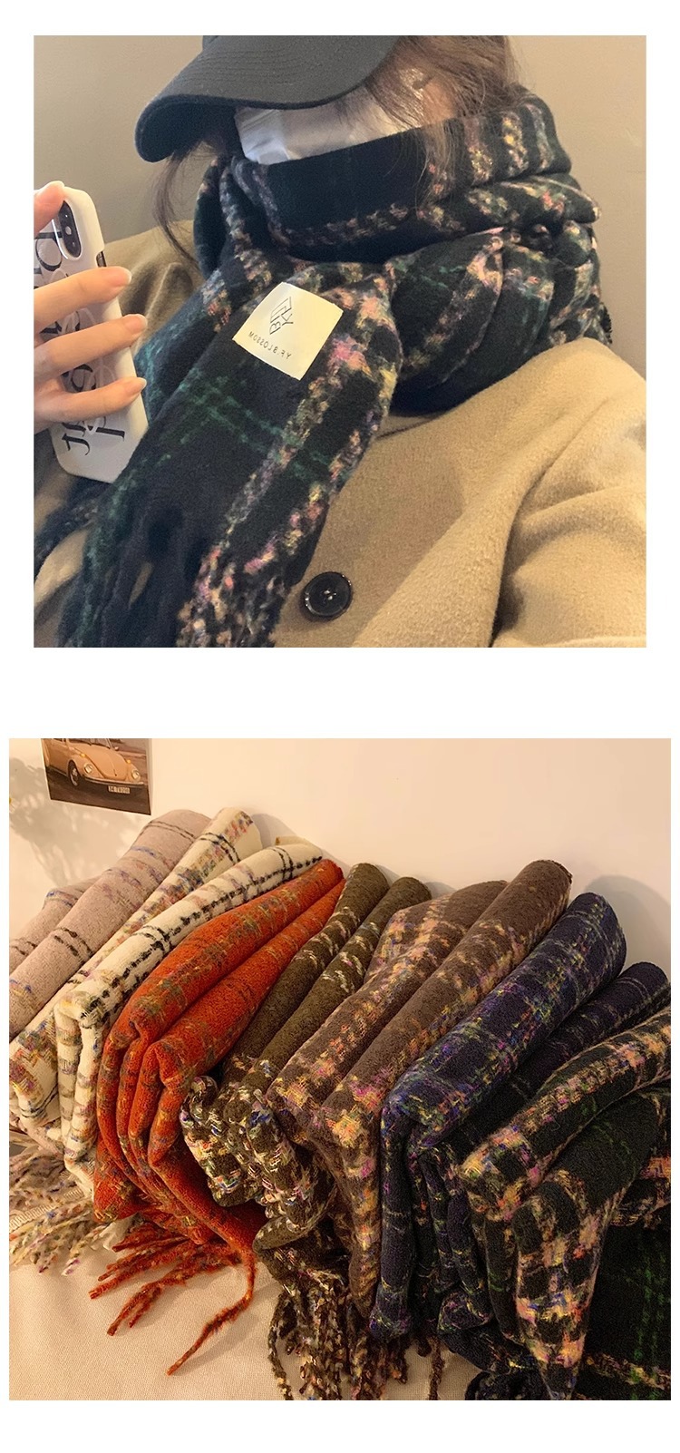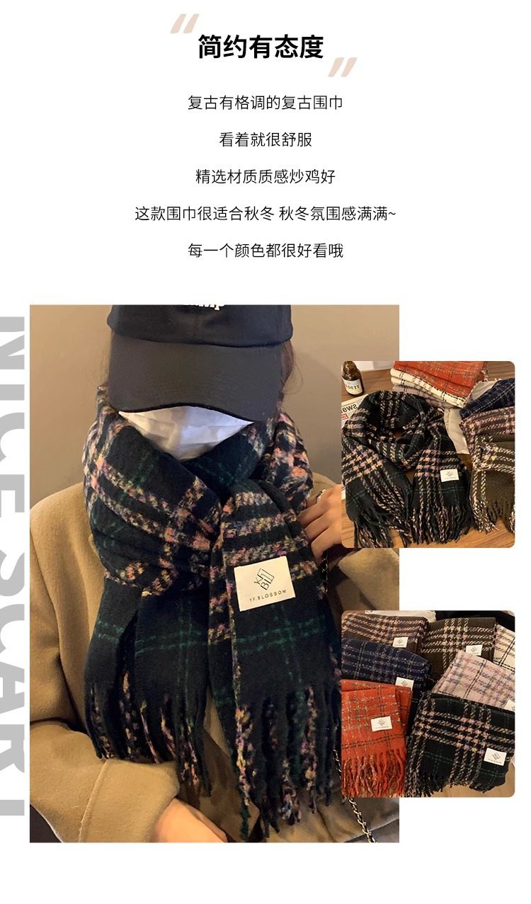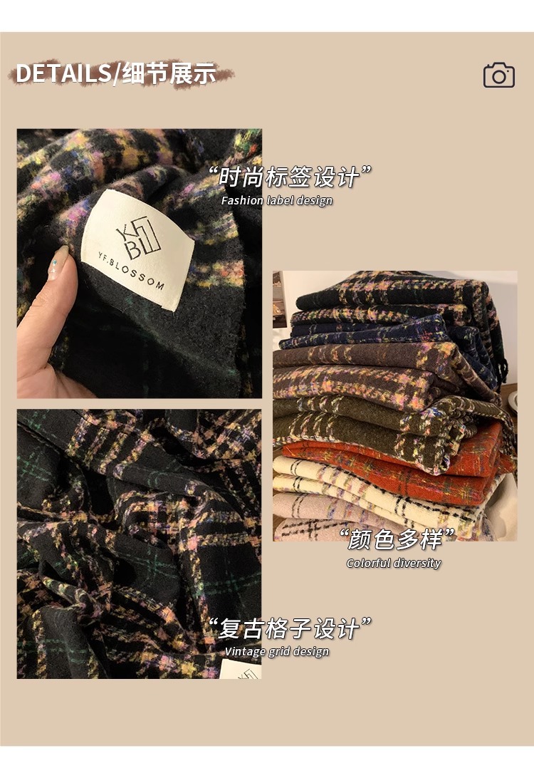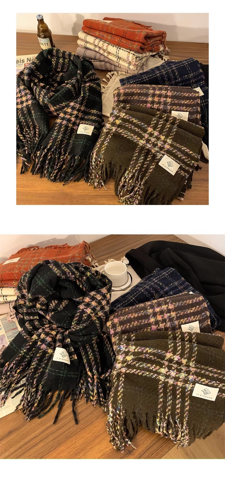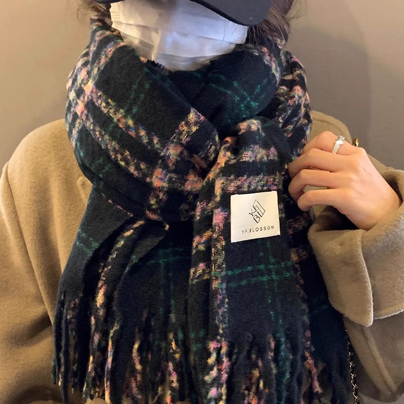 새로운 한국식 복고풍 격자 무늬 스카프 타셀 여자 겨울 올매치 하이 엔드 두꺼운 학생 스카프 목도리