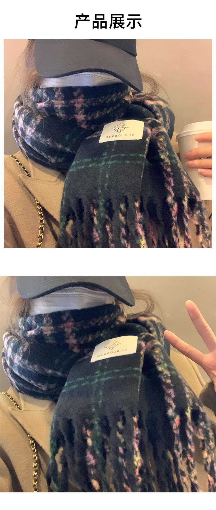 새로운 한국식 복고풍 격자 무늬 스카프 타셀 여자 겨울 올매치 하이 엔드 두꺼운 학생 스카프 목도리스토어 가기