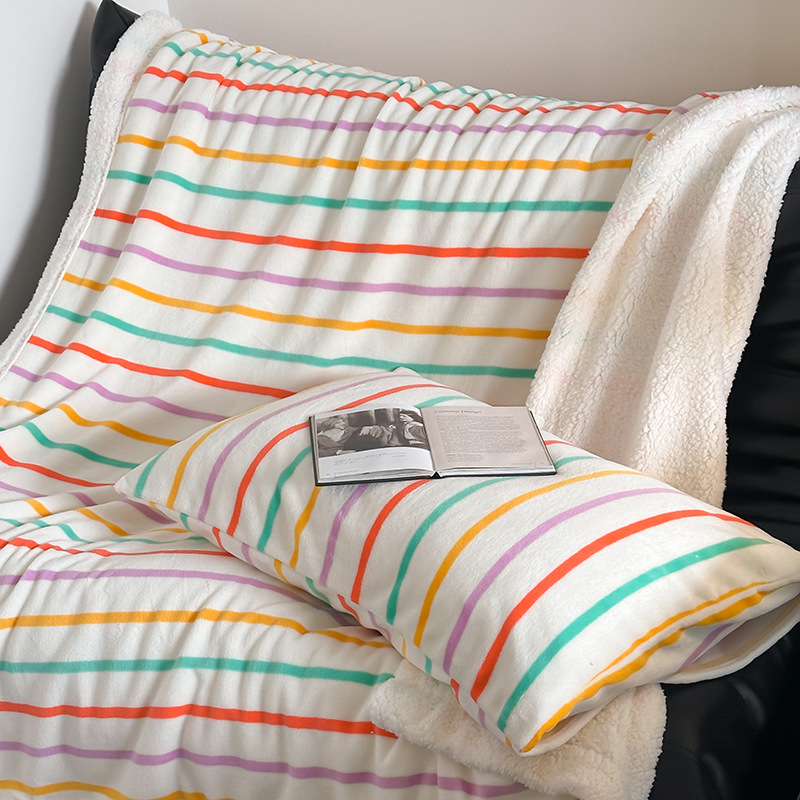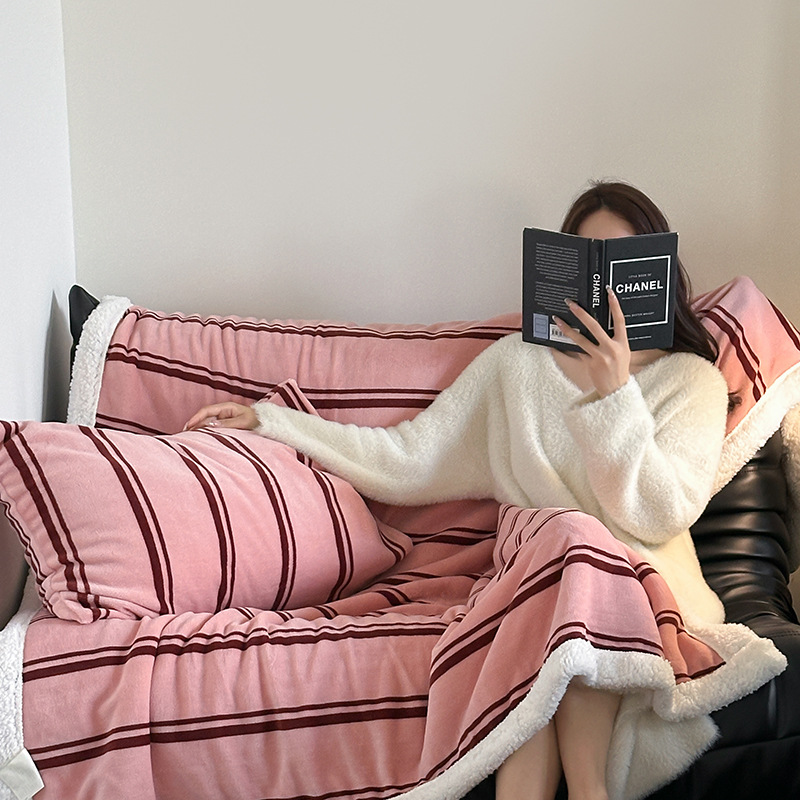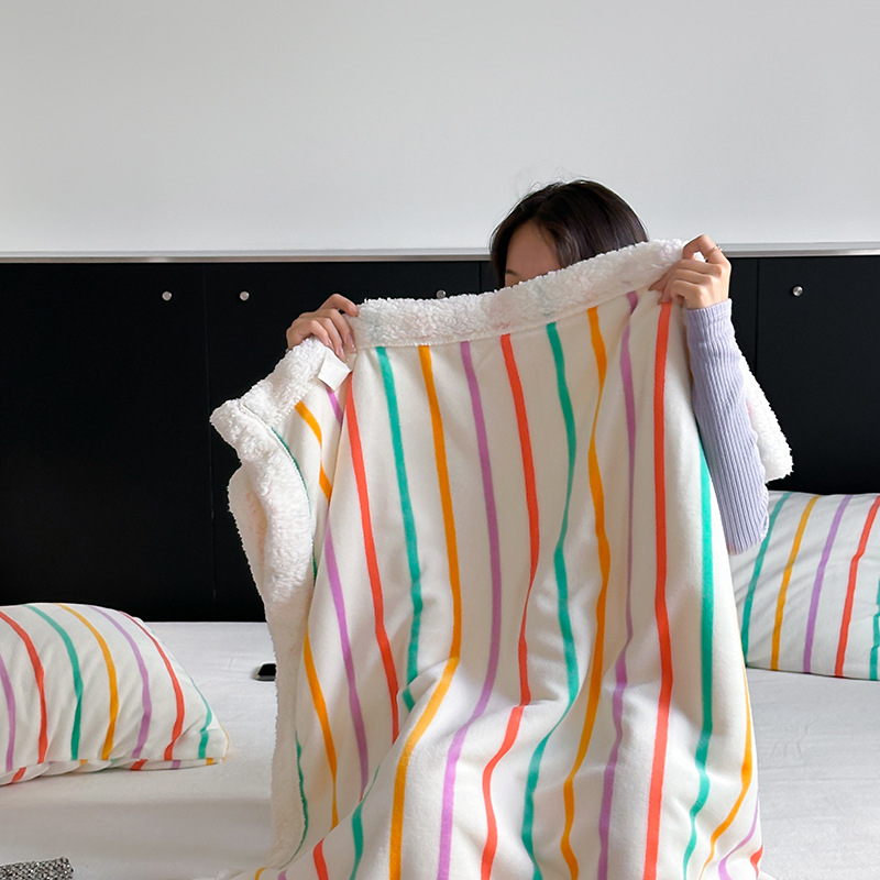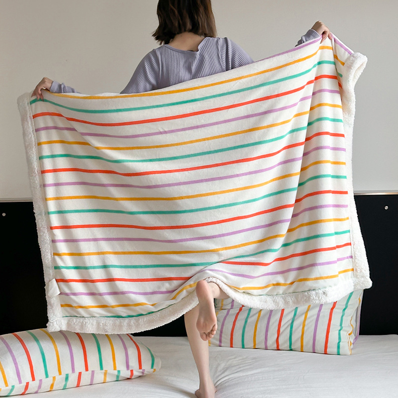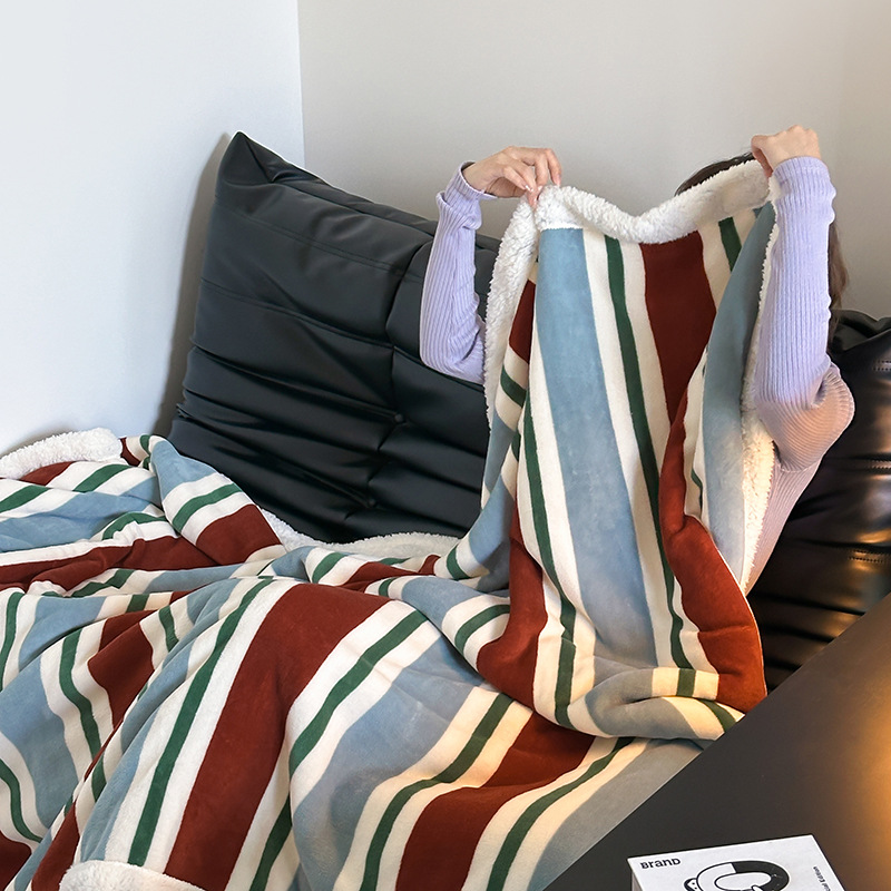 겨울 피부 친화적 인 양고기 양털 사계절 에어컨 담요 줄무늬 미국 빈티지 옐로우 블루 스트립 원 담요 다중 사용 도파민 담요