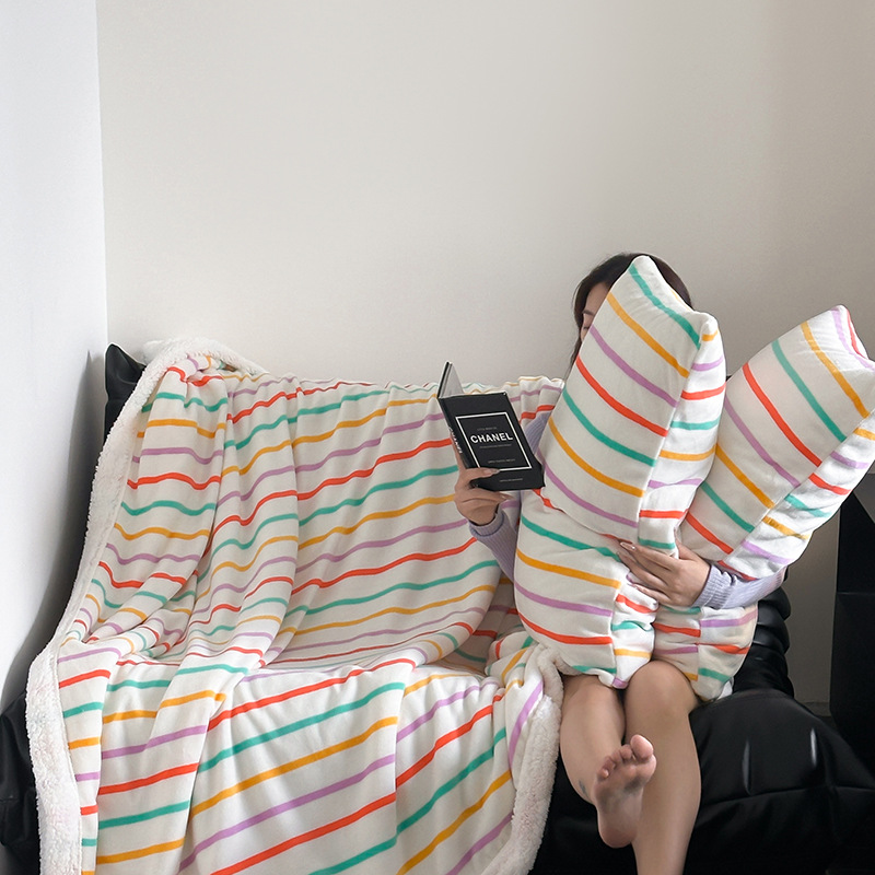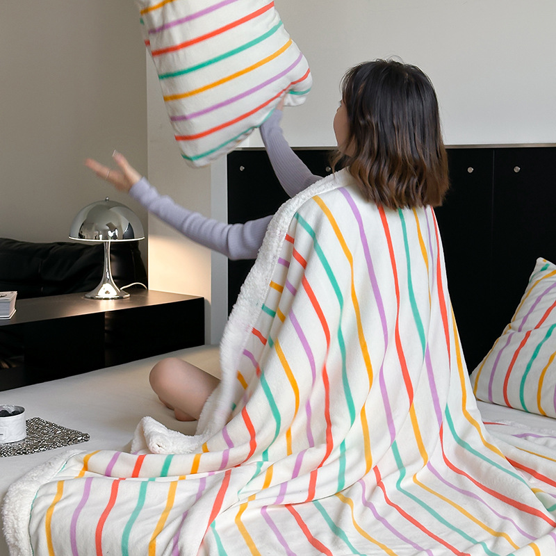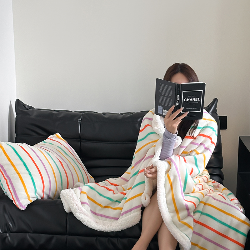 겨울 피부 친화적 인 양고기 양털 사계절 에어컨 담요 줄무늬 미국 빈티지 옐로우 블루 스트립 원 담요 다중 사용 도파민 담요스토어 가기