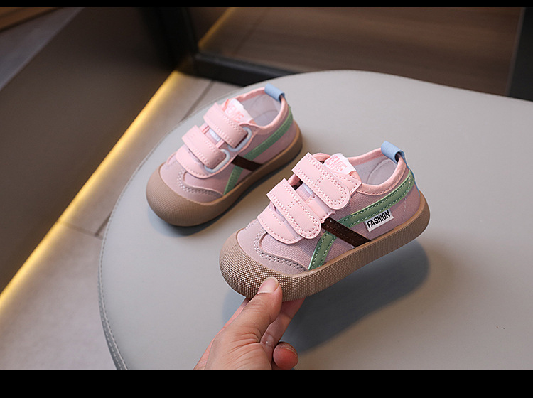 국경 간 직송 인기 캔버스 신발 25 봄, 가을 소년 소녀 천 신발 부드러운 밑창 유치원 실내 아기 신발스토어 가기