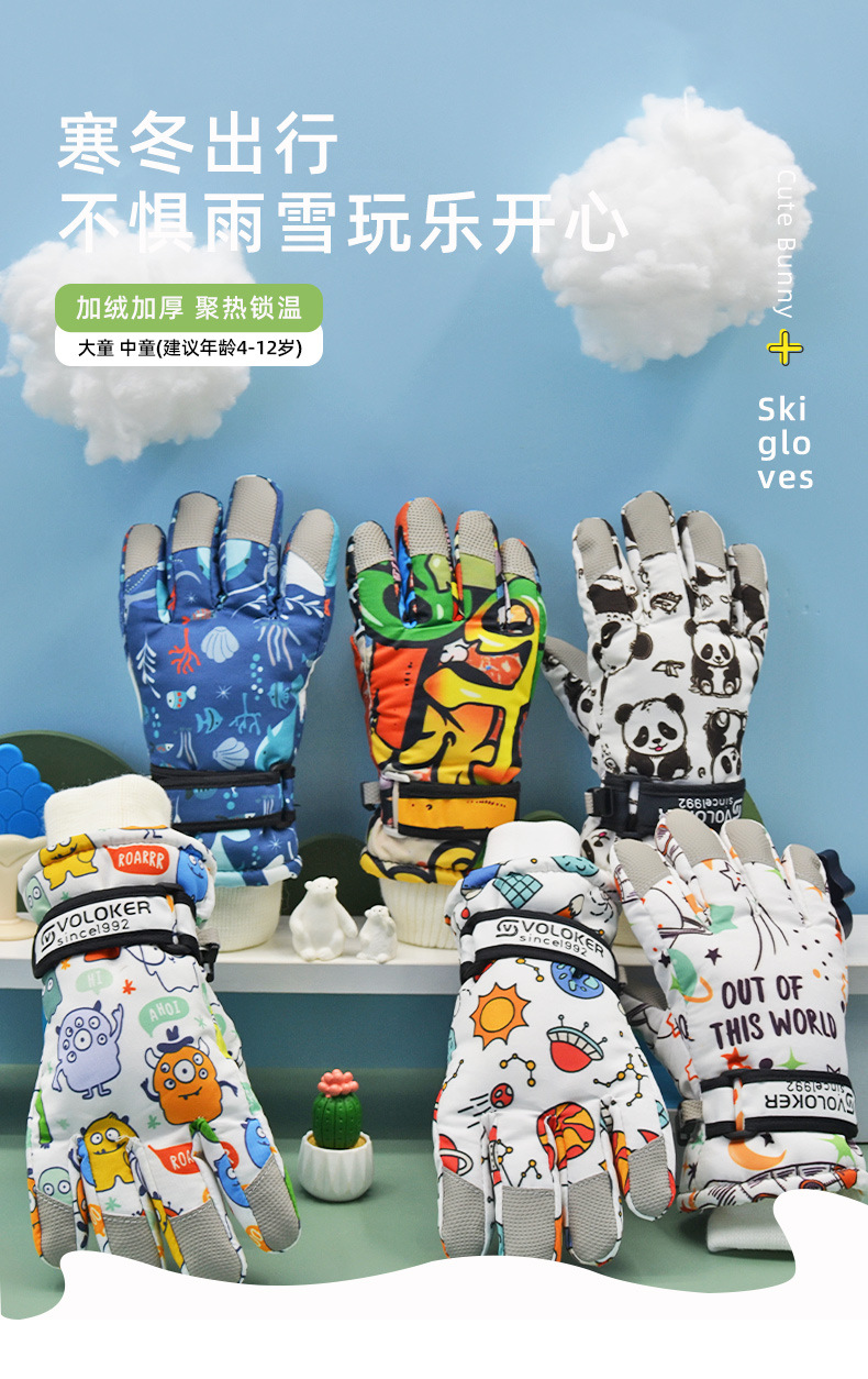 어린이 장갑, 스키용, 따뜻함, 남아용, 터치스크린, 만화, 방수, 미끄럼 방지, 벨벳 안감, 두꺼운, 귀여운, 7-12세 여아용 장갑스토어 가기