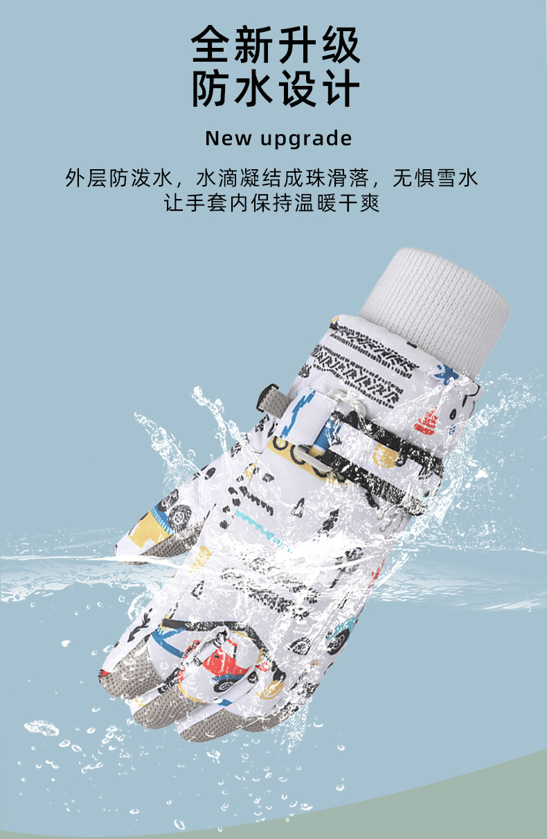 어린이 장갑, 스키용, 따뜻함, 남아용, 터치스크린, 만화, 방수, 미끄럼 방지, 벨벳 안감, 두꺼운, 귀여운, 7-12세 여아용 장갑