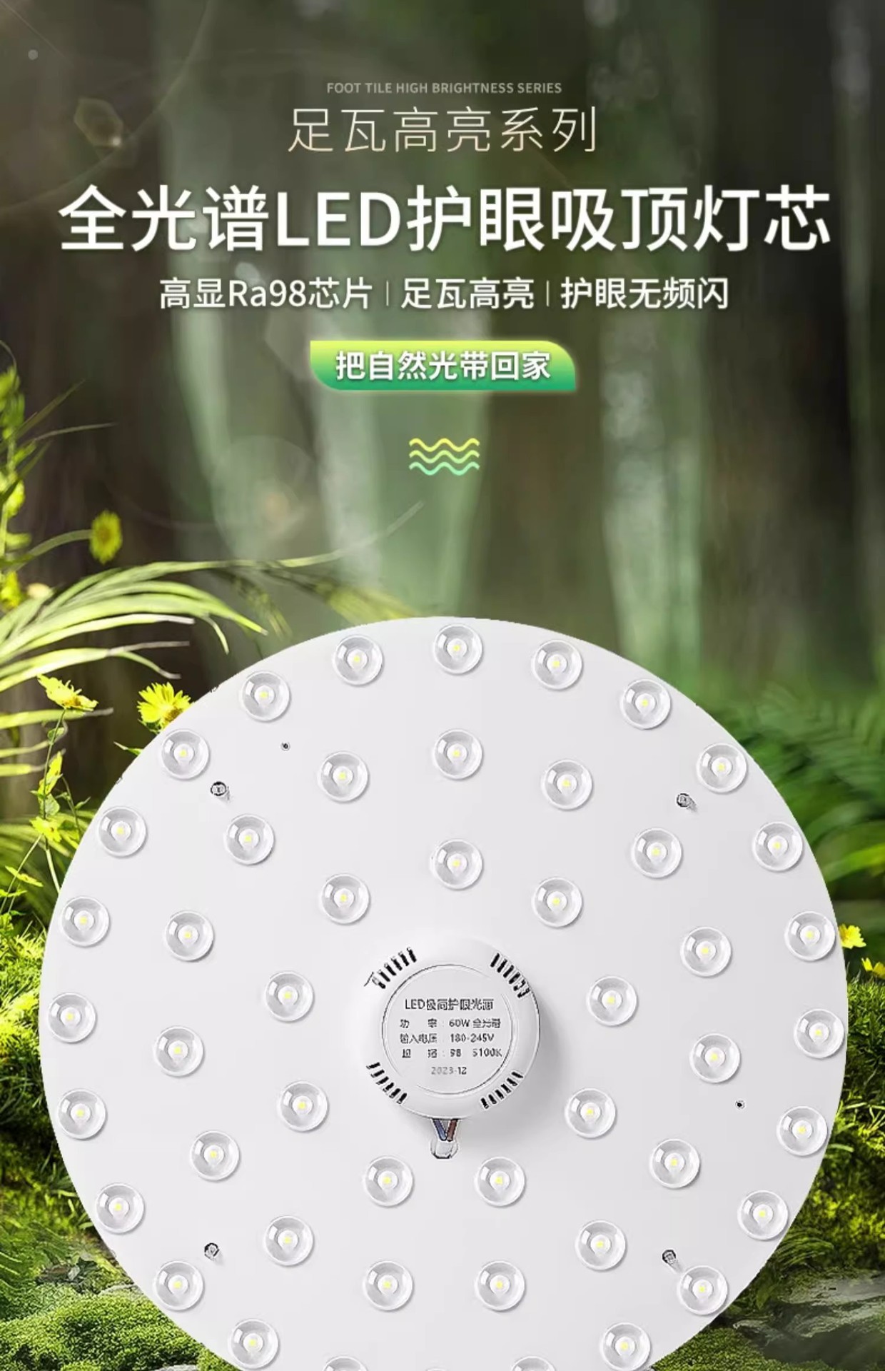 • 60W [하이 디스플레이 Ra98은 눈을 더 잘 보호합니다] 백색광