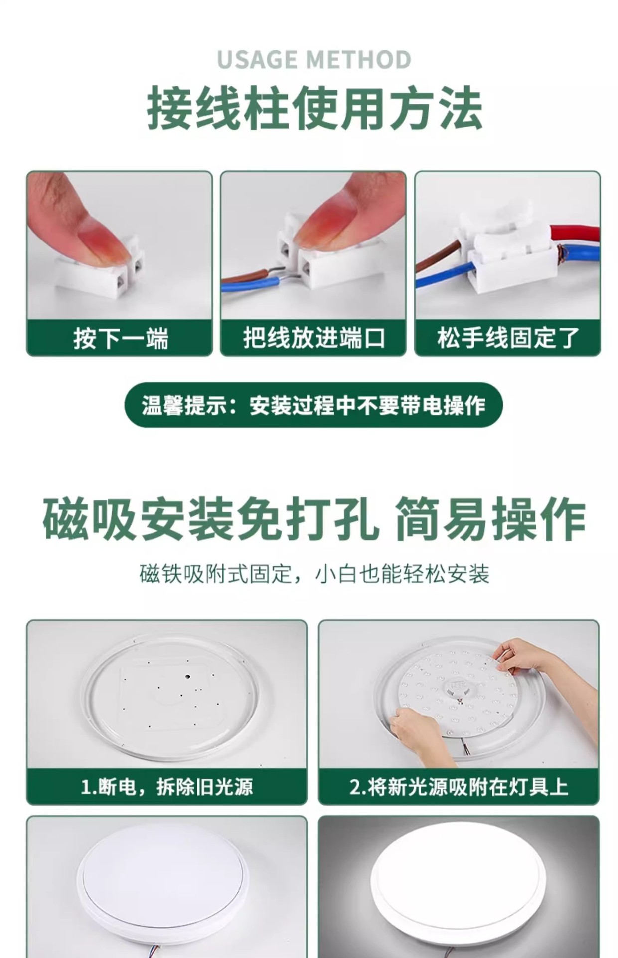 천장 램프 LED 병아리 교체 라운드 램프 패널 가정용 전체 스펙트럼 눈 보호 슈퍼 밝은 교체 광원 에너지 절약 램프 패널