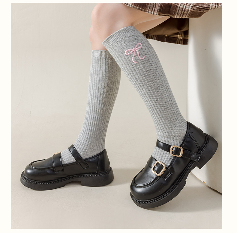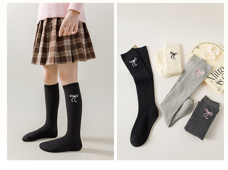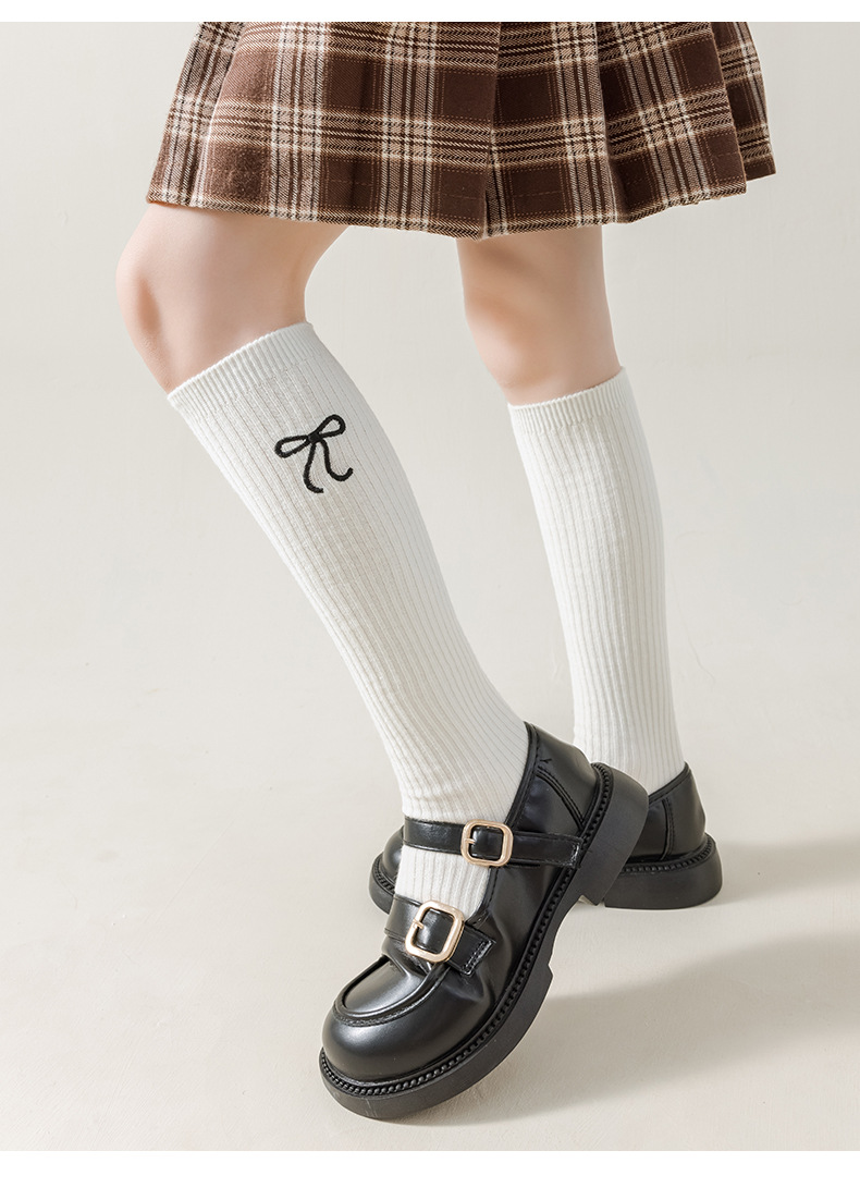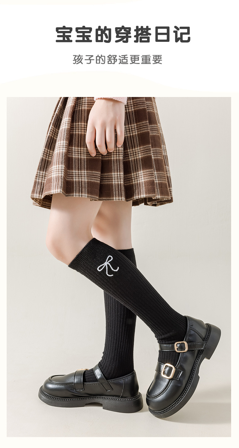어린이 양말 가을과 겨울 새로운 소녀 활 자수 스타킹 학술 스타일 송아지 양말 어린이 하이 코튼 양말스토어 가기