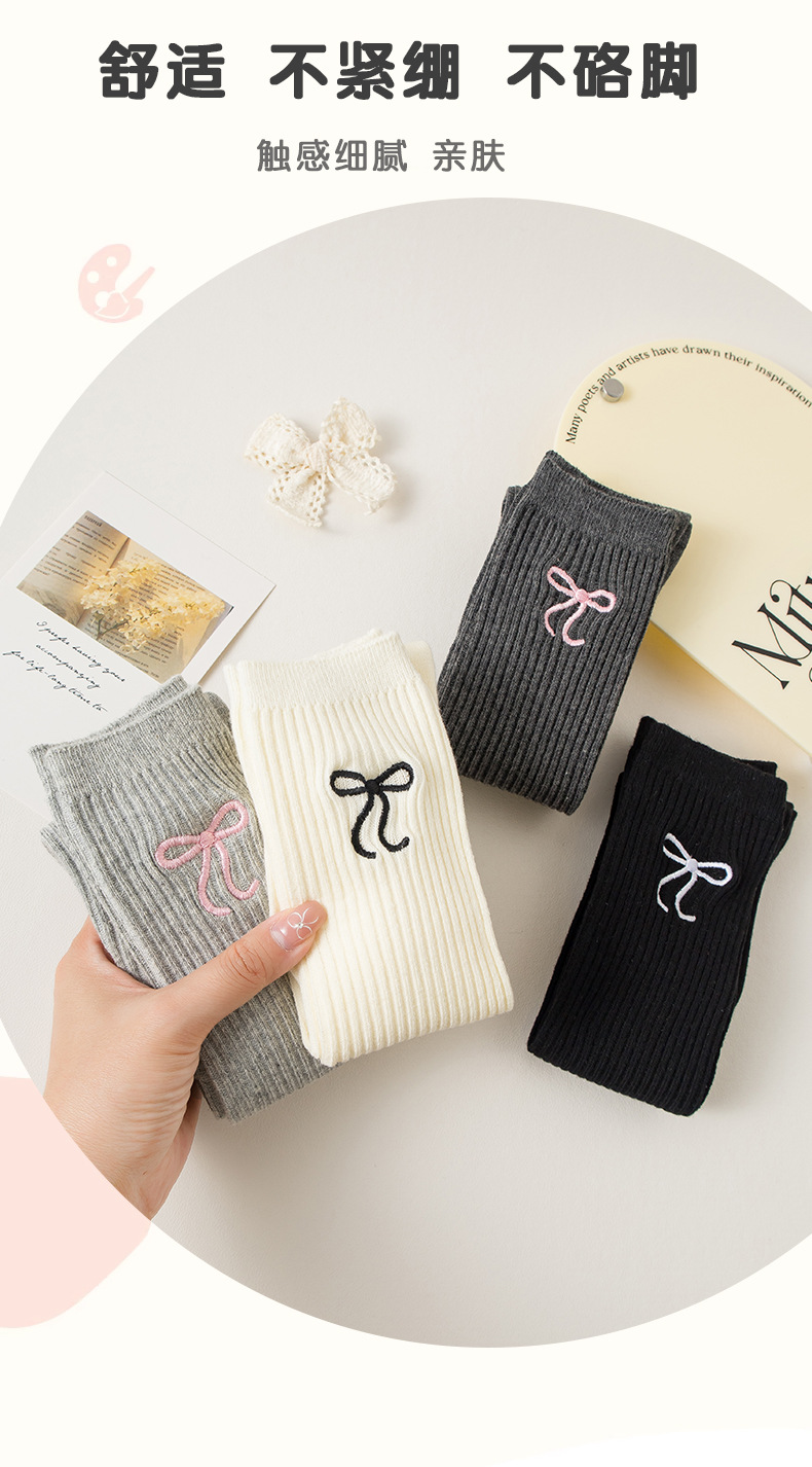 어린이 양말 가을과 겨울 새로운 소녀 활 자수 스타킹 학술 스타일 송아지 양말 어린이 하이 코튼 양말