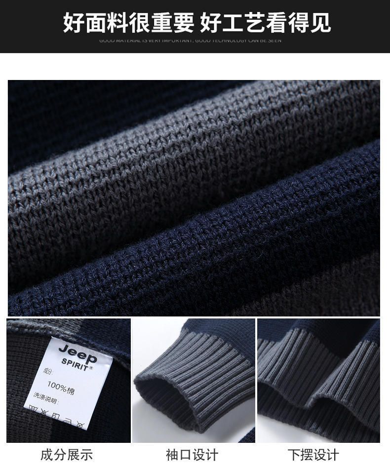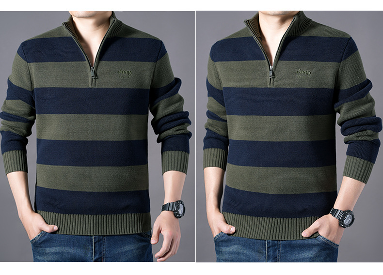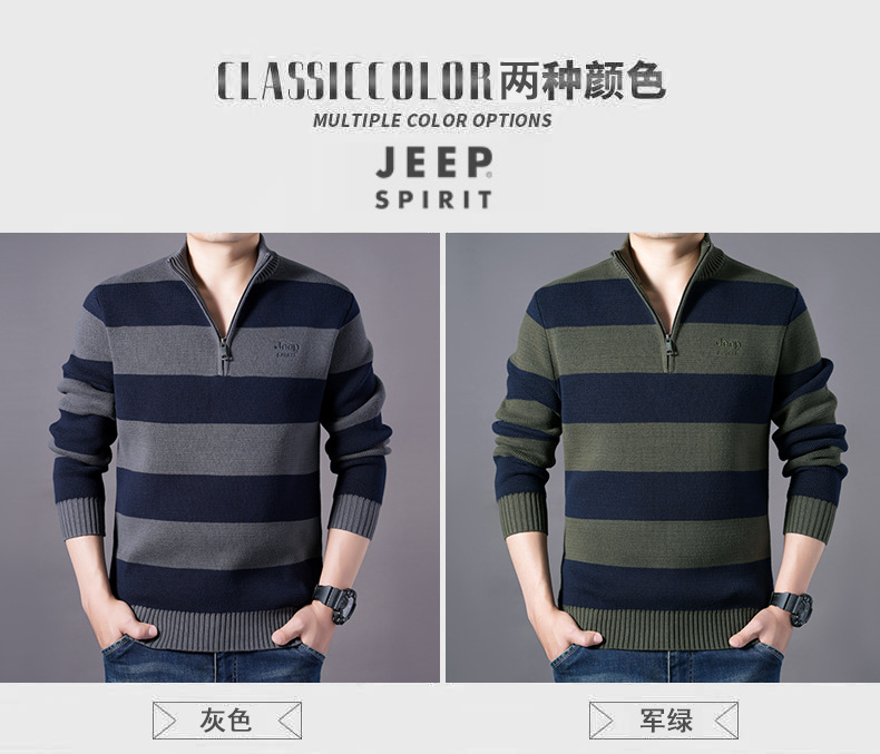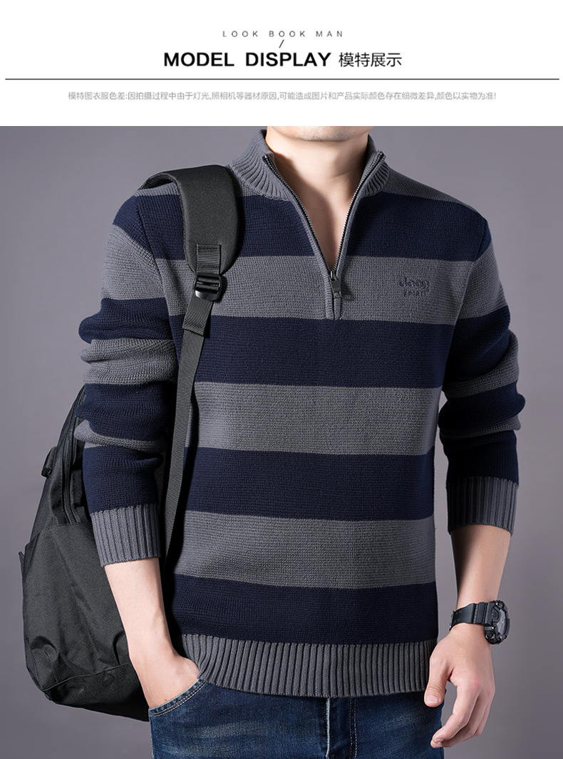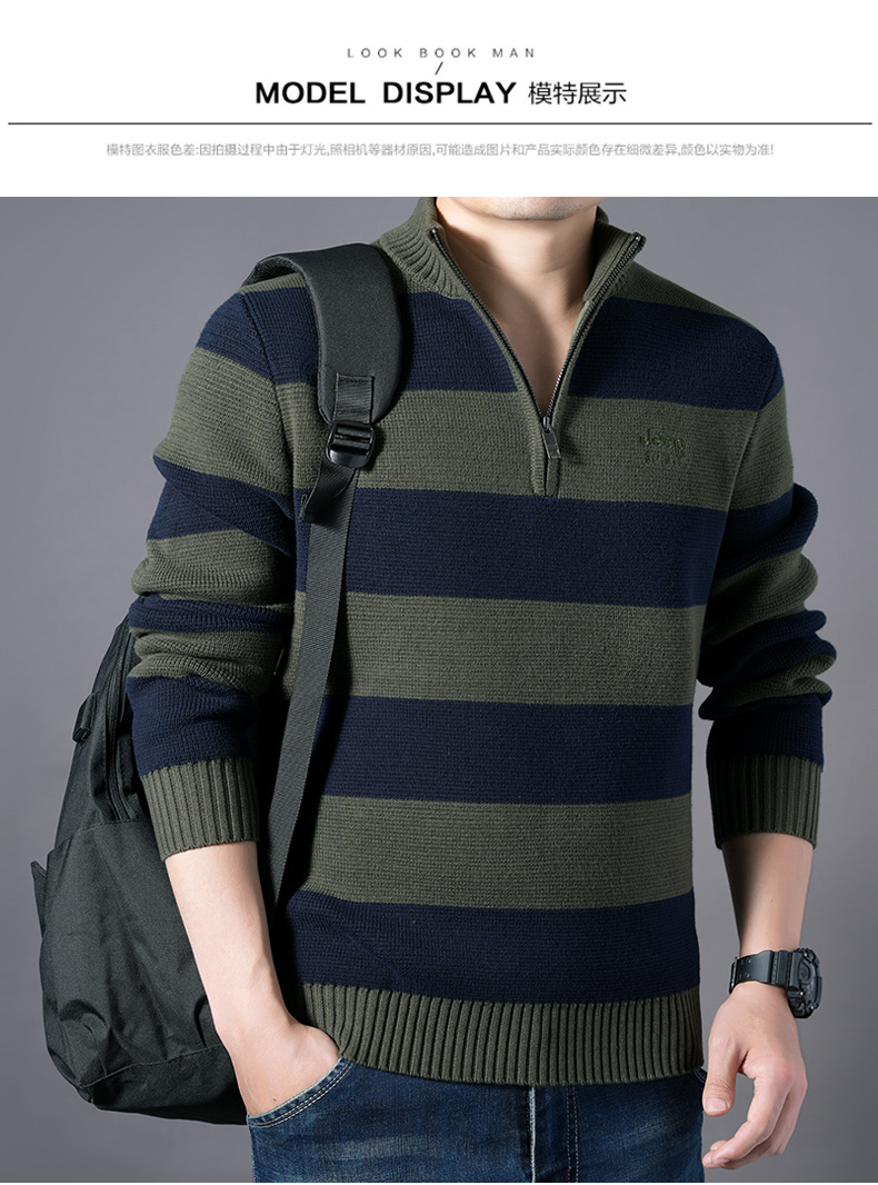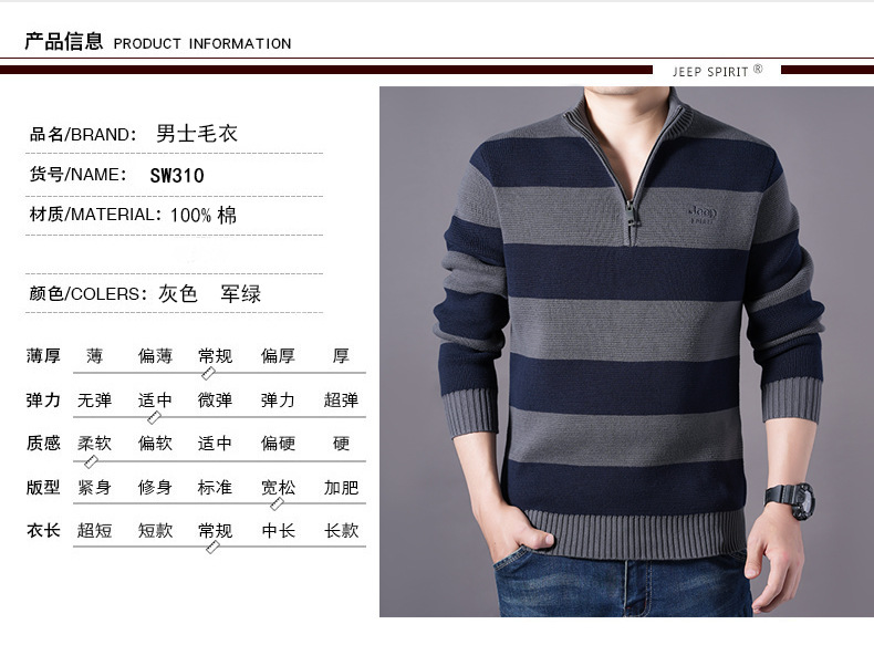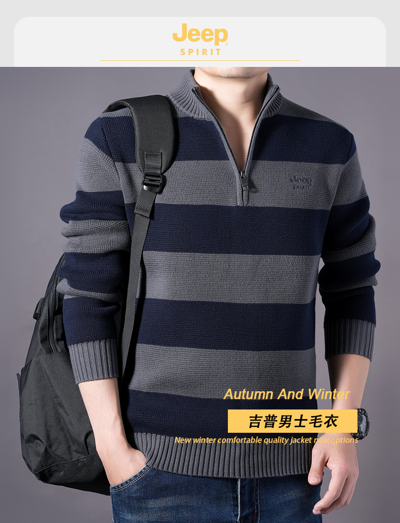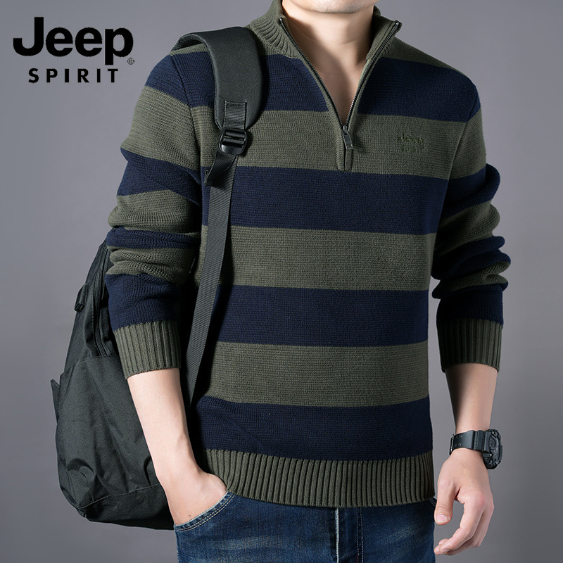 JEEPSPIRIT 스트라이프 스웨터 가을과 겨울 남자 하프 풀 칼라 풀오버 면화 베이스 스웨터 310