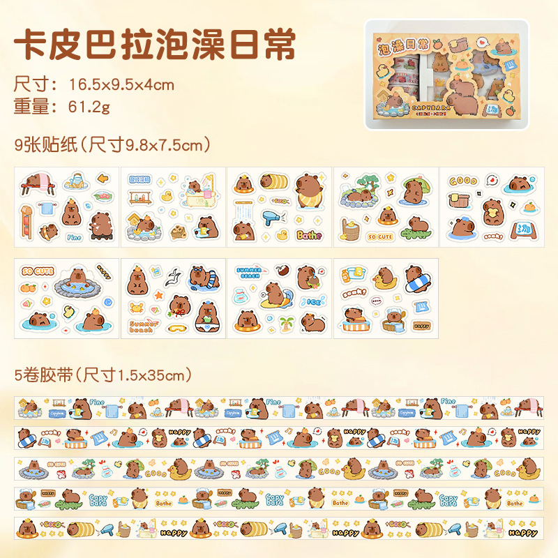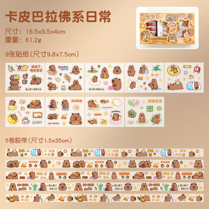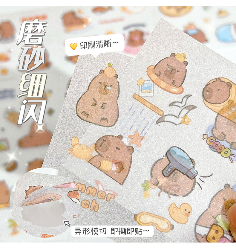 카피 바라 손 계정 테이프 세트 귀여운 카피 바라 레이저 손 계정 스티커 DIY 장식 만화 스티커 도매