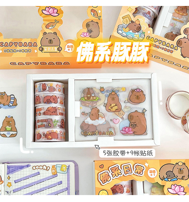 카피 바라 손 계정 테이프 세트 귀여운 카피 바라 레이저 손 계정 스티커 DIY 장식 만화 스티커 도매스토어 가기