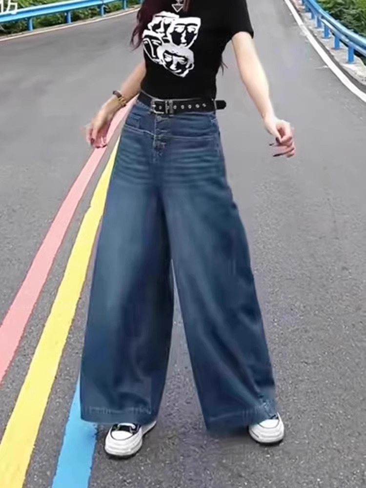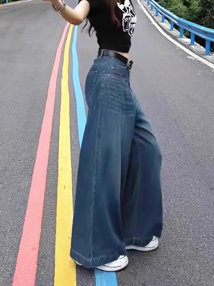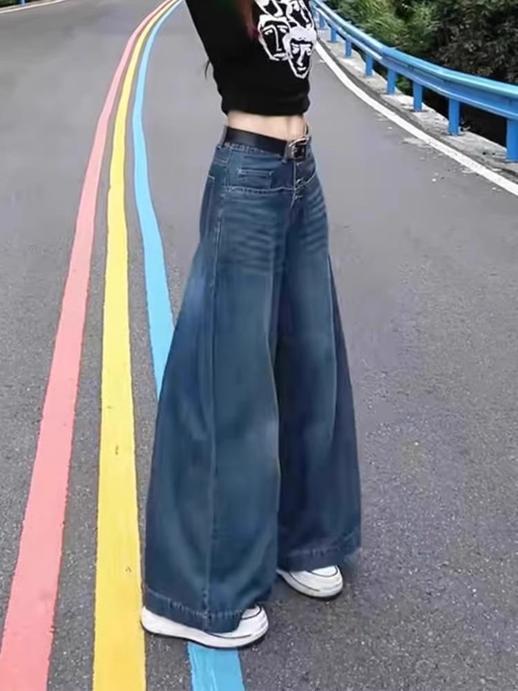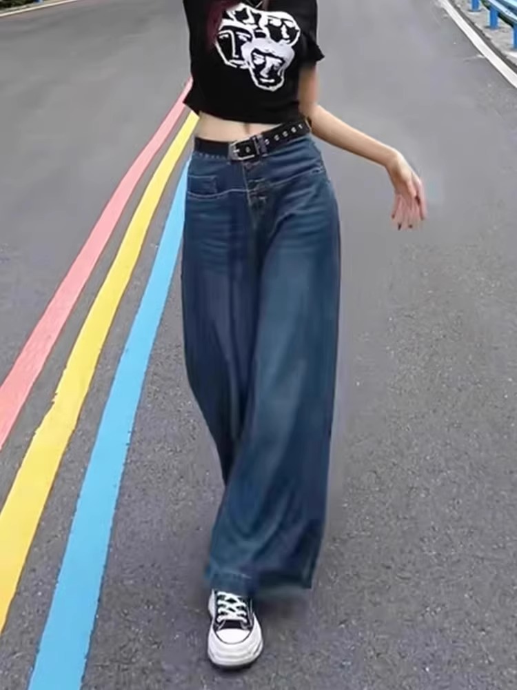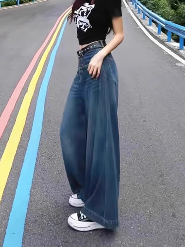 미국식 슬림 올매치 와이드 레그 청바지 여성용 하이 웨이스트 2024 스프링 뉴 루즈 슬림 스트레이트 팬츠