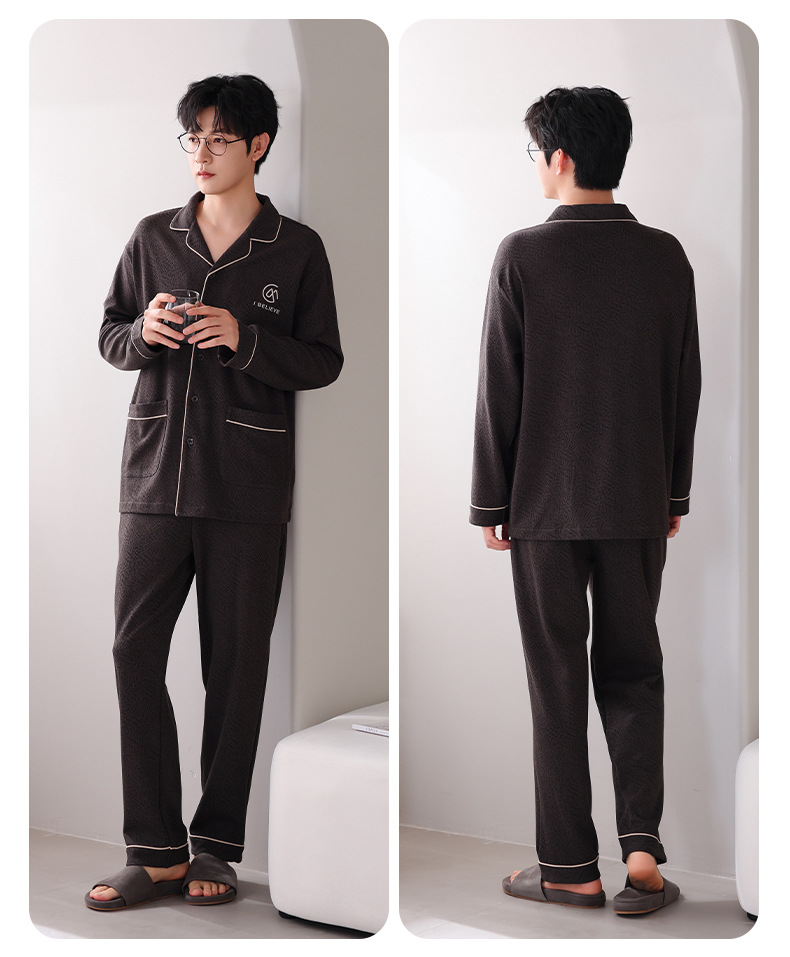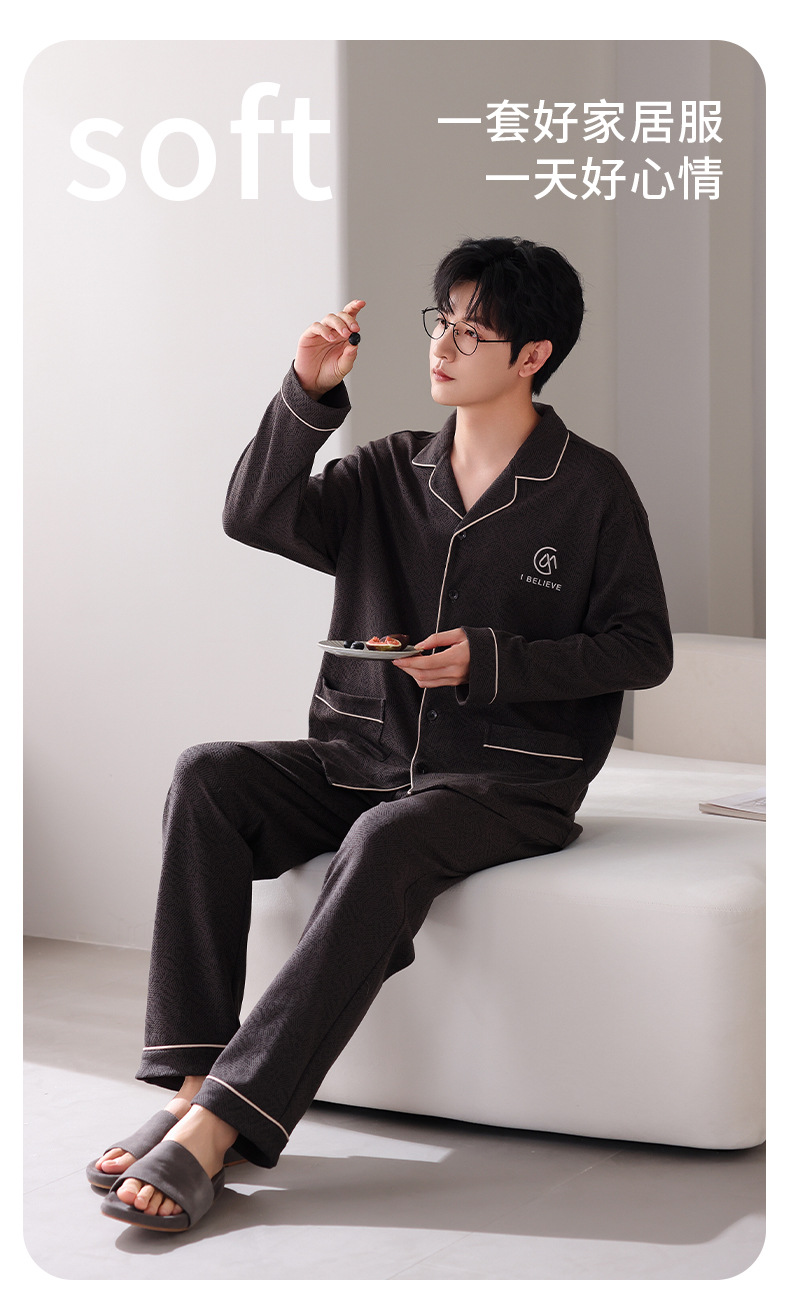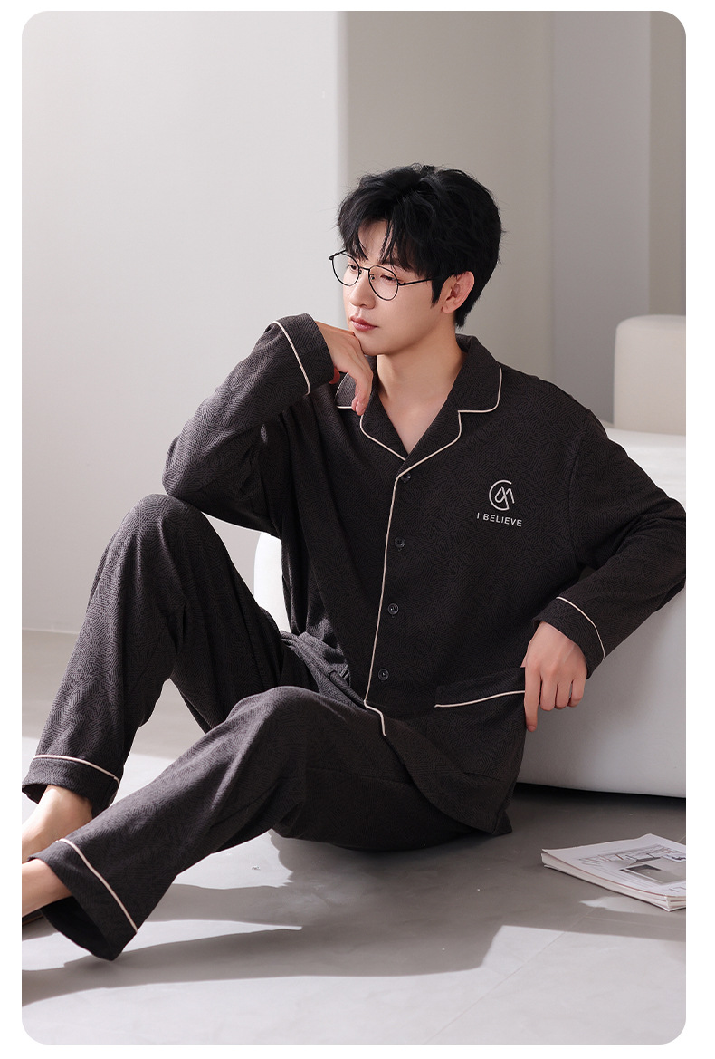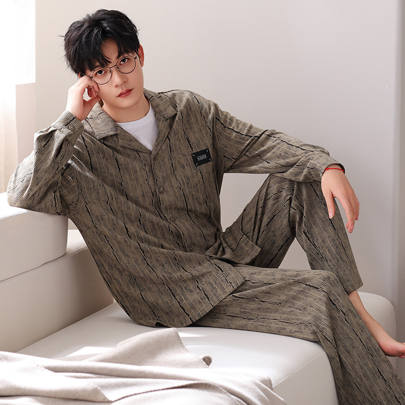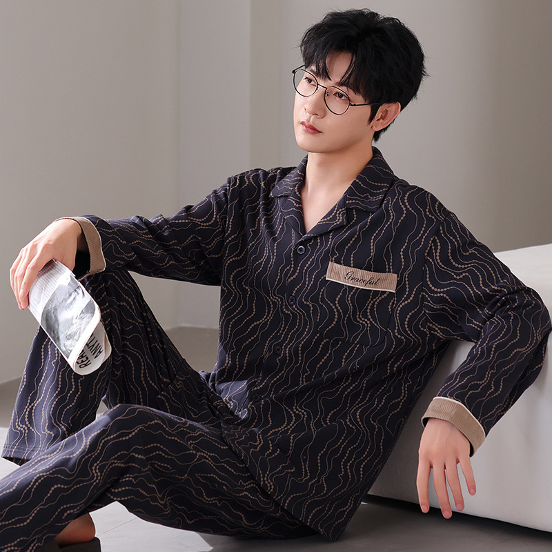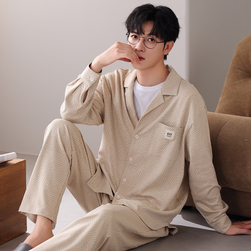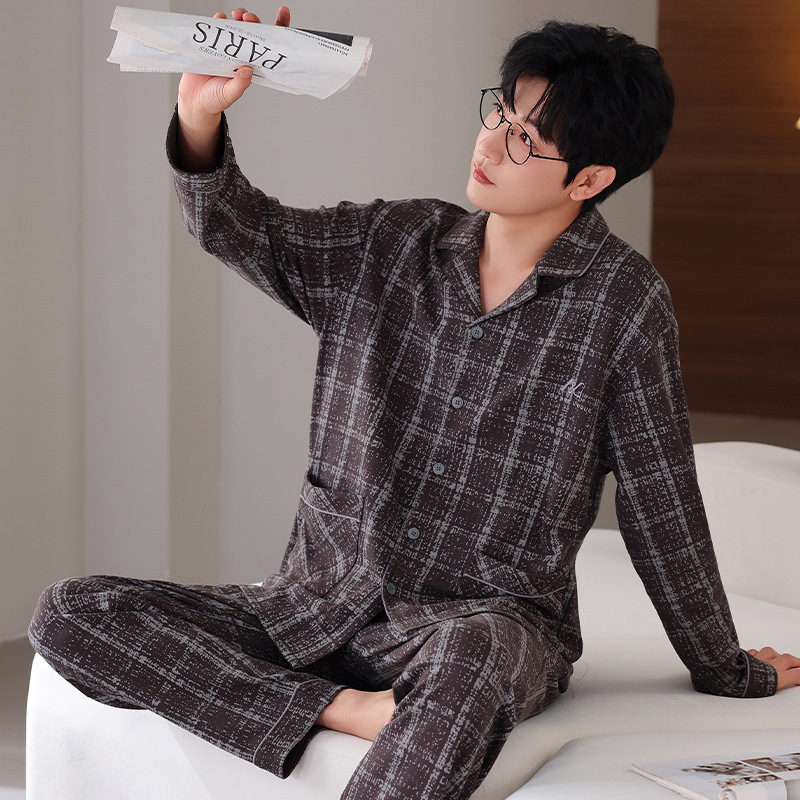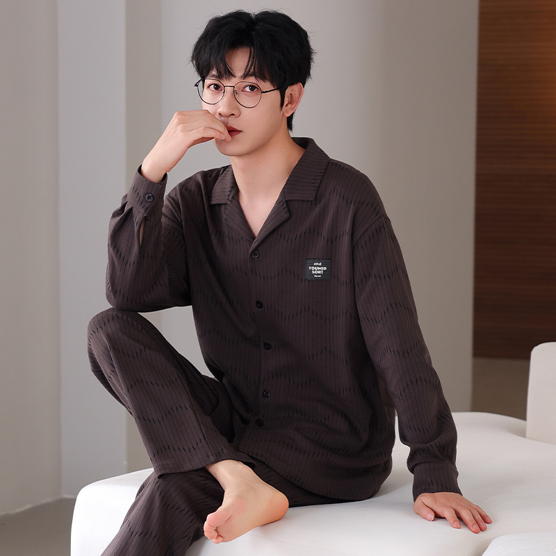 잠옷 남자의 봄과 가을 면화 긴 소매 얇은 가을과 겨울 하이 엔드 카디건 홈 의류 남성용 면화 플러스 사이즈 세트스토어 가기