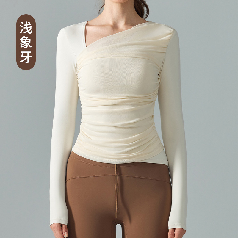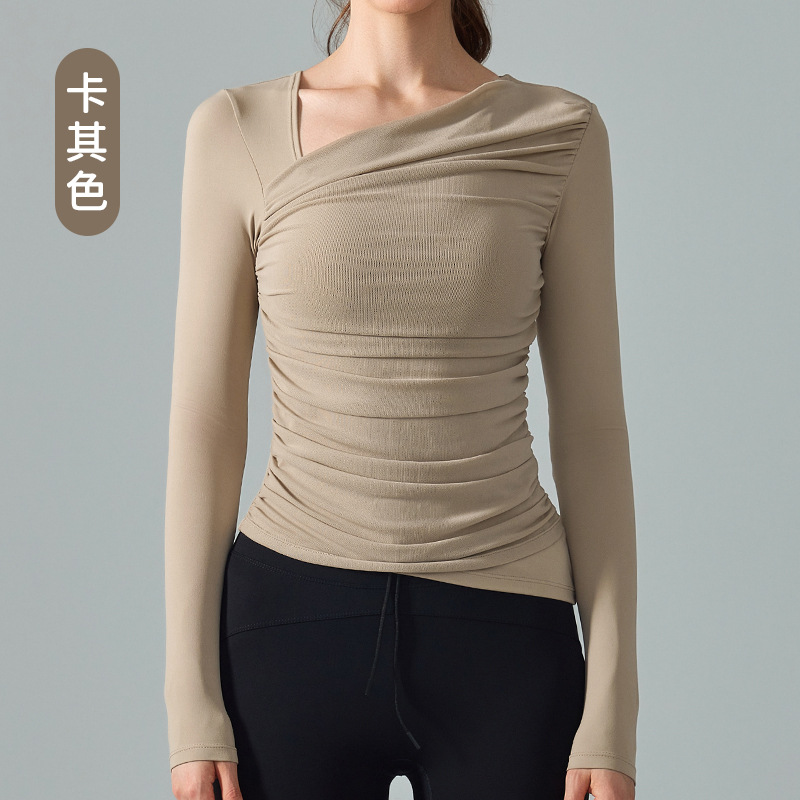 가슴 패드 옷을 입은 여성 스포츠 탑 패션 슬림 핏 긴팔 허리 슬리밍 필라테스 피트니스 요가 세트 가을과 겨울스토어 가기