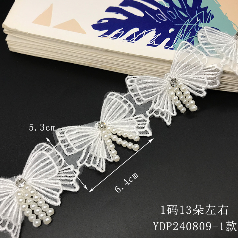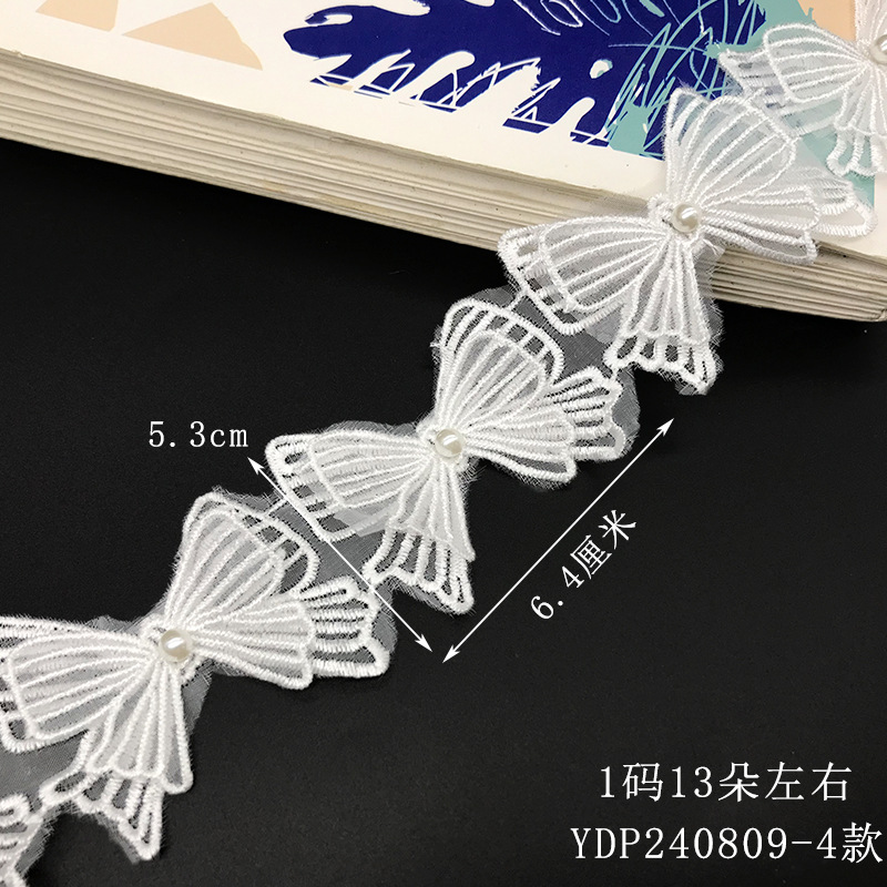 Youduopin 레이스 3 차원 손으로 꿰매는 구슬 꽃 흰색 자수 나비 아동복 헤드웨어 신발 가방 장식 액세서리