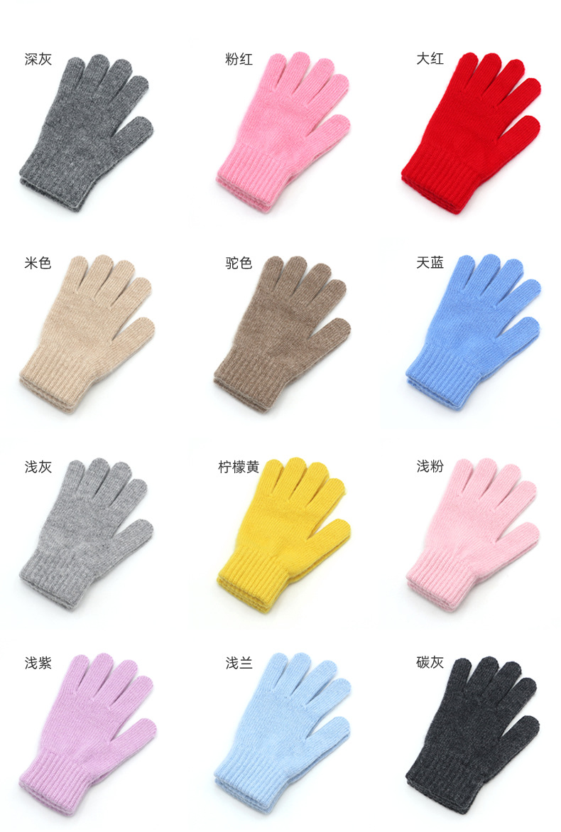 두꺼운 어린이용 캐시미어 장갑 순수 캐시미어 가을 겨울 따뜻한 니트 학생용 모직 장갑 제조업체 도매 주문
