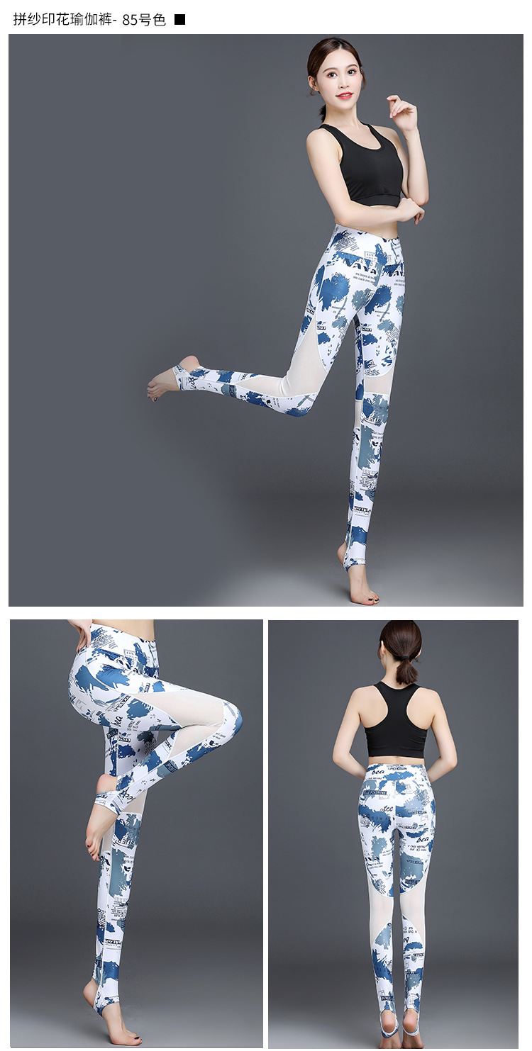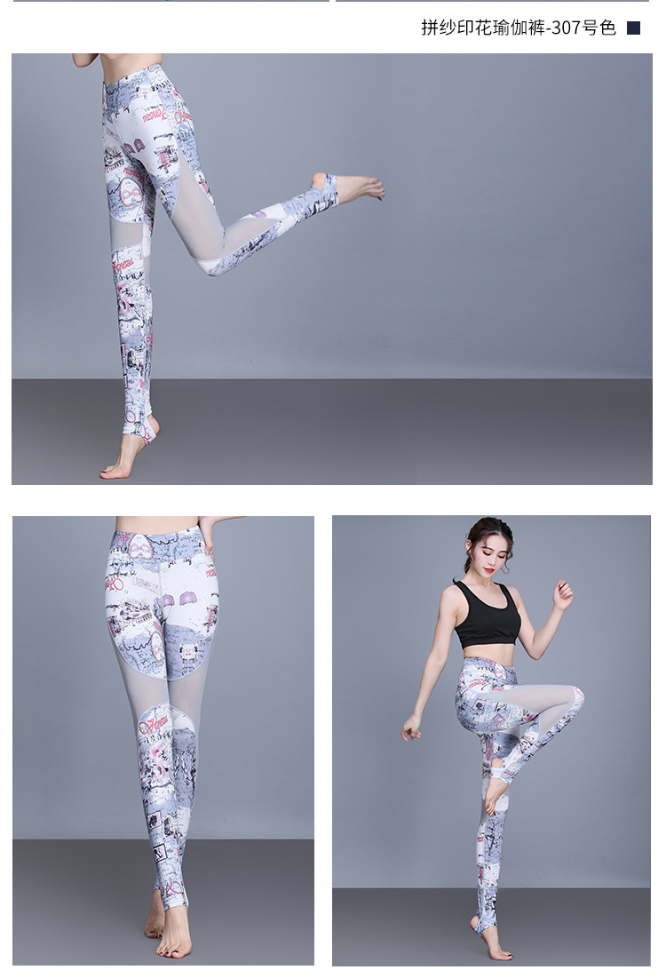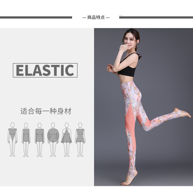 높은 탄성 단단한 발 인쇄 요가 바지 빠른 건조 스포츠 레깅스 여성의 높은 허리 엉덩이 리프팅 러닝 발목 길이 바지스토어 가기