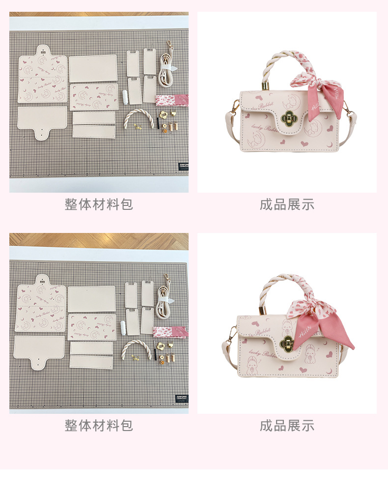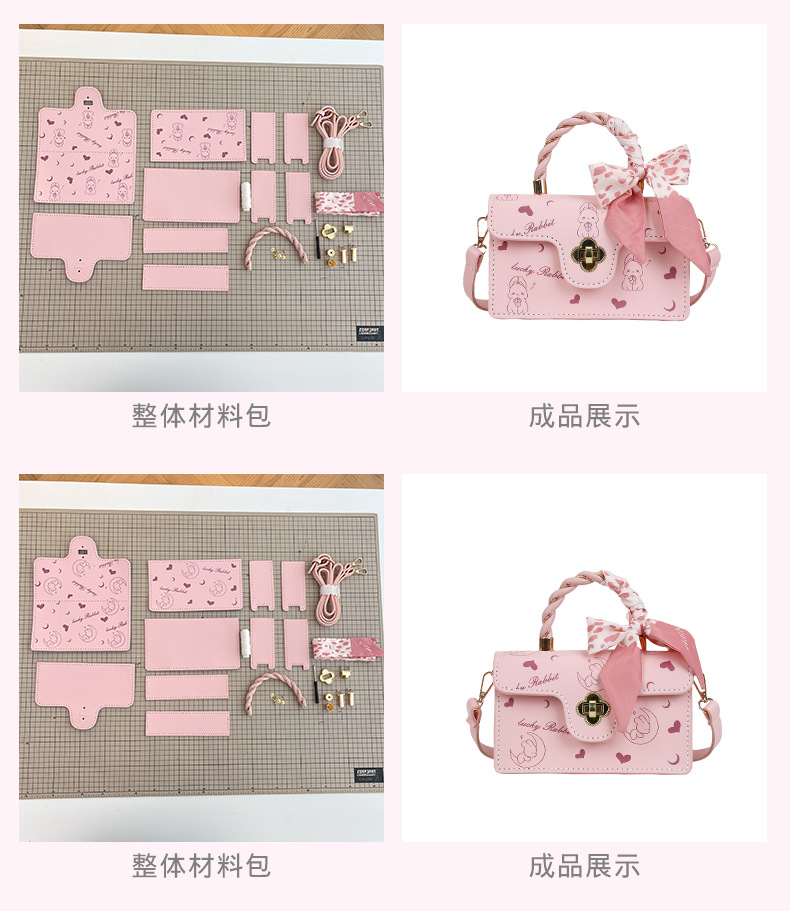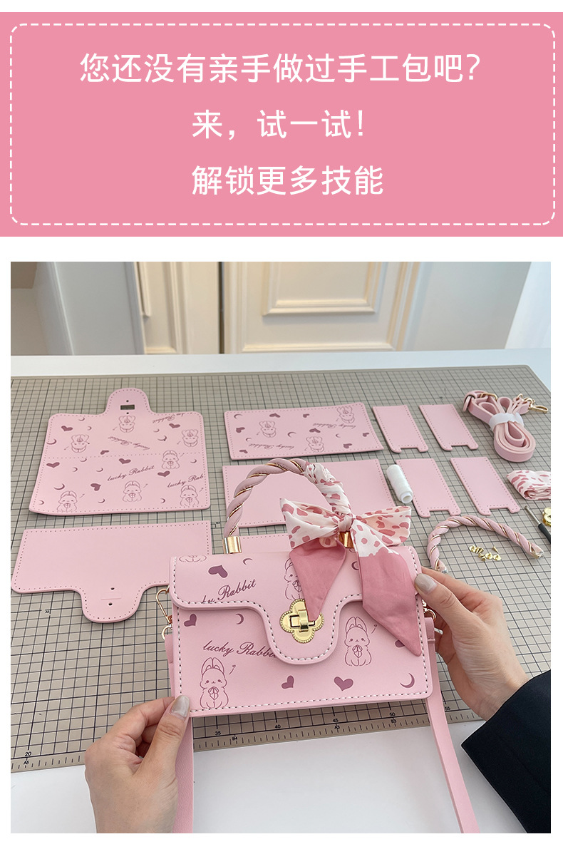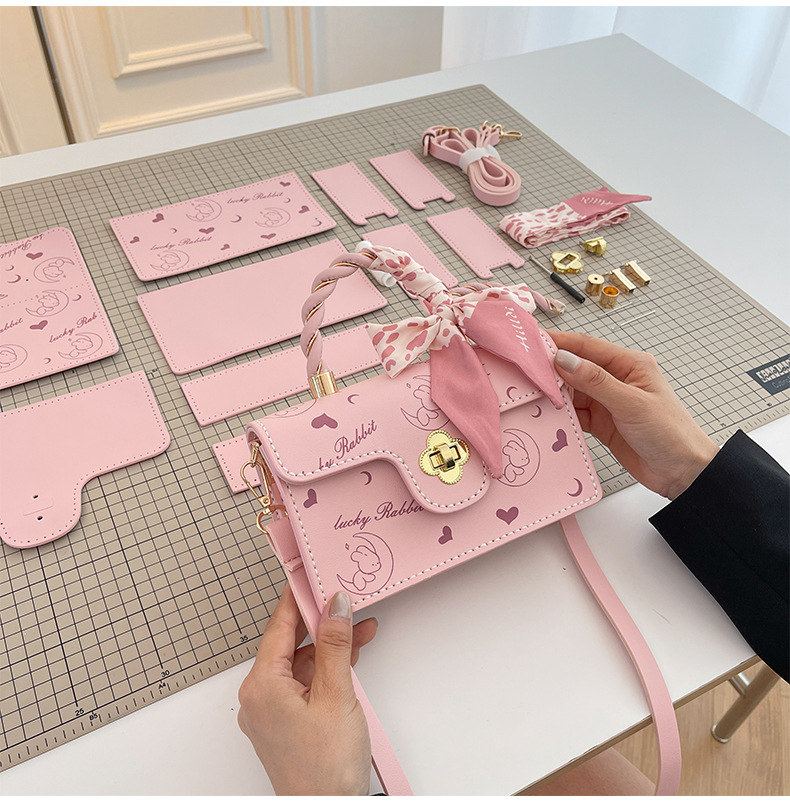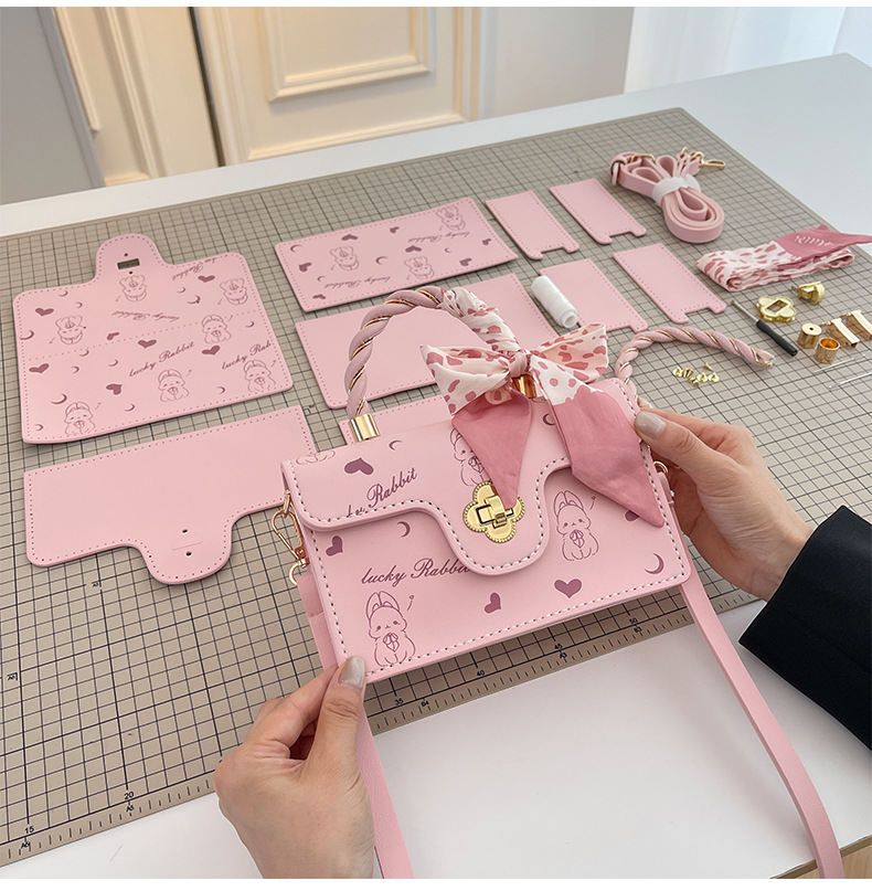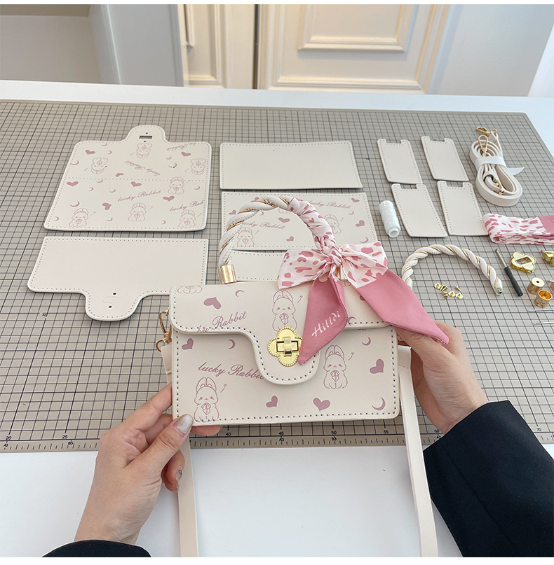 DIY 수제 수제 짠 가방 손으로 꿰매는 소재 가방 토끼 휴대용 크로스 바디 작은 광장 가방 여자 친구 선물