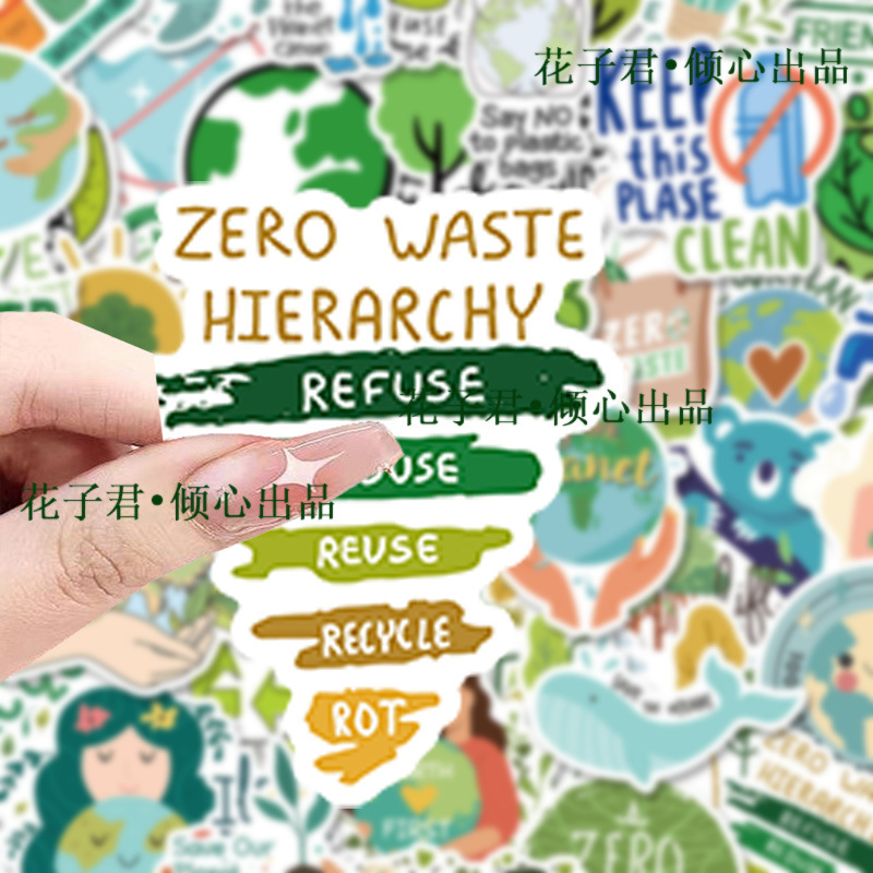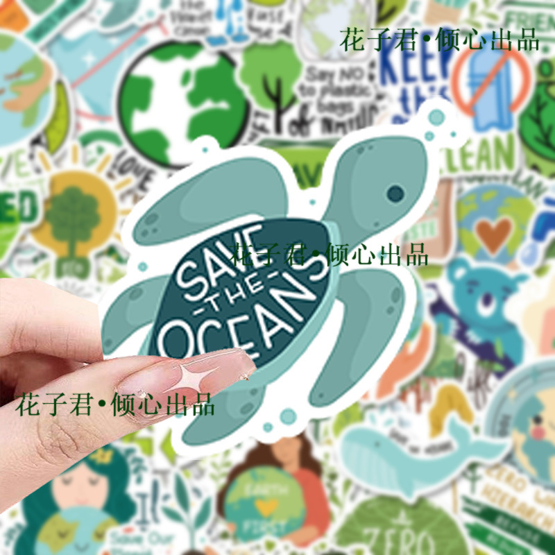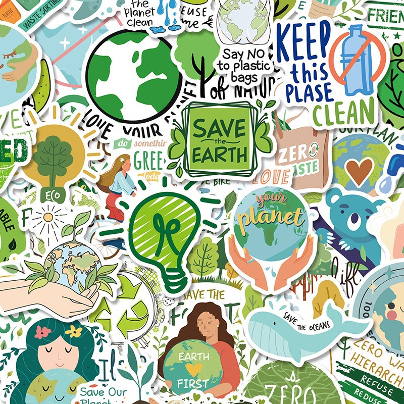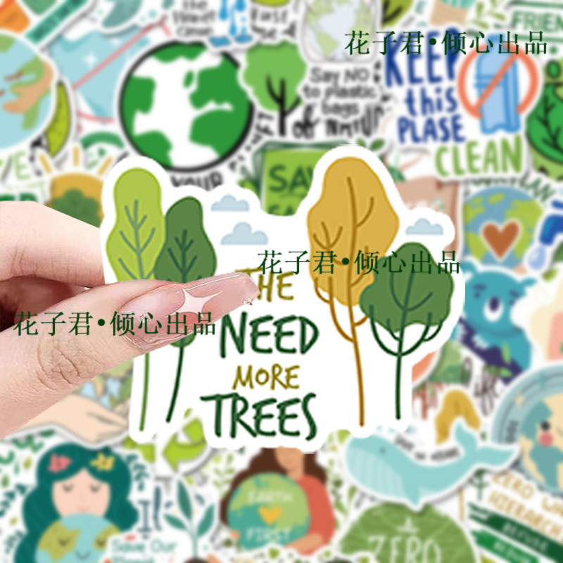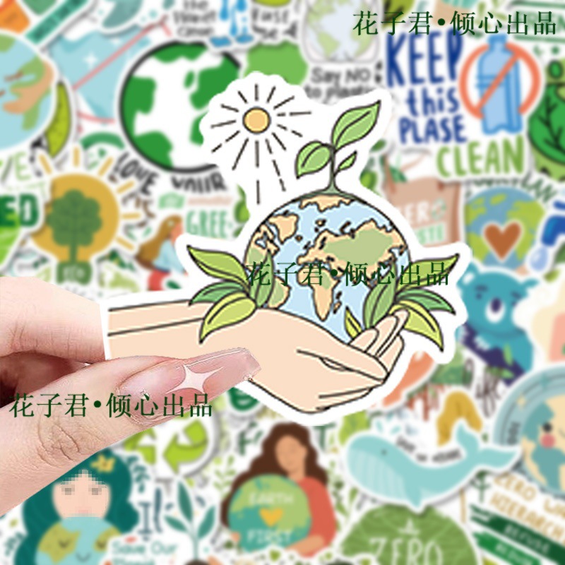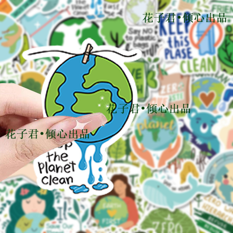 슈퍼 비용 효과적인 100 가지 생태 보호 스티커 영어 환경 보호 녹색 생태 낙서 DIY 팩 배치스토어 가기