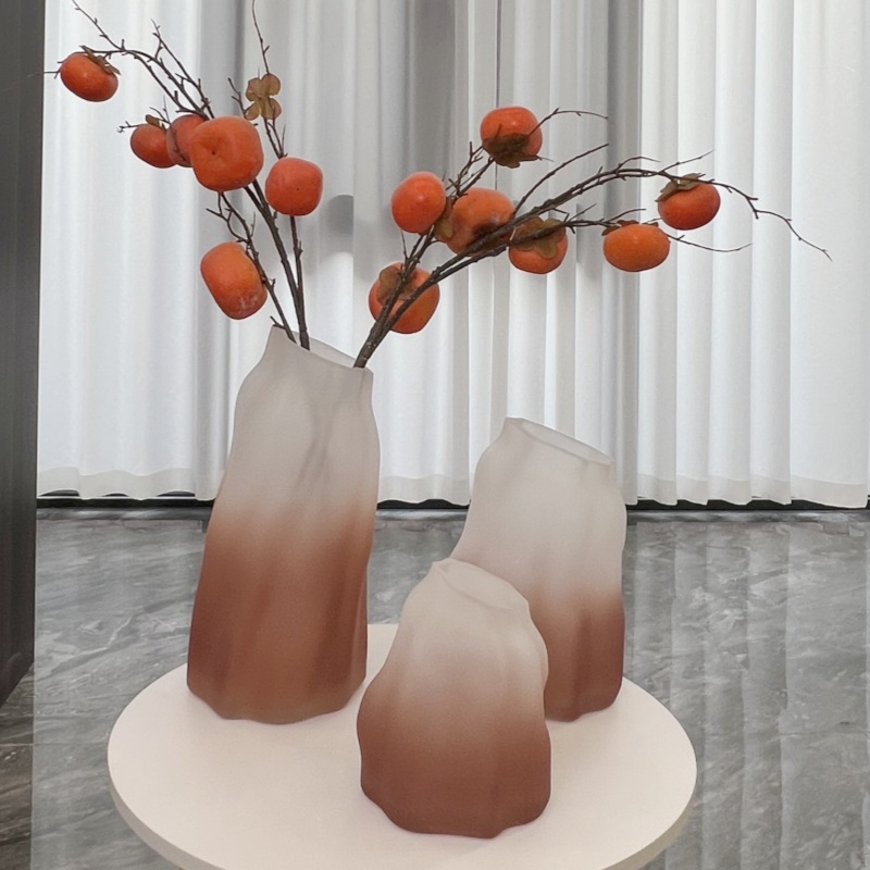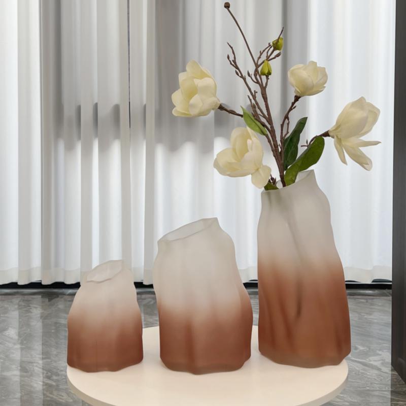 심플 스타일 거실 장식품 모델 룸 꽃 부드러운 장식 꽃 창조적 인 서리 점차적으로 컬러 유리 꽃병