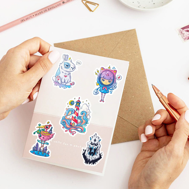 • 몽환적이고 재미있는 스티커 100개 [같은 스타일의 2세트로 가성비 좋음]