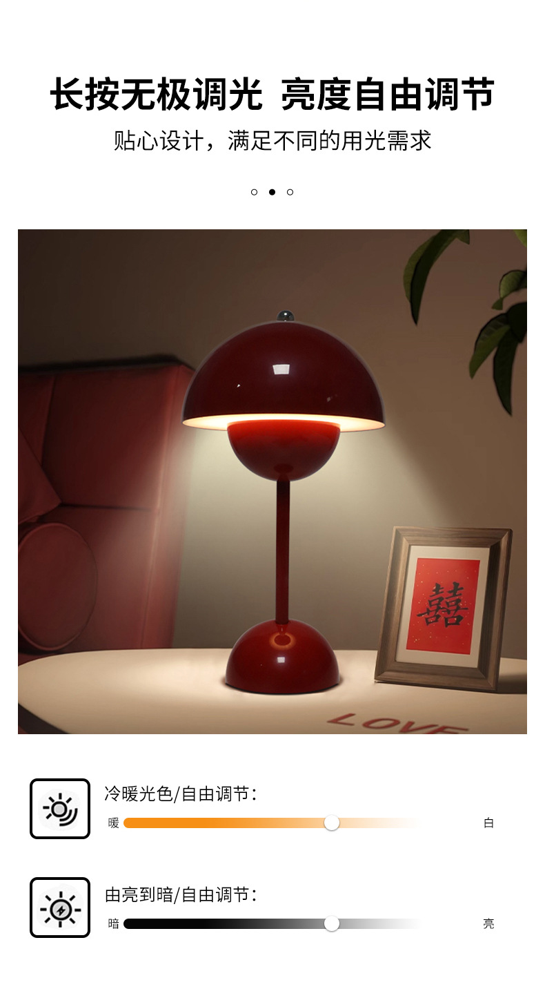 꽃 봉오리 램프 침실 침대 옆 램프 변화하는 행복한 램프 결혼식 호위 새로운 결혼식 테이블 램프 한 쌍의 축제 분위기 버섯 램프