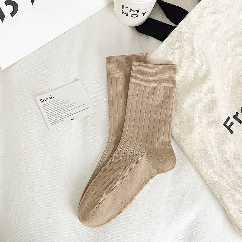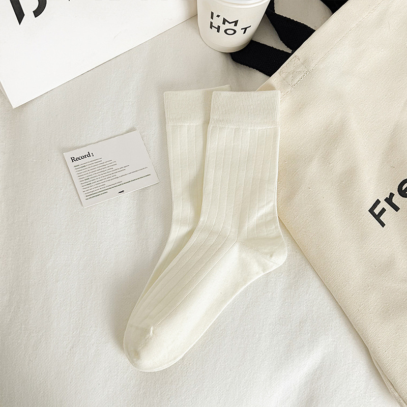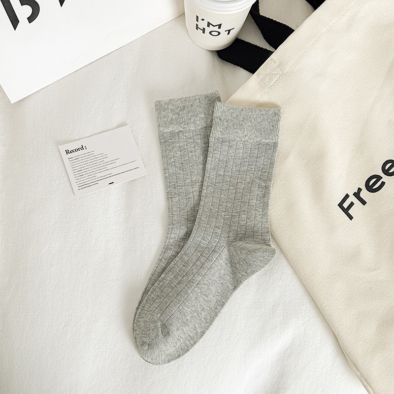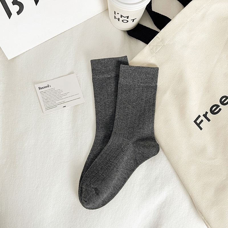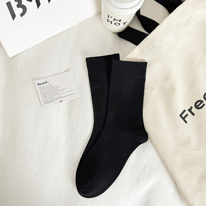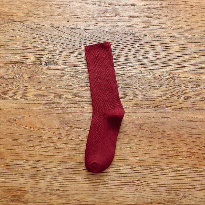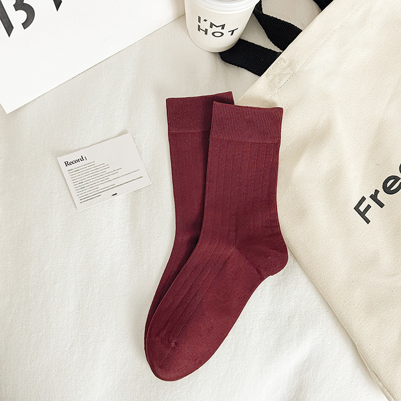 Ankora Red Socks 여성용 심플한 서랍 형 미드 튜브 양말 빗질 된 코튼 스웨트, 뼈없는 쌓인 양말 얇은 검은 양말 흡수