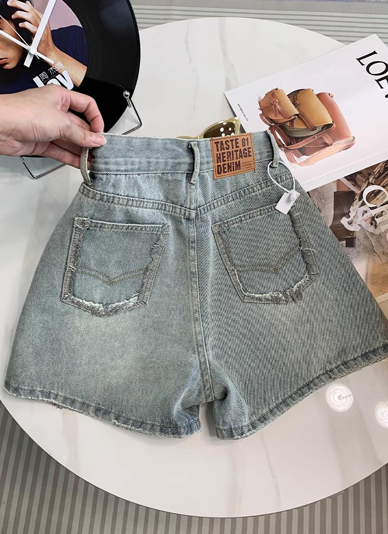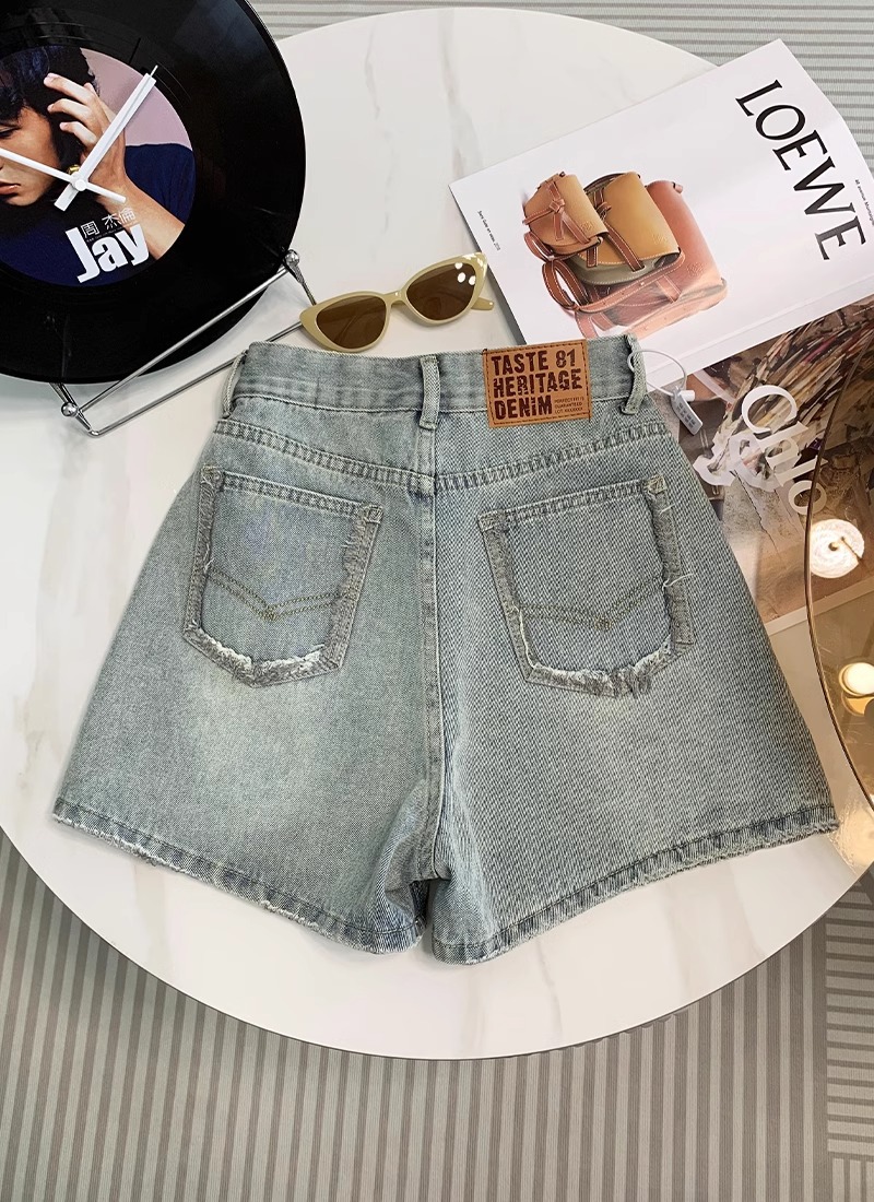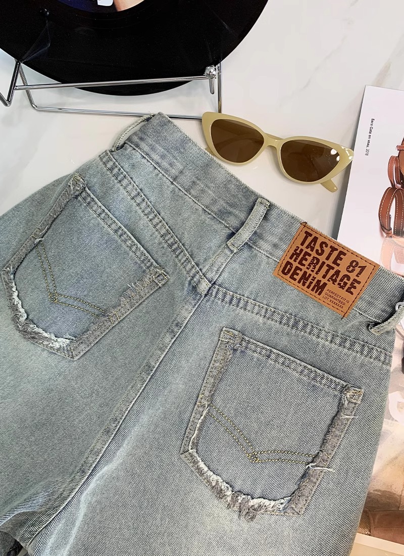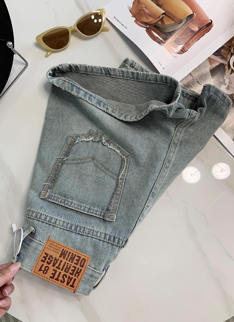 2024 여름 새로운 높은 허리 데님 반바지 여성 디자인 감각 느슨한 틈새 슬림 모양의 넓은 다리 핫 바지 얇은스토어 가기
