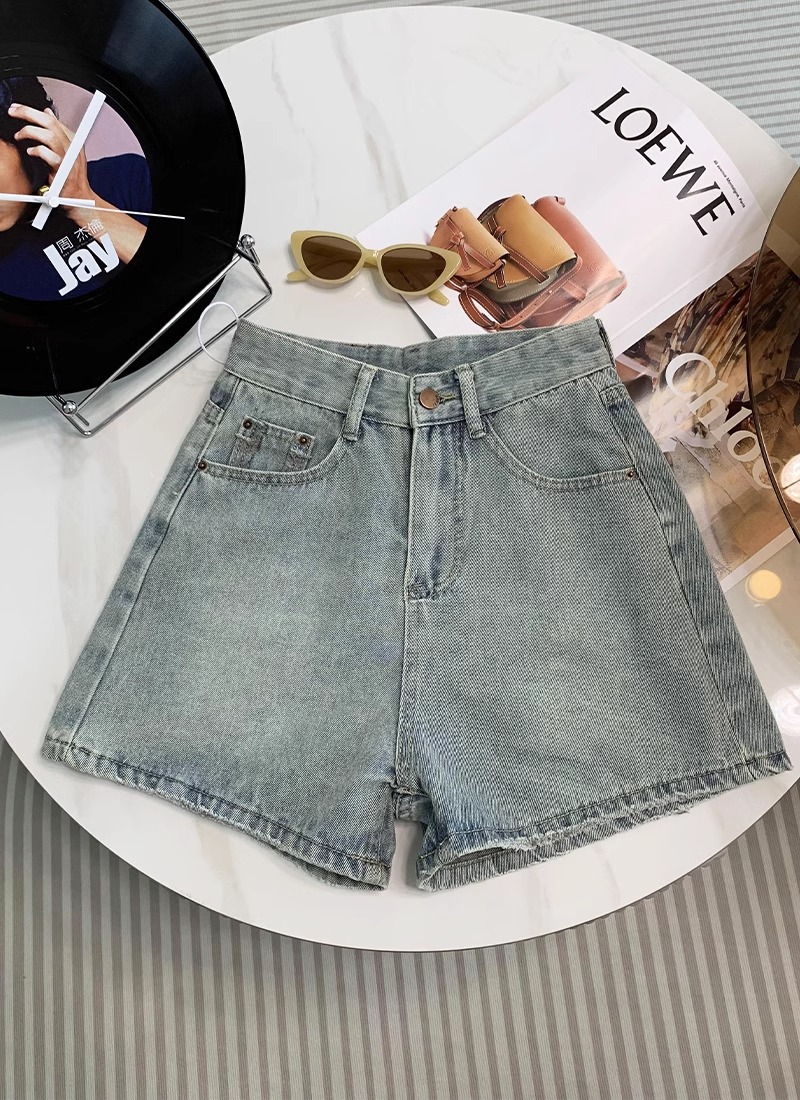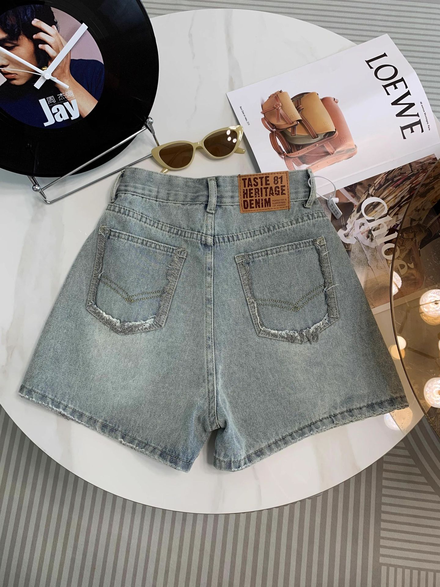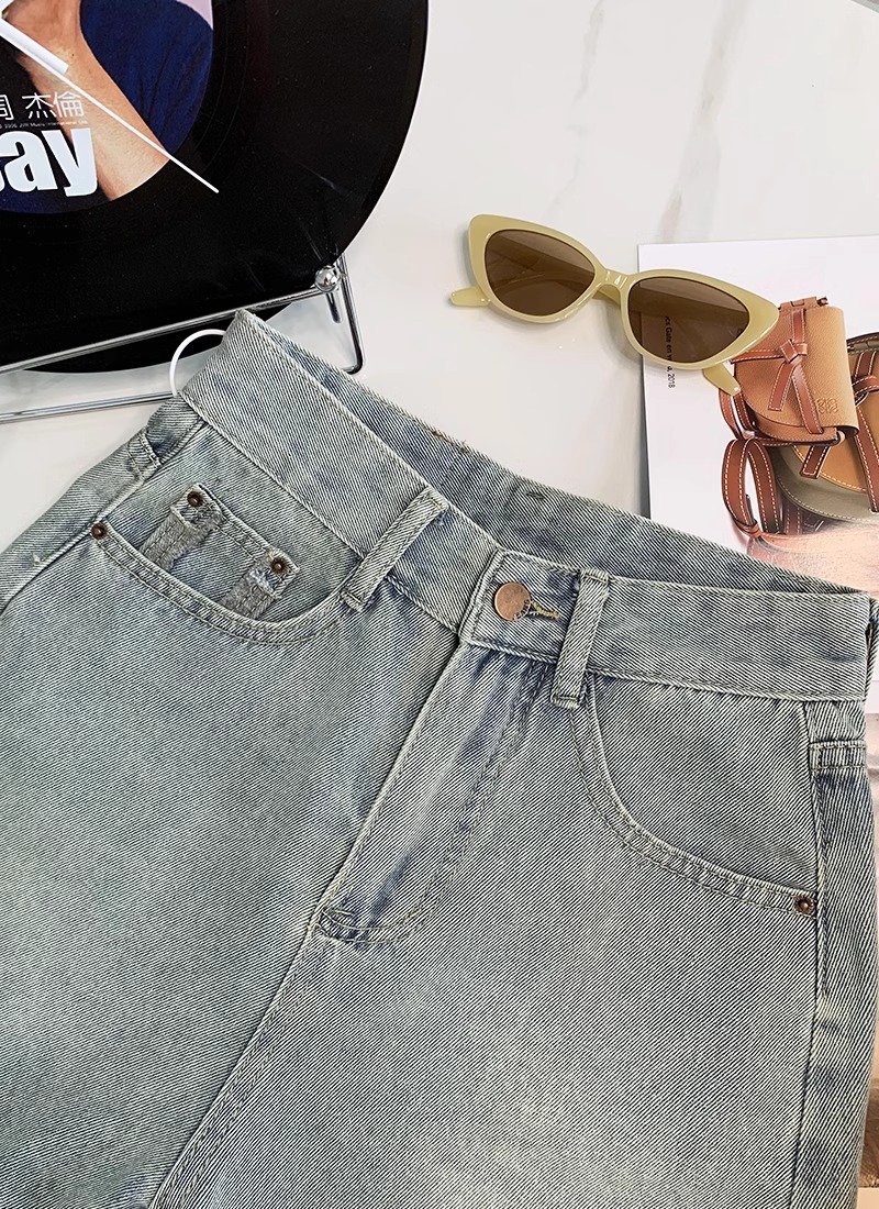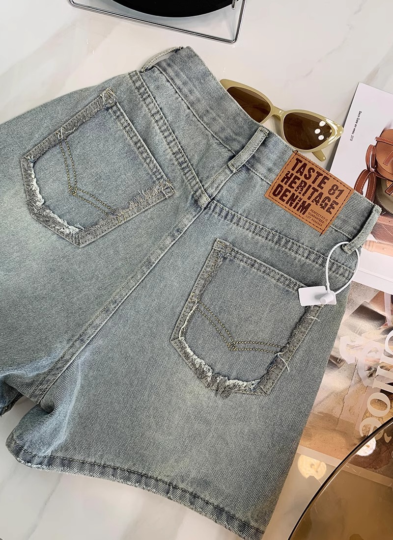 2024 여름 새로운 높은 허리 데님 반바지 여성 디자인 감각 느슨한 틈새 슬림 모양의 넓은 다리 핫 바지 얇은스토어 가기