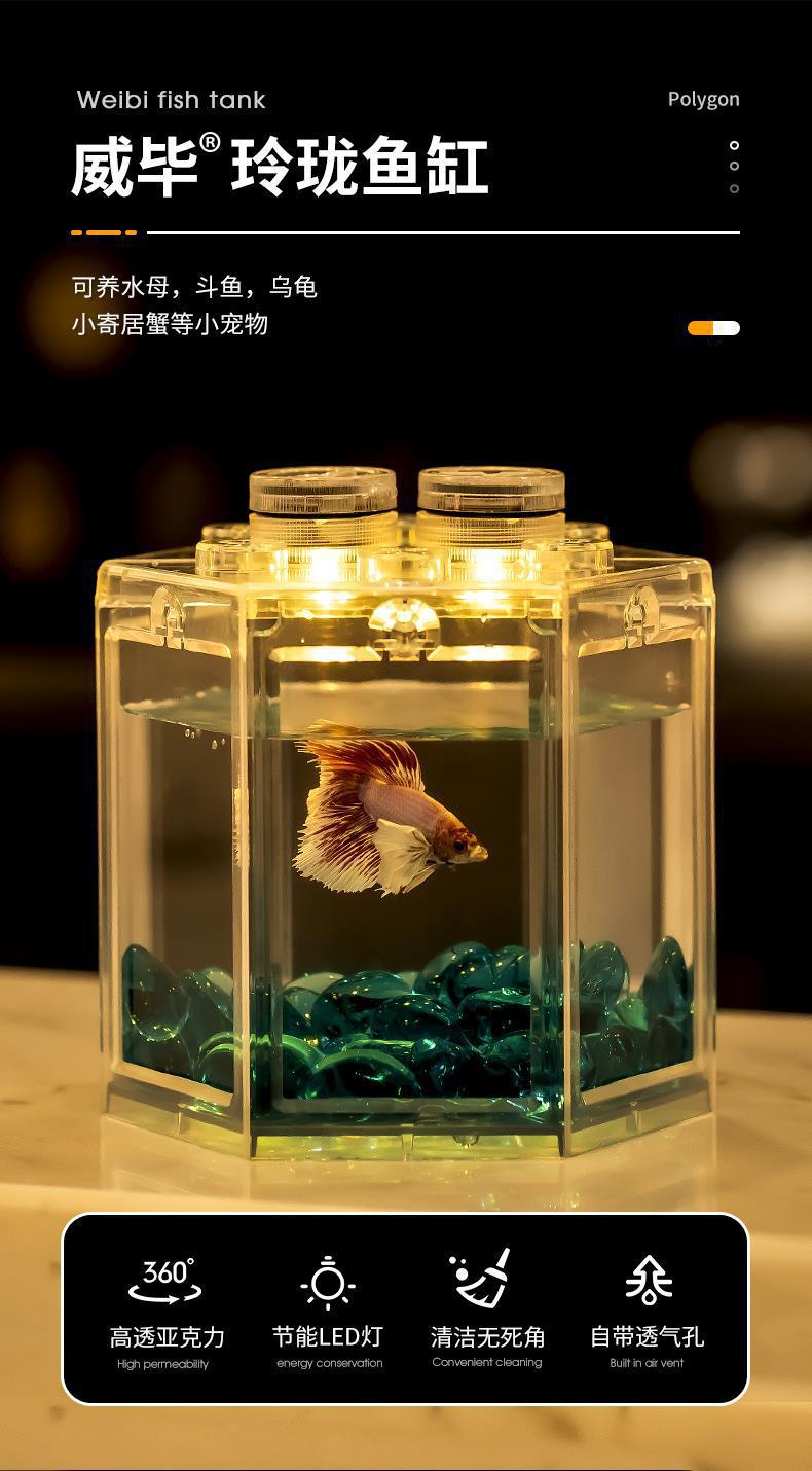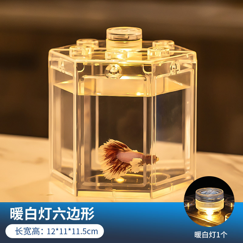 건물 블록 물고기 탱크 6 면 거실 사무실 데스크탑 창조적 인 조경 생태 탱크 아크릴 미니 버킷 어항