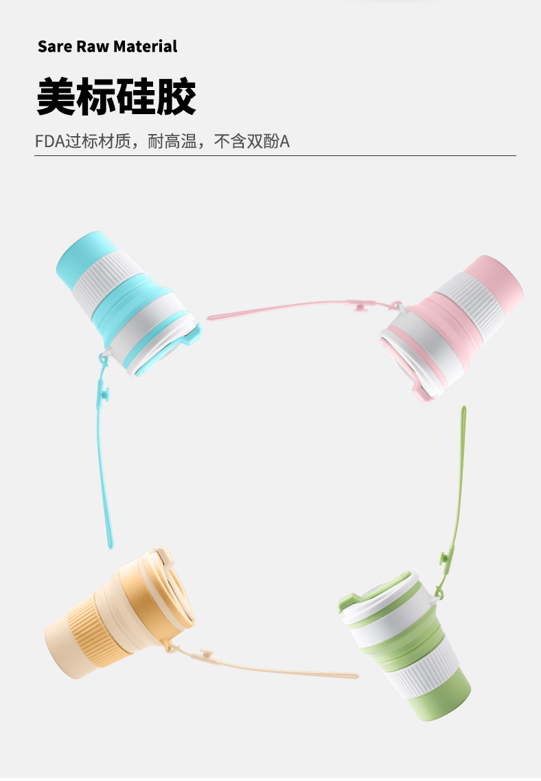 국경 실리콘 접는 물 컵 여행 편리한 고온 저항하는 실리콘 컵 야외 스포츠 접는 컵 대용량 물 컵