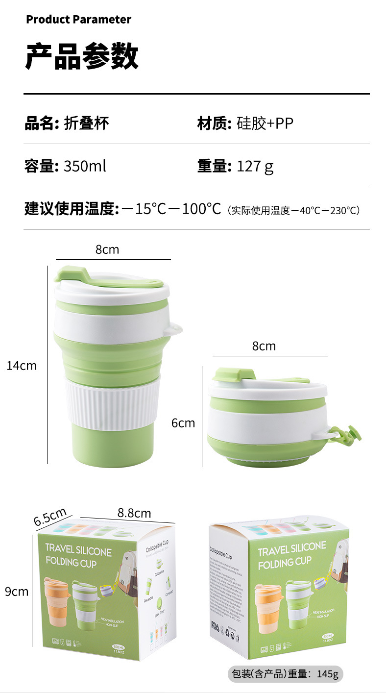 • 녹색 색상 상자에 350ml 실리콘 컵
