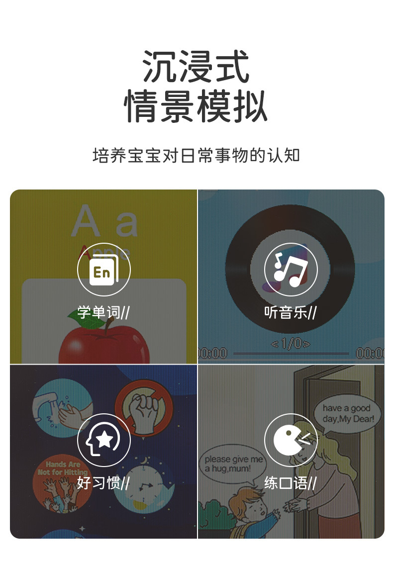 • [유니콘 카드리스 버전] 고화질 터치 대형 화면/100가지 조기 교육 인지 학습/오래 지속되는 배터리 수명/사진 및 비디오 촬영 가능