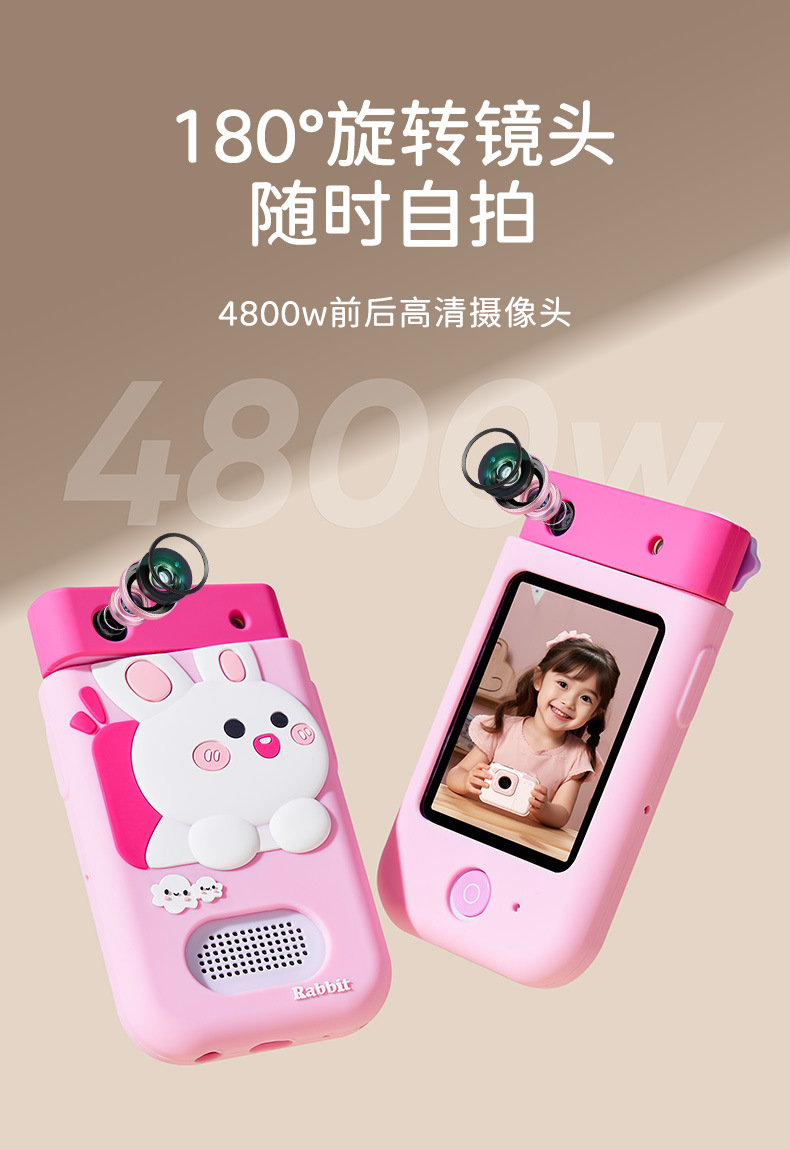 • [귀여운 토끼 64G] 고화질 터치 대형 화면/100가지 조기 교육 인지 학습/오래 지속되는 배터리 수명/사진 및 비디오 촬영 가능