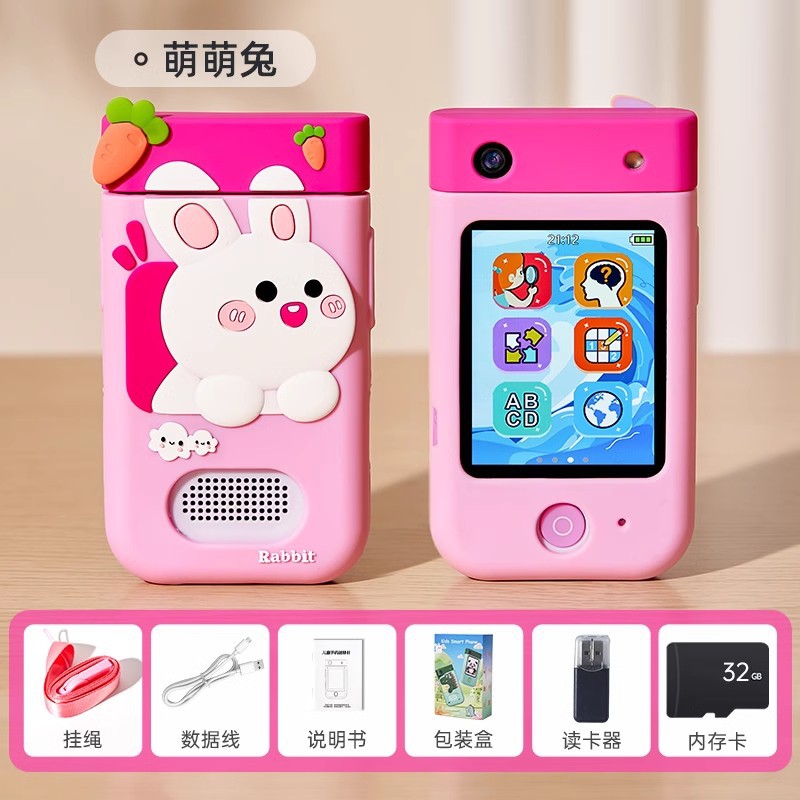 • [귀여운 토끼 32G] 고화질 터치 대형 화면/100가지 조기 교육 인지 학습/오래 지속되는 배터리 수명/사진 및 비디오 촬영 가능